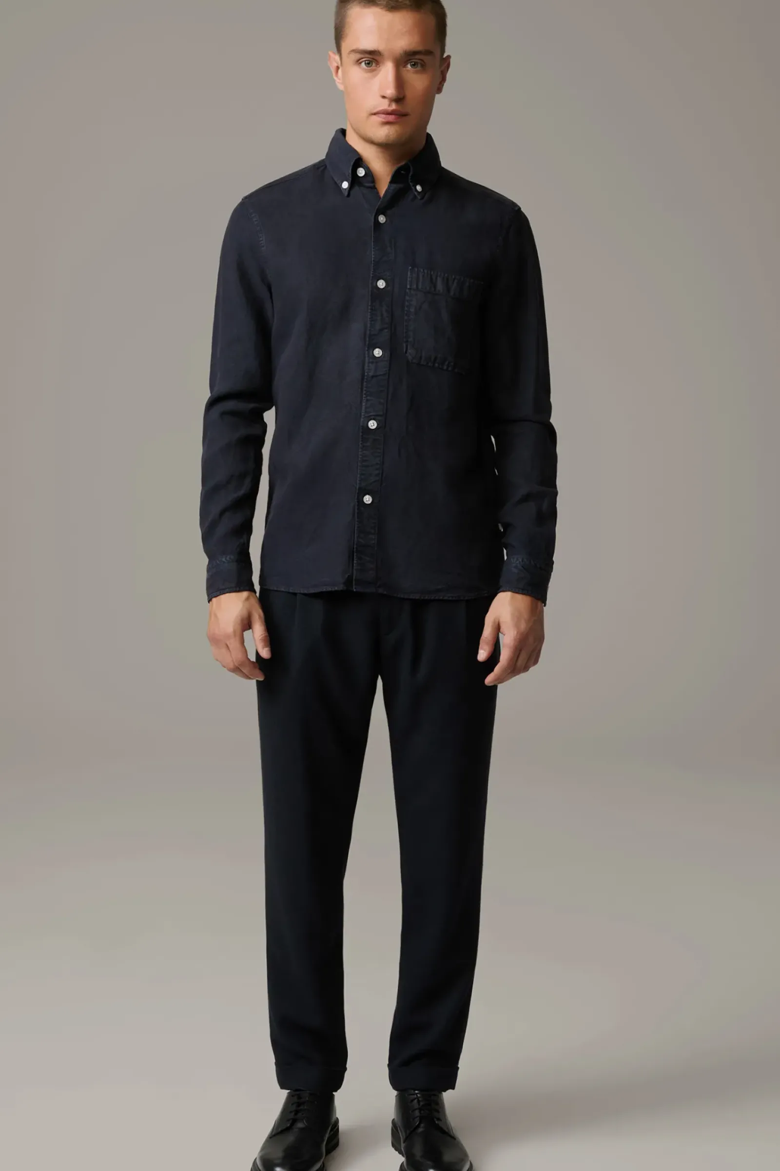 Begeistert in Denim-Optik mit Manschettenärmeln, durchgehender Knopfleiste und einer aufgesetzten Brusttasche: das Hemd Nero. Moderner Twist: der Button-Down-Kragen.