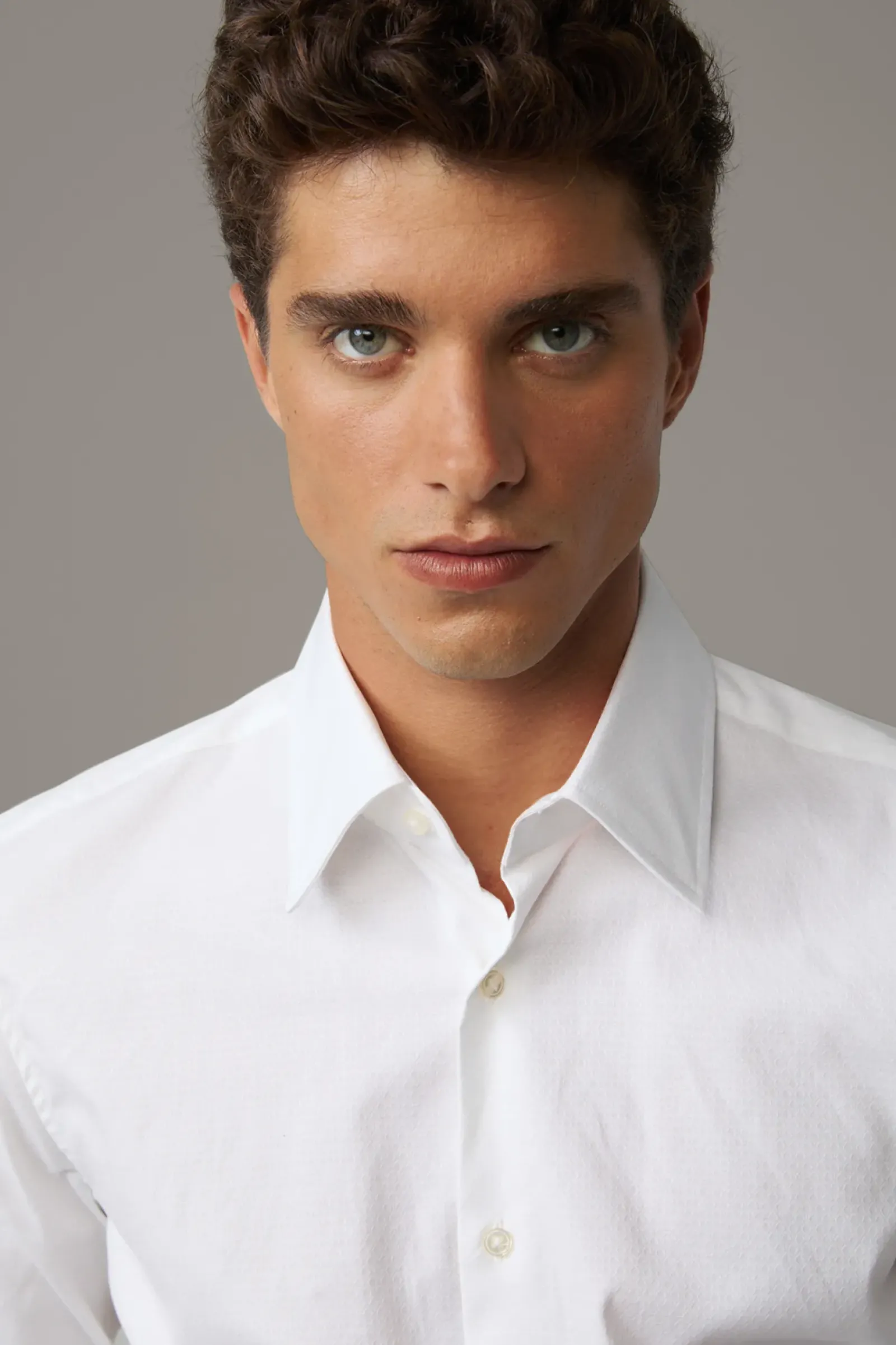 Business Style: das Hemd Sancho im strukturierten Rautenmuster mit charakteristischen Details wie Kentkragen, Manschettenärmeln und glatter Knopfleiste. Aus Cotton Stretch.