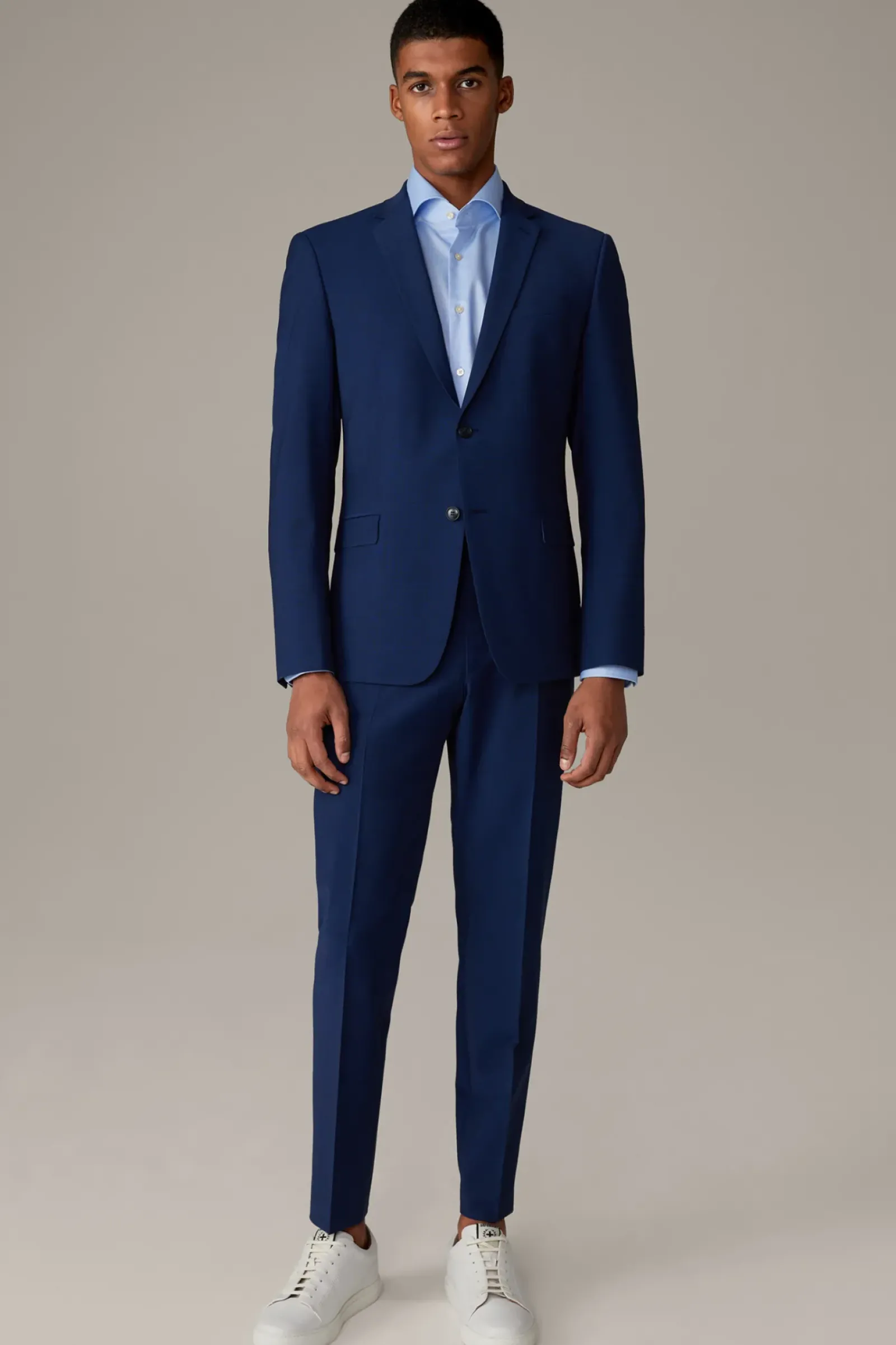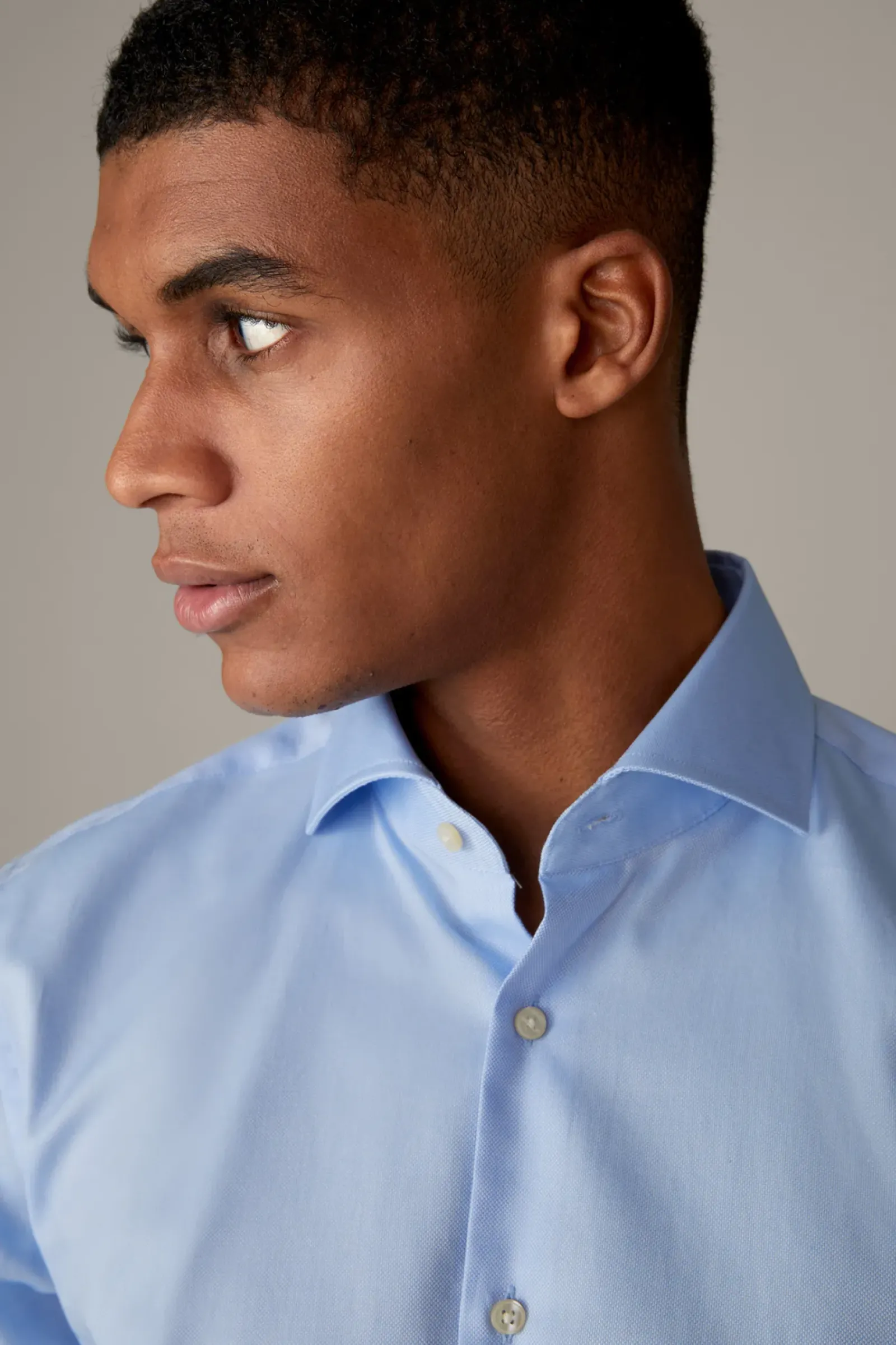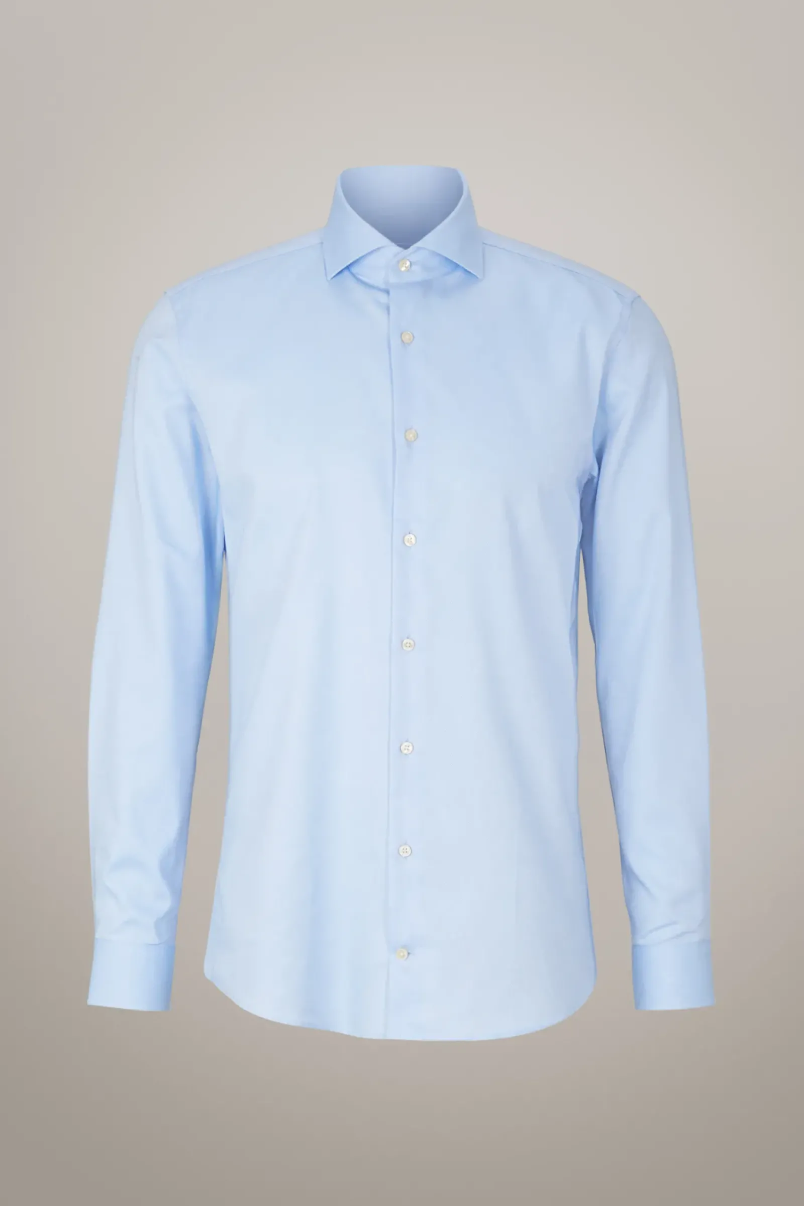 Aus reiner Baumwolle mit feiner Struktur: das Hemd Sereno mit durchgehender Knopfleiste, modernem Haifischkragen und verstellbare Manschettenärmeln.