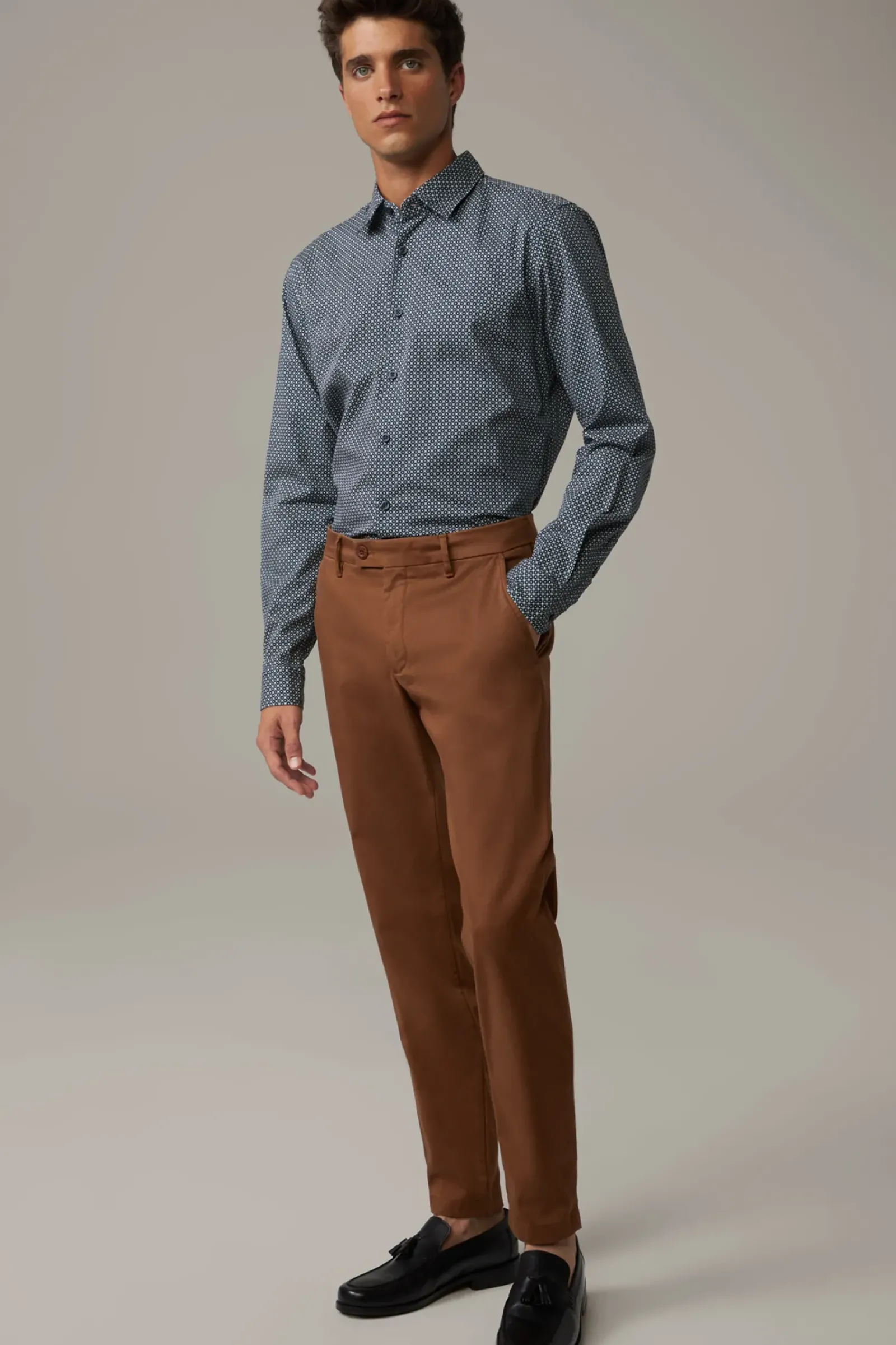 Smart Casual: das Hemd Stan aus Cotton mit Kentkragen, durchgängiger Knopfleiste und schmaler Schulterpasse. Die gemusterte Optik verleiht ein lässiges Finish.