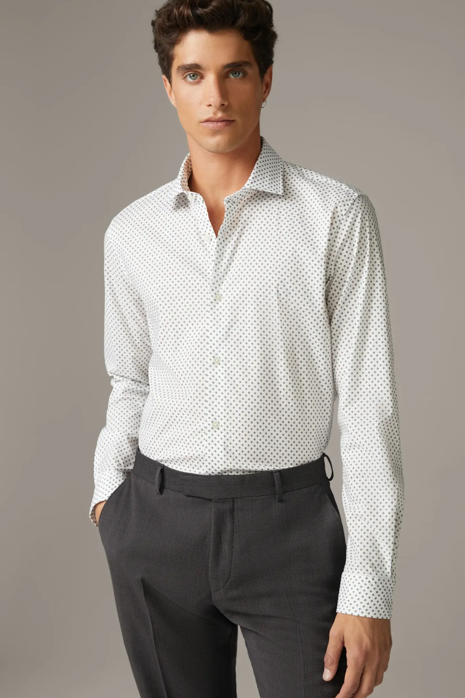 Allrounder für elegante Looks: das Hemd Stan mit minimalem Muster, Kentkragen und glatter Knopfleiste. Im stretchigen Baumwoll-Mix für das komfortable Finish.