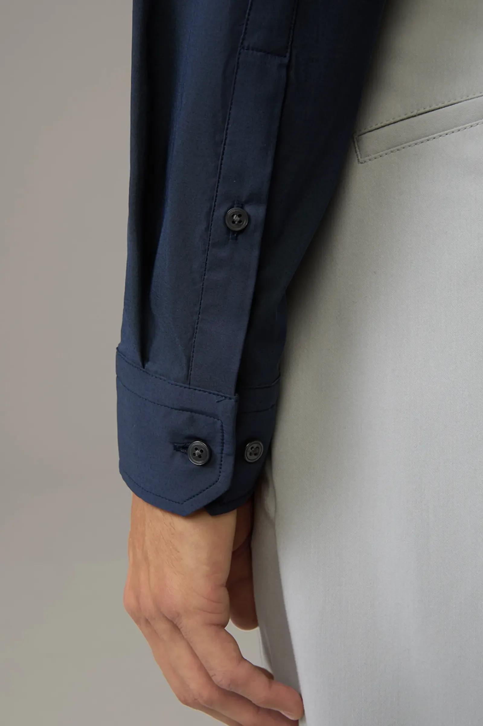 Kombinationsstarkes Essential: das Hemd Stan mit Kentkragen und glatter Knopfleiste. Manschettenärmel und der abgerundete Saum ergänzen den klassischen Style.