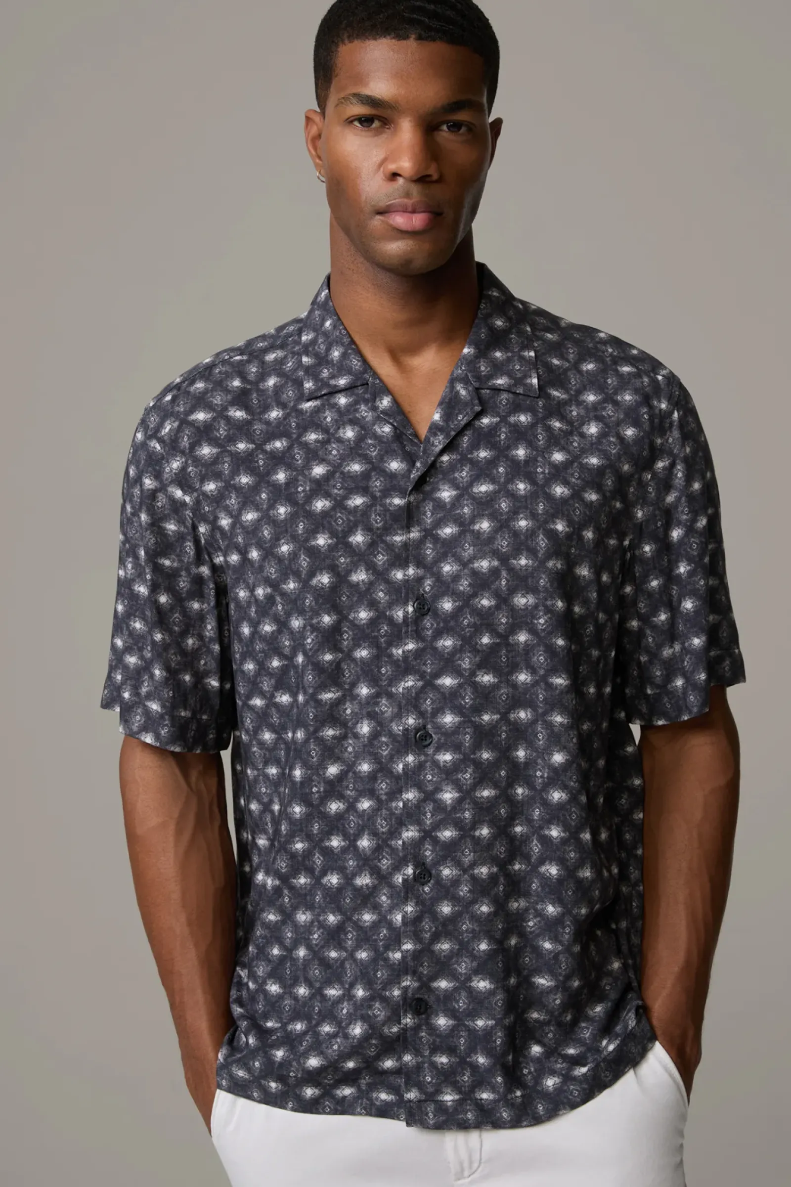 Fließende Viskose-Qualität verleiht dem Kurzarm-Hemd Cliro eine lässige Silhouette. Reverskragen und ein modernes Print-Design runden den Style ab.