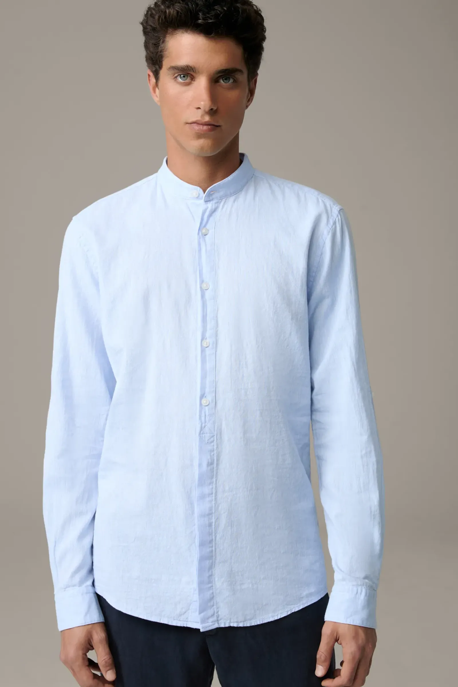 Hemd Conell überzeugt mit modernem Stehkragen, halb verdeckter Knopfleiste und Manschettenärmeln sowie zusätzlichem Knopf zum Aufkrempeln. Aus leichtem Leinen-Cotton-Mix.