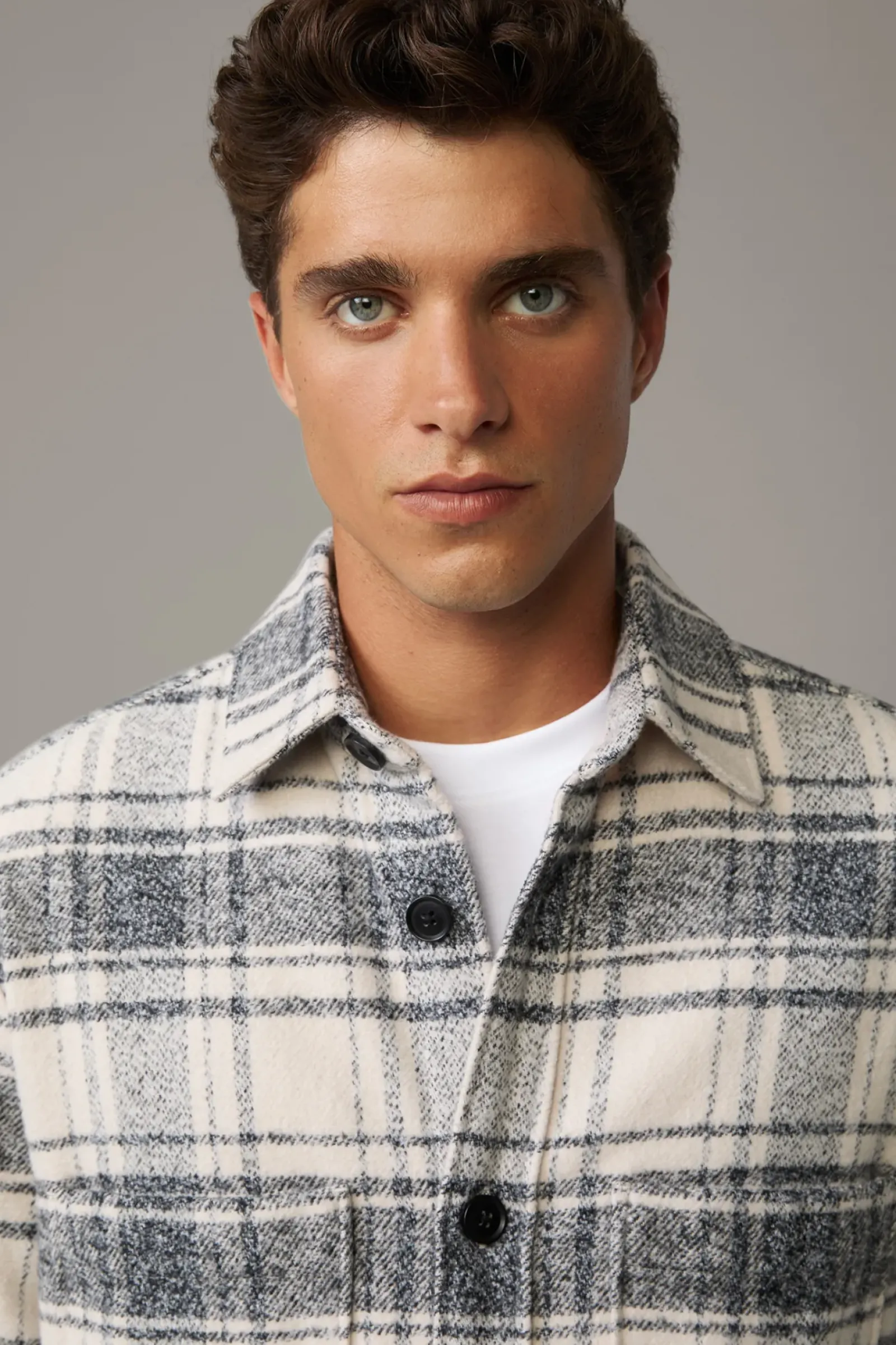 Favorit im Karo-Look: Das Overshirt Nalon aus Baumwoll-Flanell mit applizierten Pockets, nahtverdeckten Eingrifftaschen und klassischem Kentkragen.