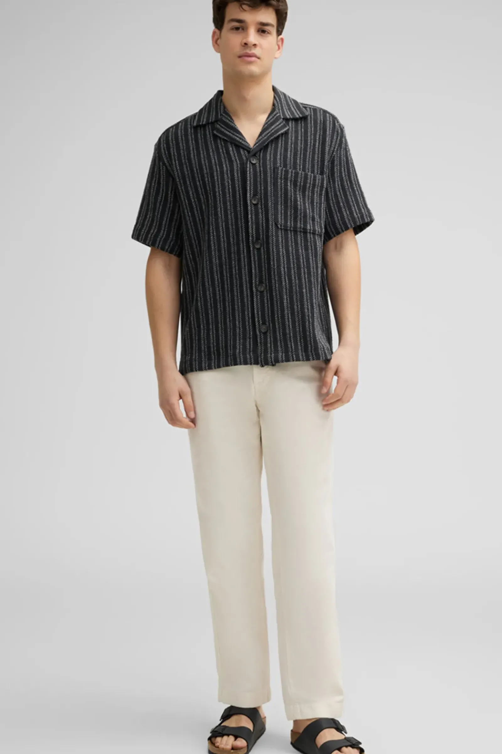 Casual Piece: das Kurzarm-Hemd Noem mit Kentkragen, durchgehender Knopfleiste und kurzen Seitenschlitzen.