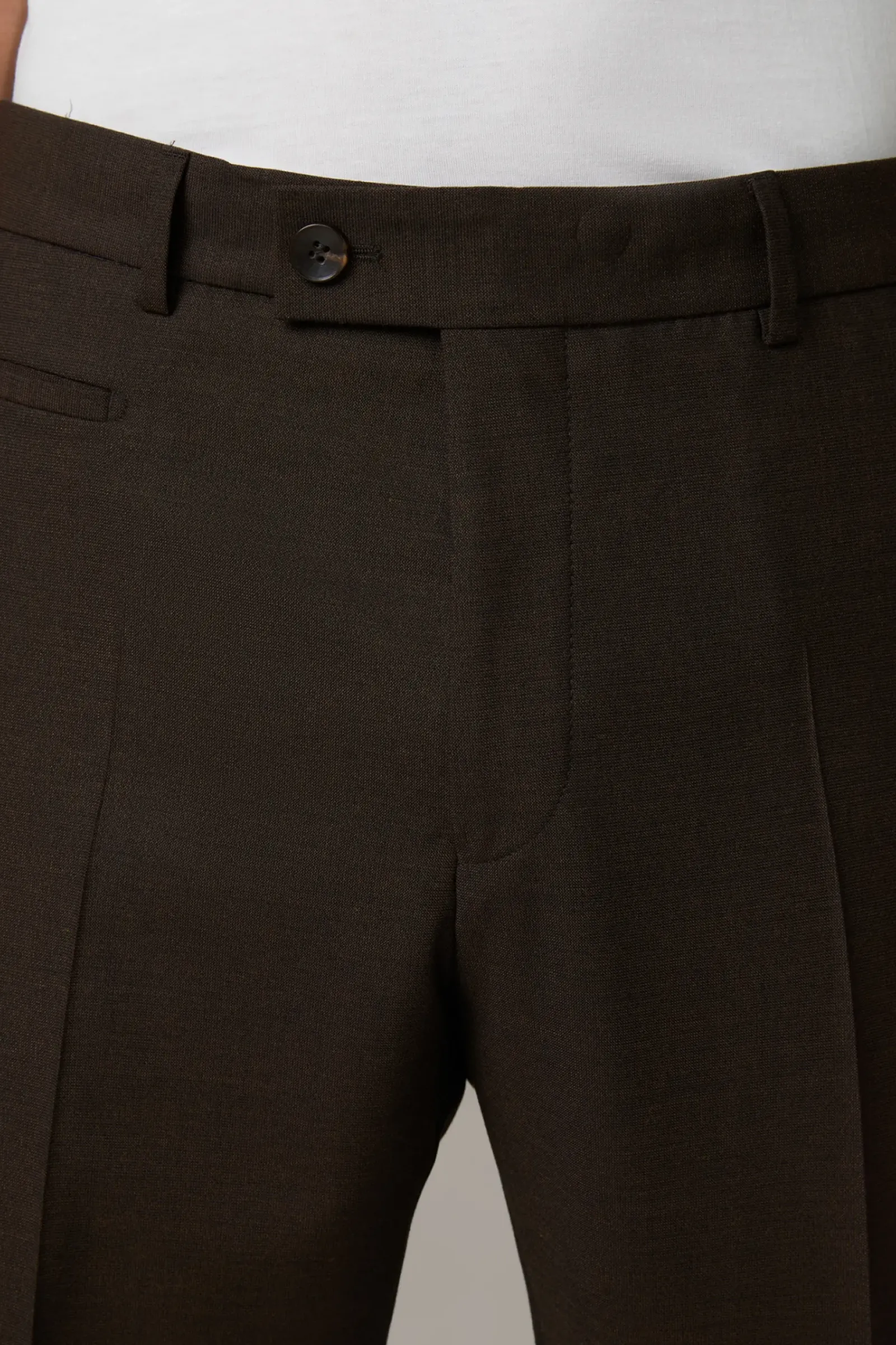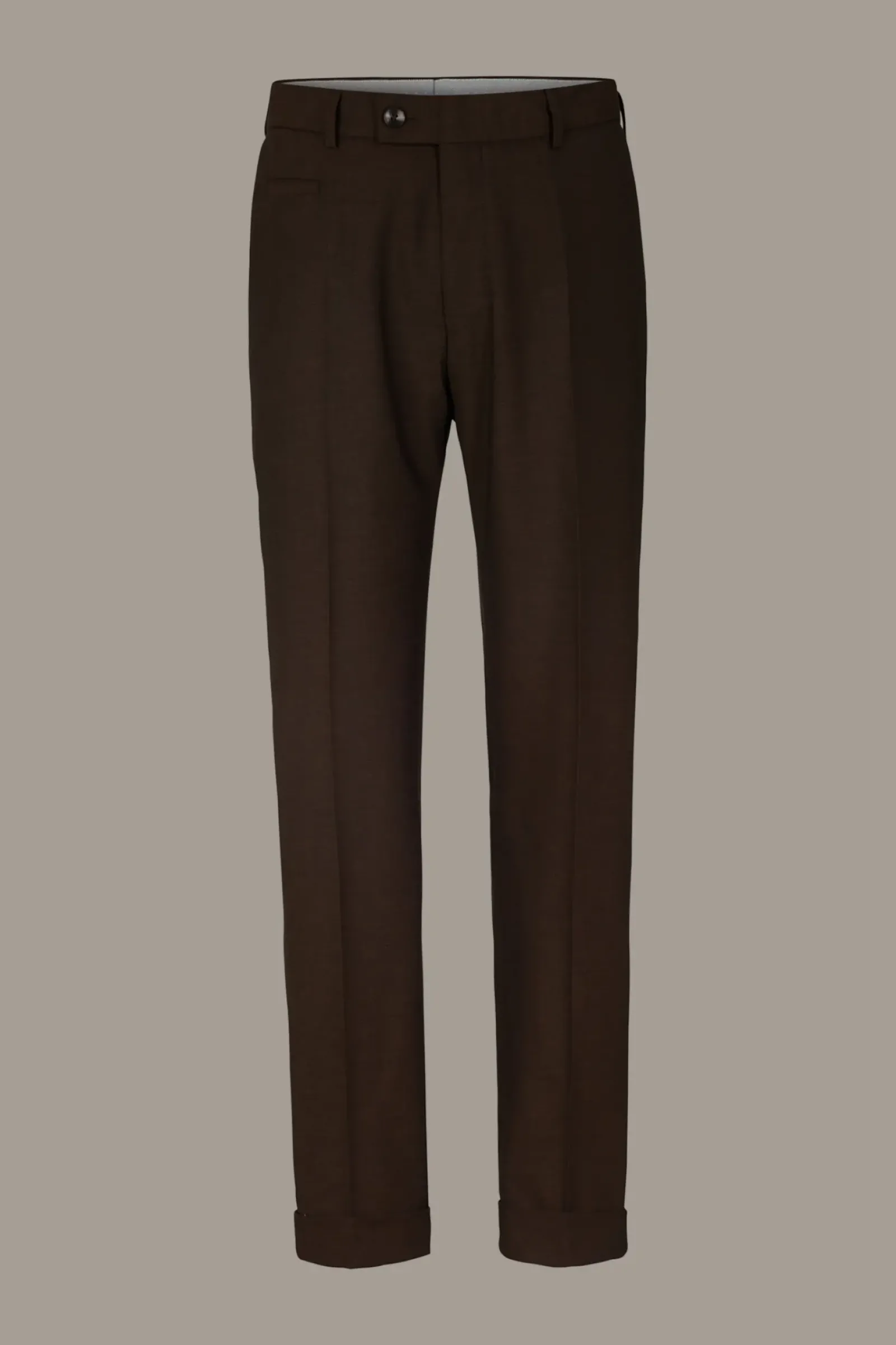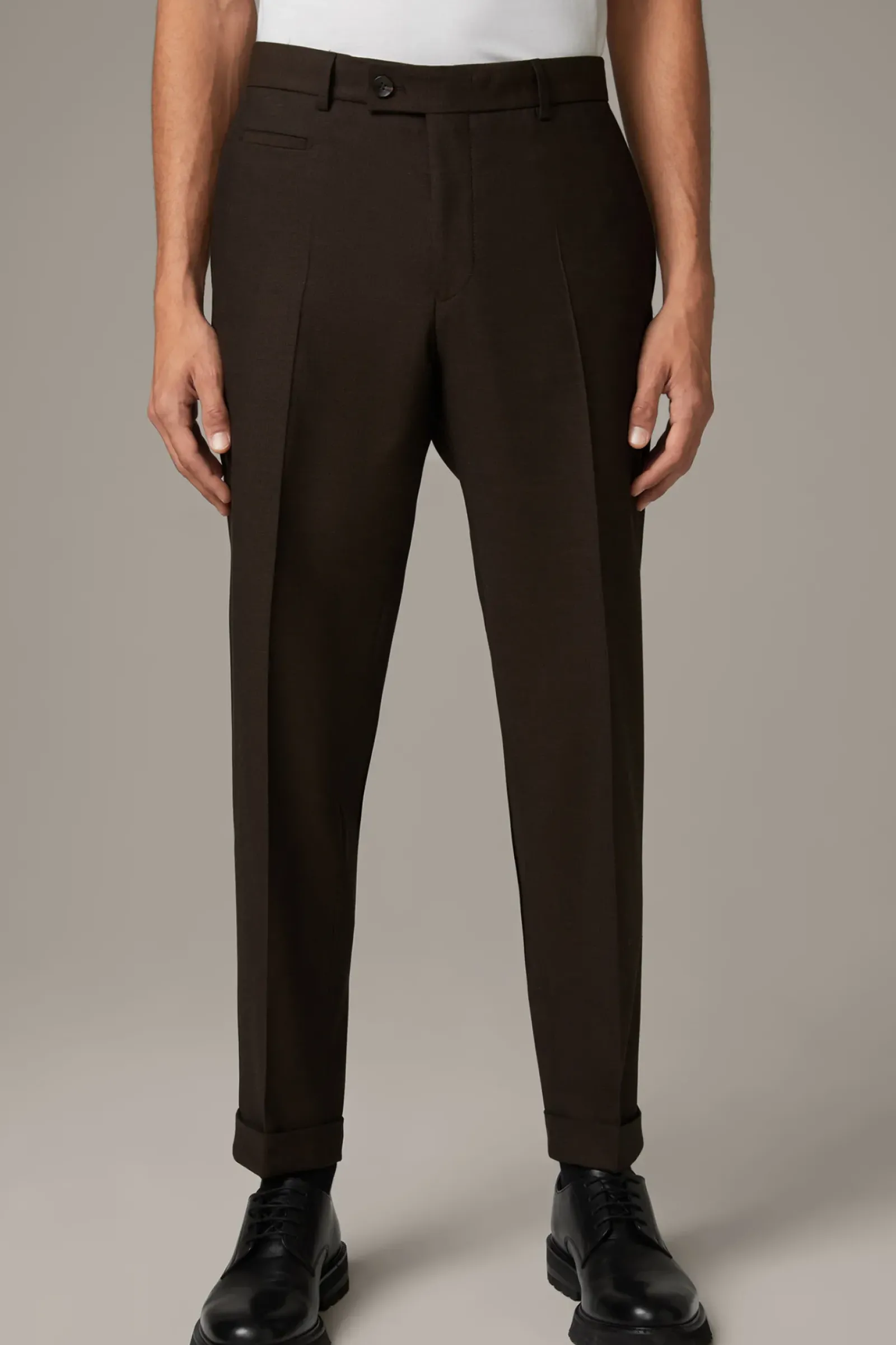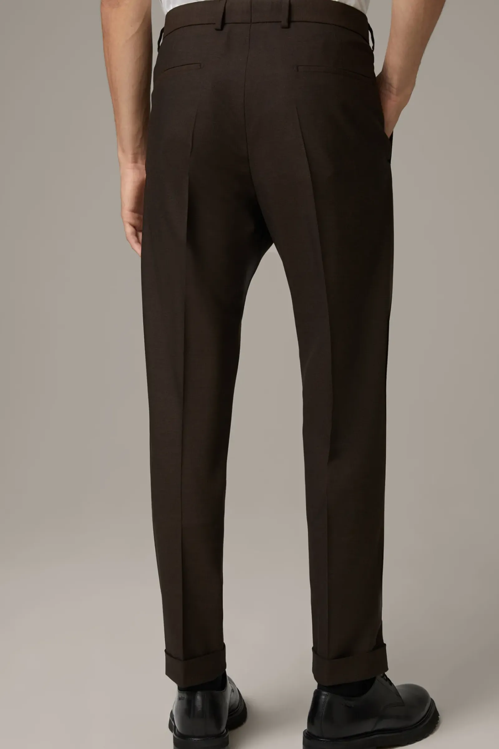 Im relaxten Style präsentiert sich die Anzughose Luc. Klassisches Flair verleihen Bügelfalten Knopfriegel und Taschen-Elemente. Fixierte Umschläge am Hosensaum sorgen für ein urbanes Finish.