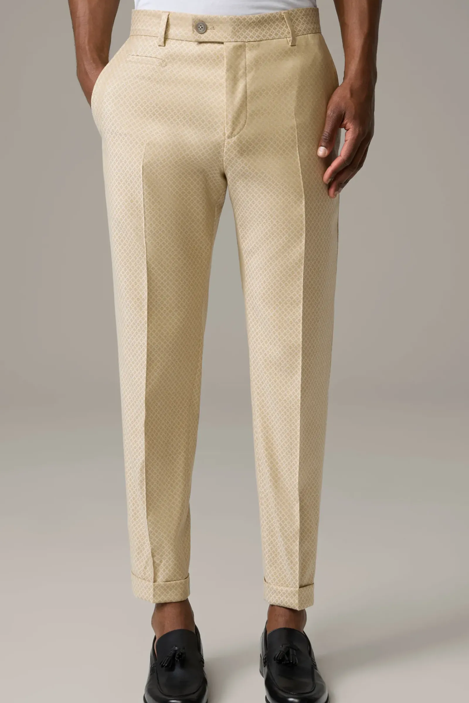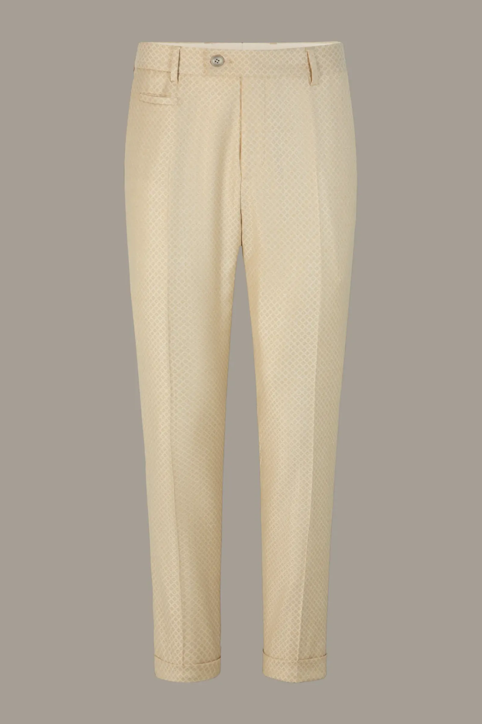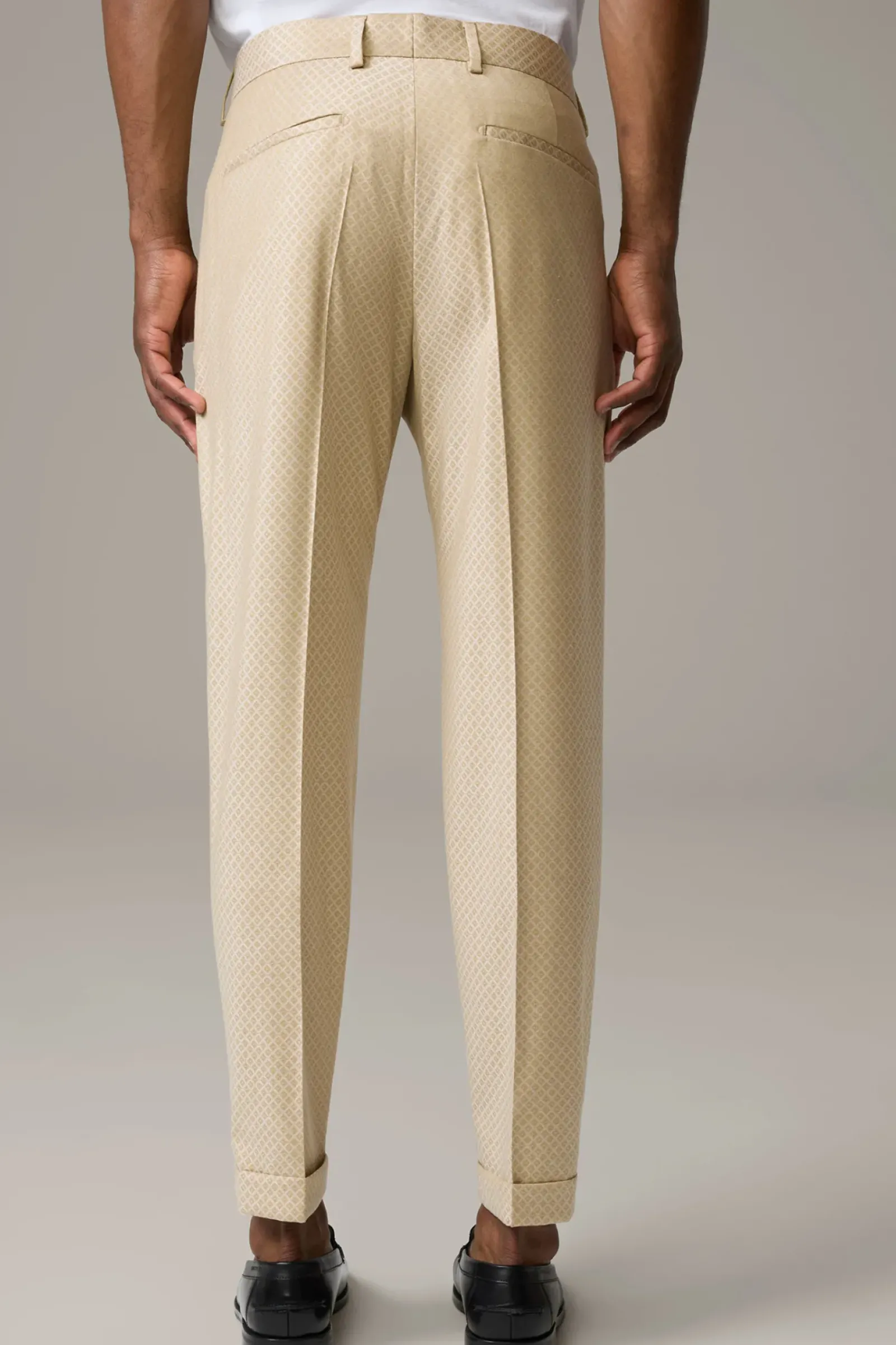 Eyecatcher: die Anzughose Luc im geometrischen Allover-Muster. Fixierte Umschläge und Leistengesäßtaschen ergänzen den Look. Relaxter Fit. Perfekt zu kombinieren mit dem passenden Sakko Ayres.