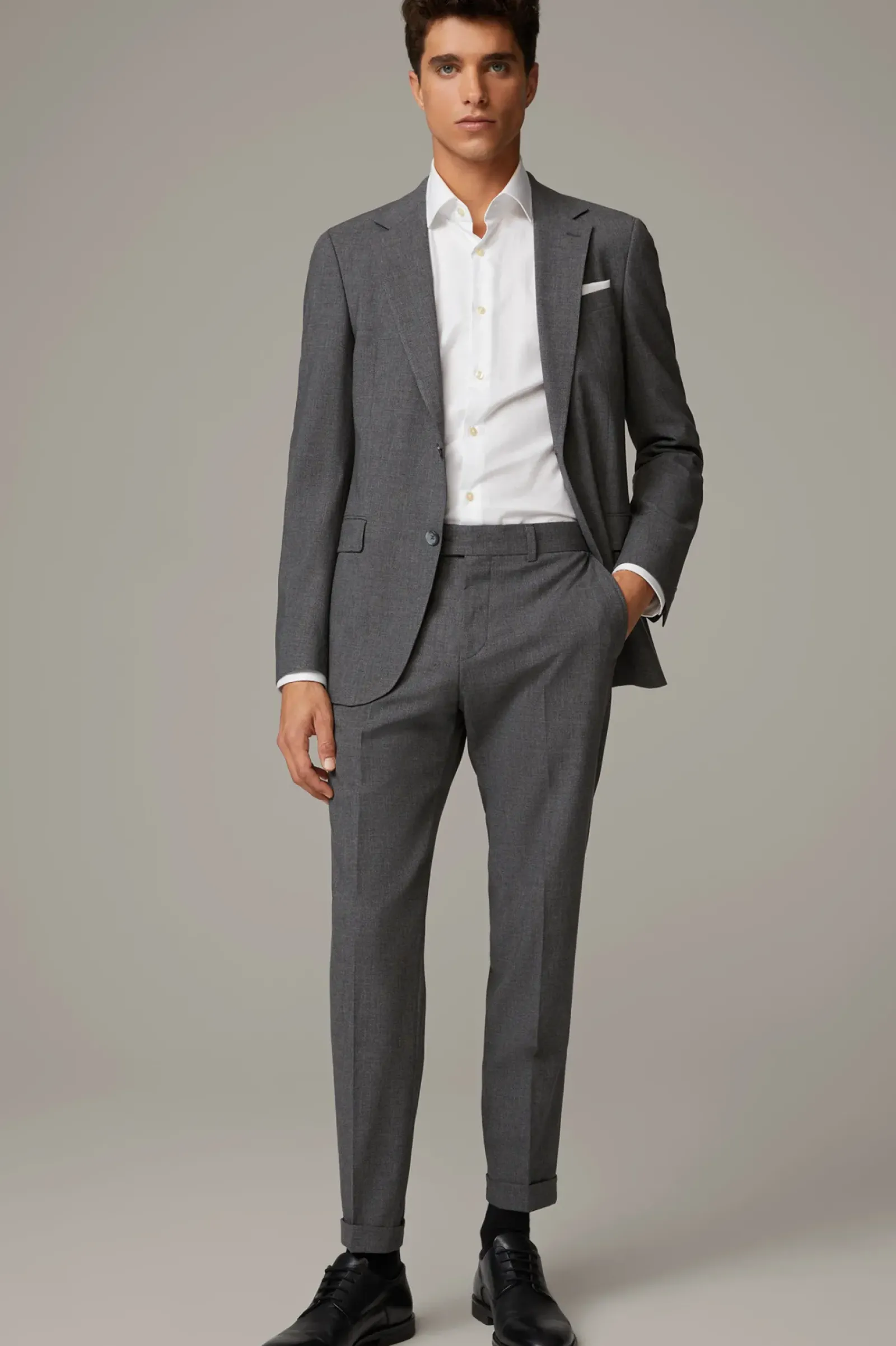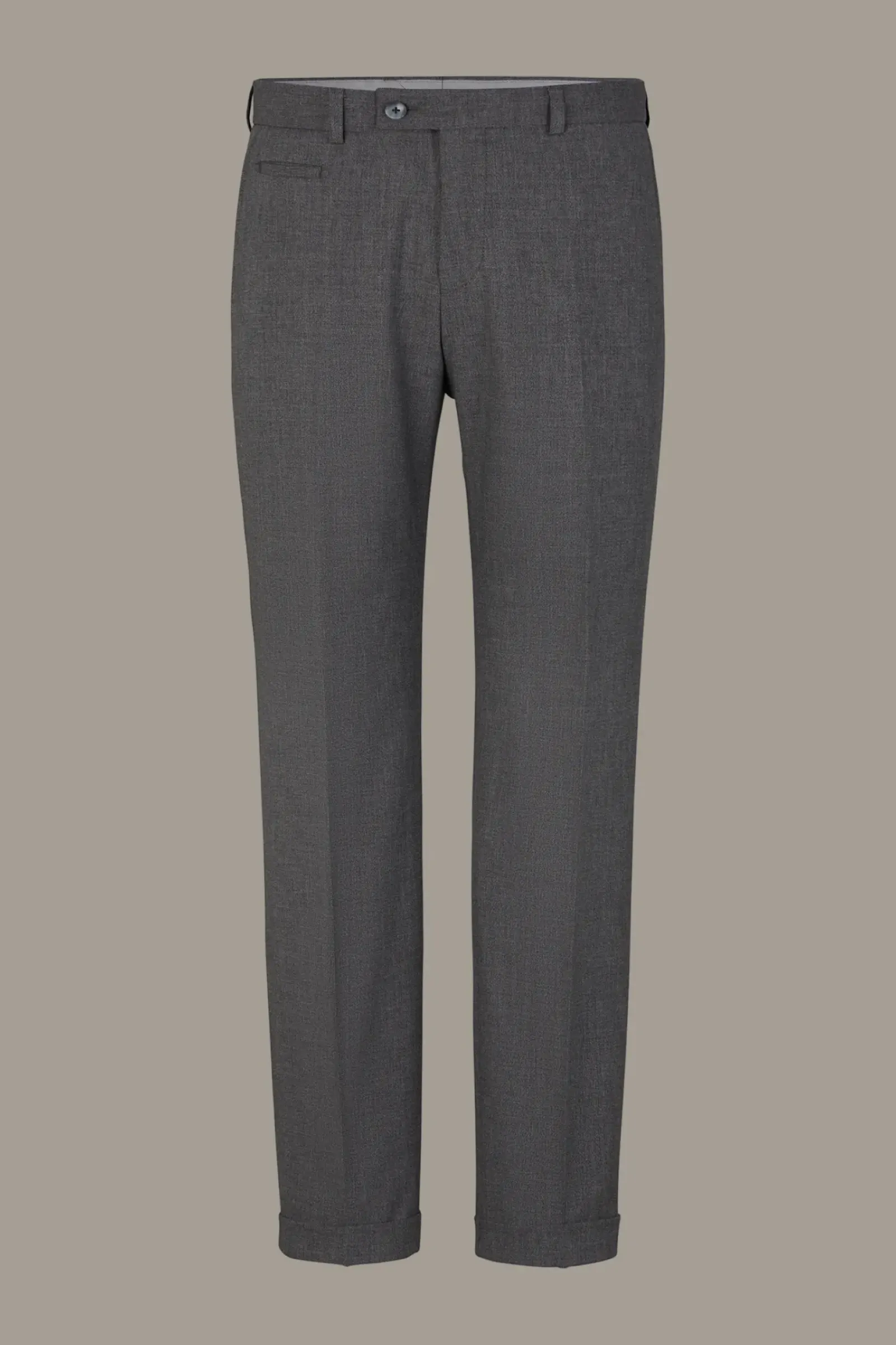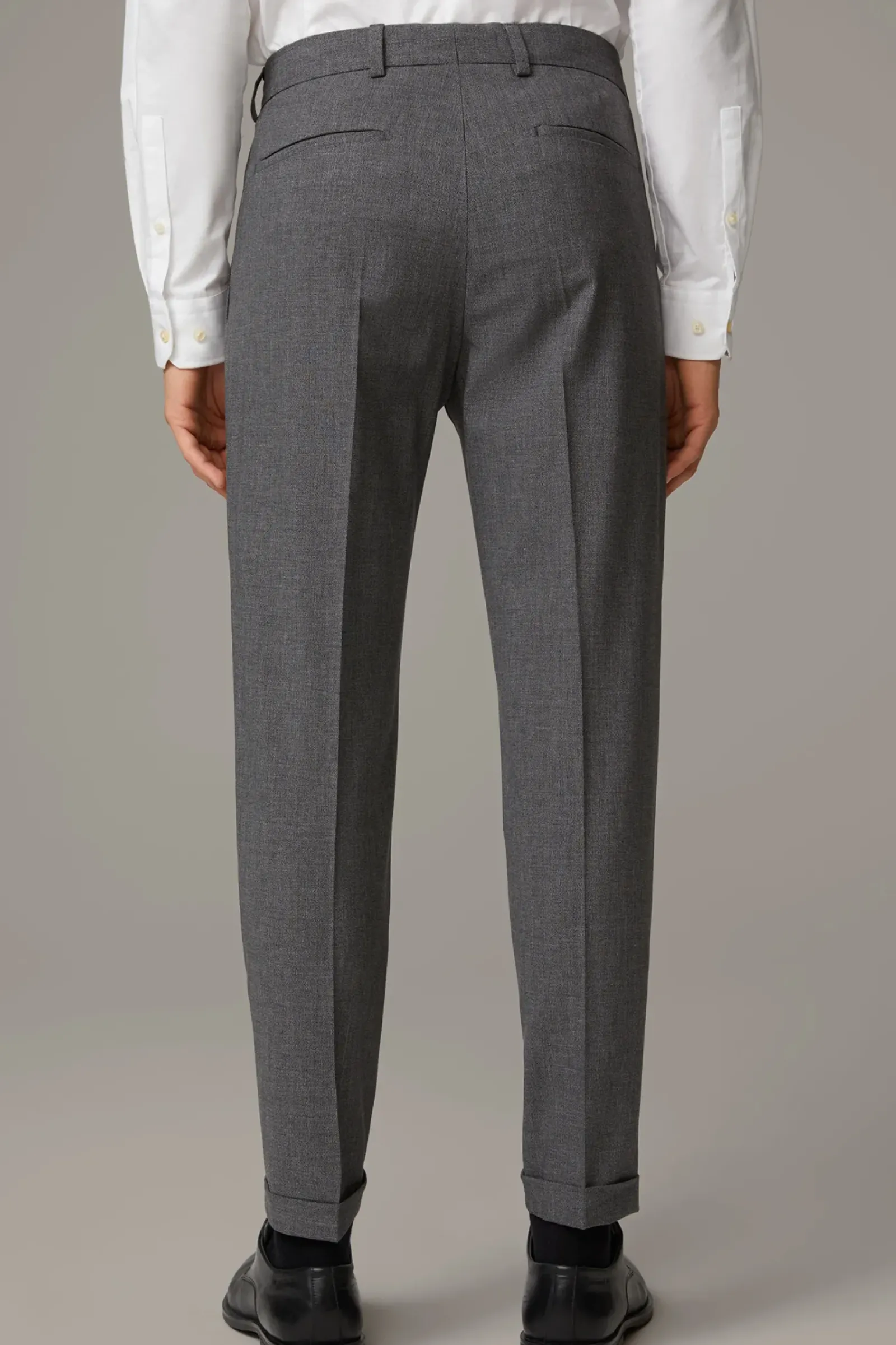 Im relaxten Style präsentiert sich die Anzughose Luc. Klassisches Flair verleihen Bügelfalten Knopfriegel und Taschen-Elemente. Fixierte Umschläge am Hosensaum sorgen für ein urbanes Finish.