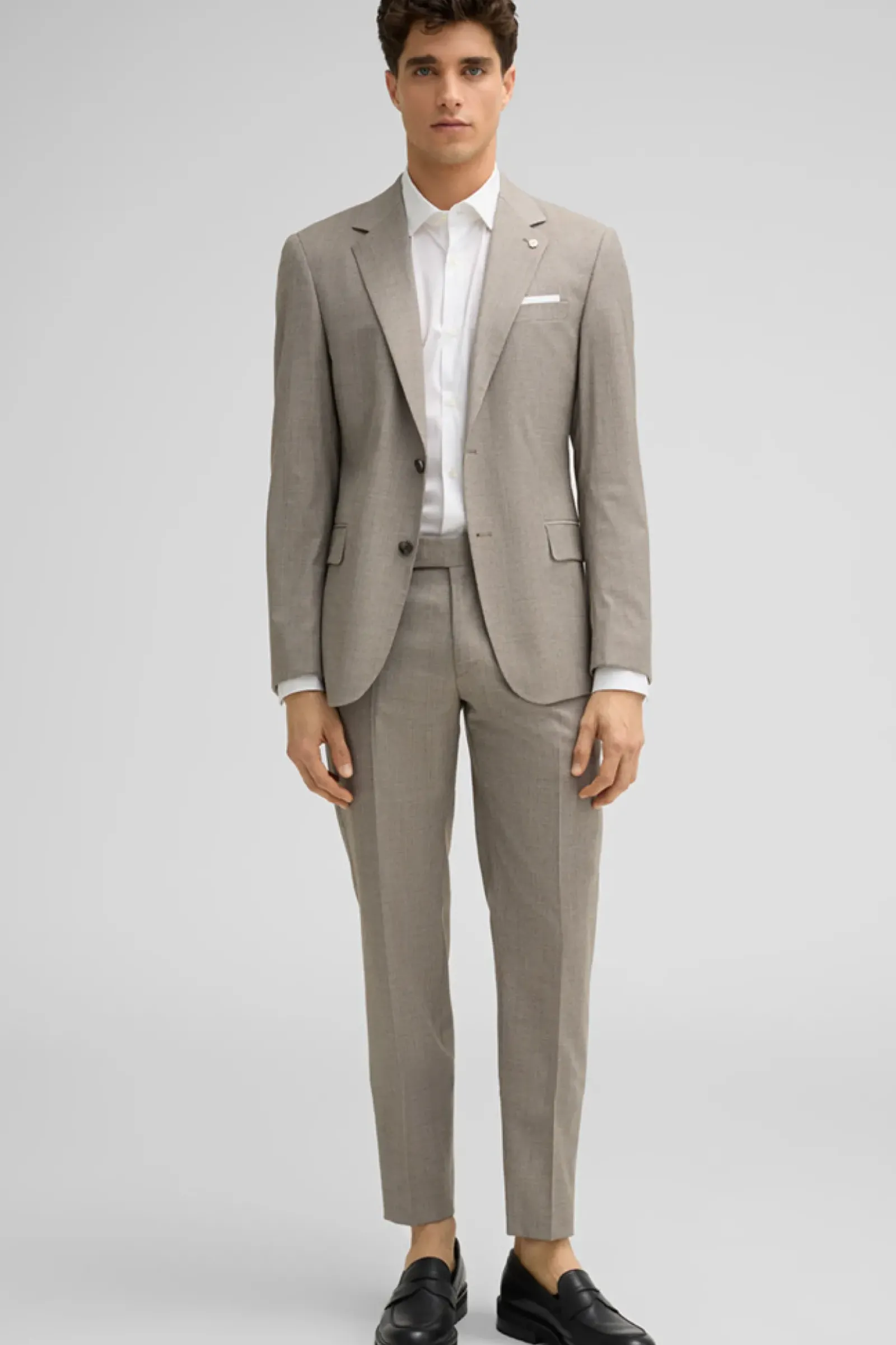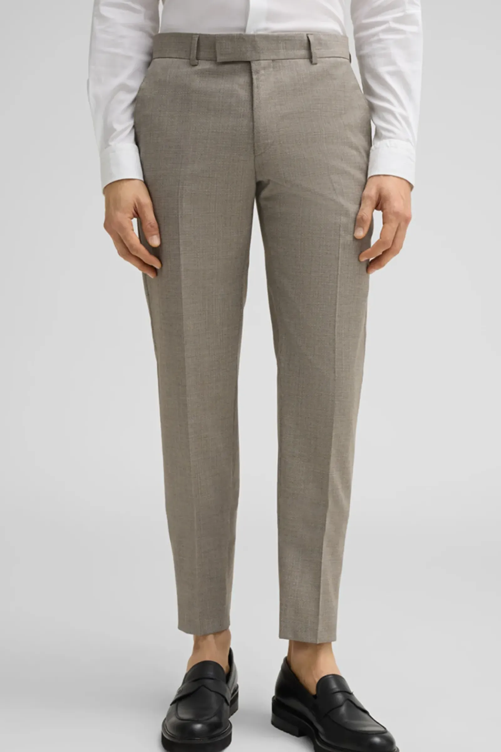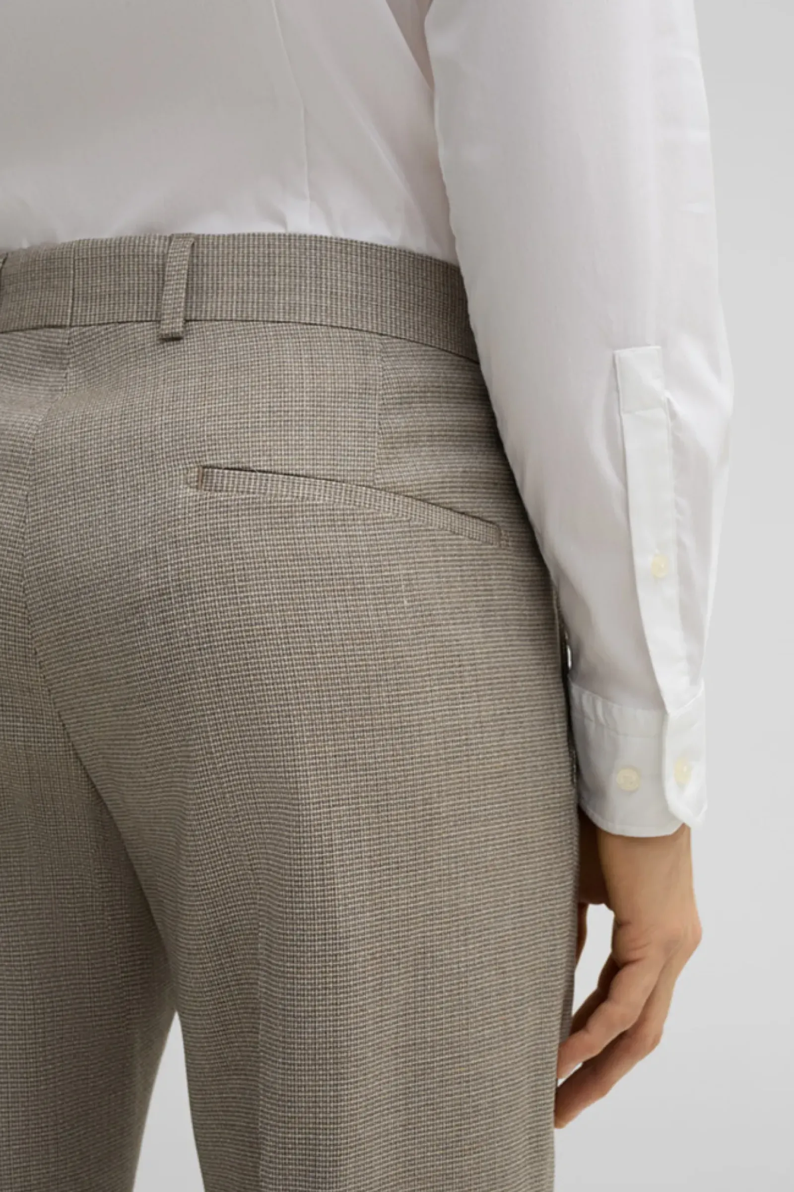 Suitable – die Anzughose Melwin aus Schurwollmix mit Minimal-Muster, stilvoll als Match mit dem passenden Sakko der Baukasten-Serie. Mit Paspelgesäßtaschen und Bund mit verdecktem Haken-Zip-Verschluss.