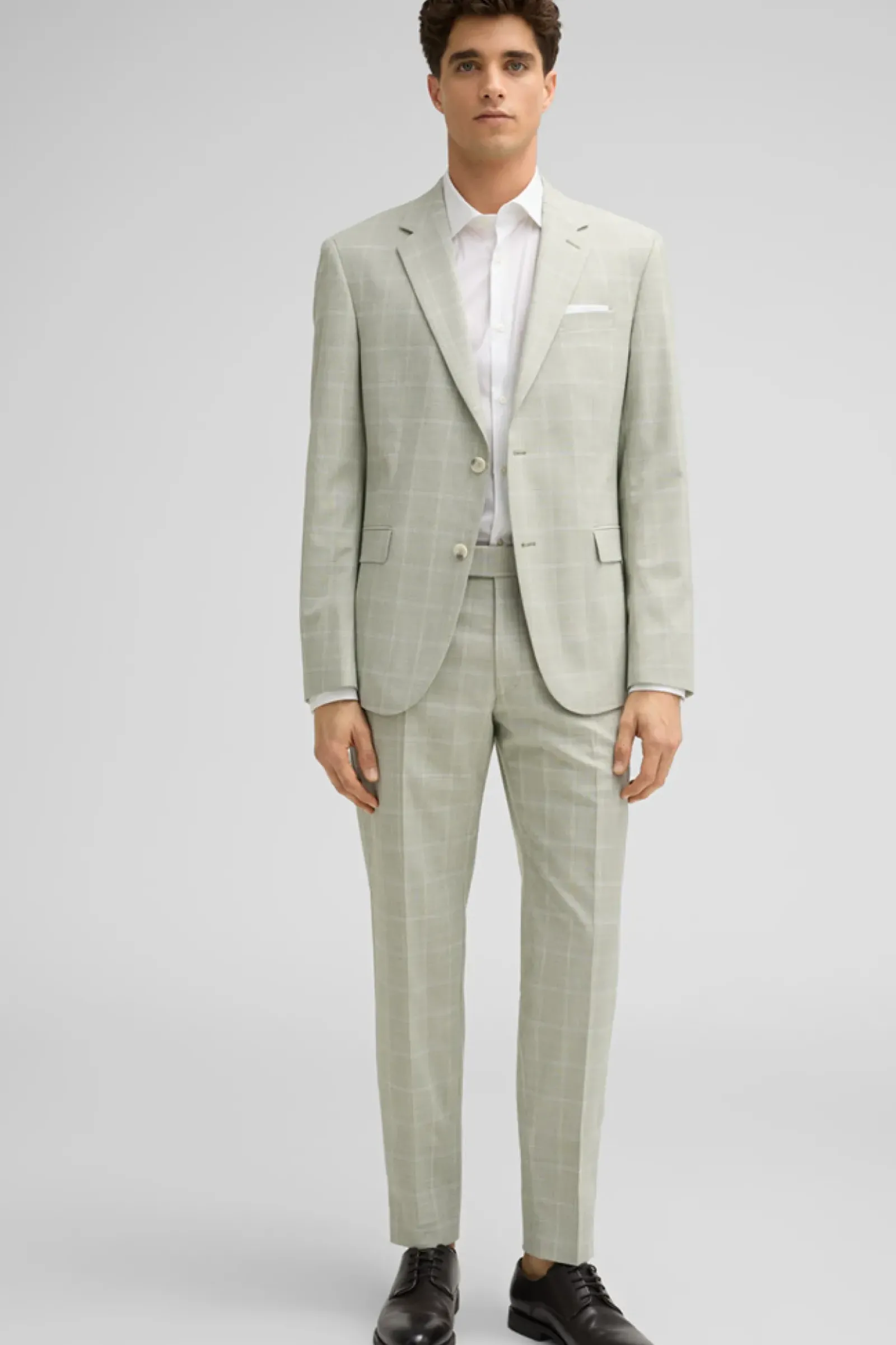 Aus stretchiger Tech-Viskose im Karo-Design: die Anzughose Melwin mit klassischen Details wie einer verdeckten Hakenschließe, paspelierten Gesäßtaschen sowie Bügelfalten. Modern abgerundet durch die schmale Silhouette.