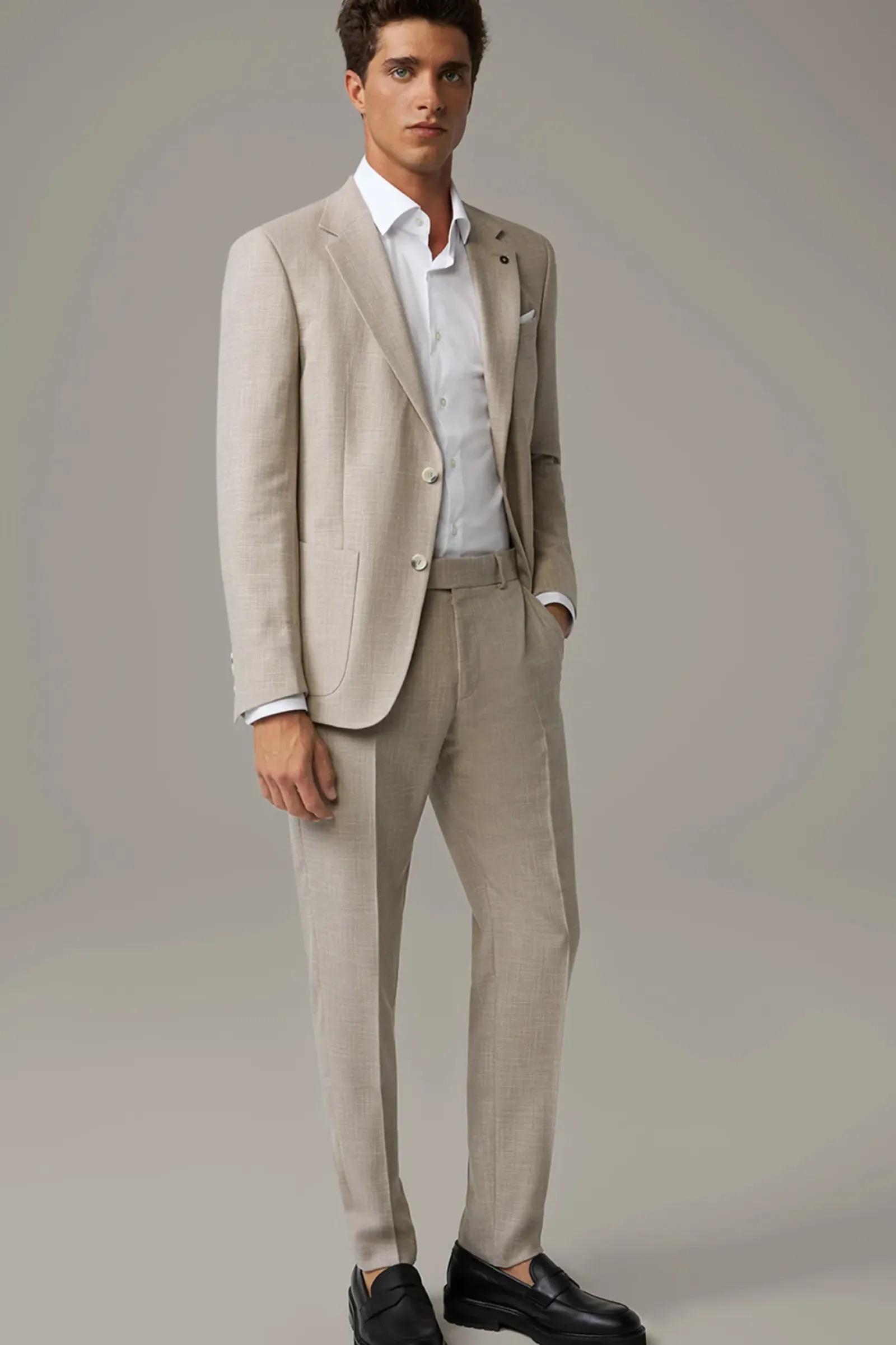 Ob zum T-Shirt oder smart mit passendem Sakko Arndt – die Anzughose Melwin überzeugt als vielseitiger Allrounder. Den klassischen Look ergänzen Bügelfalten, Paspelgesäßtaschen und die melierte Verarbeitung mit Leinen-Finish.