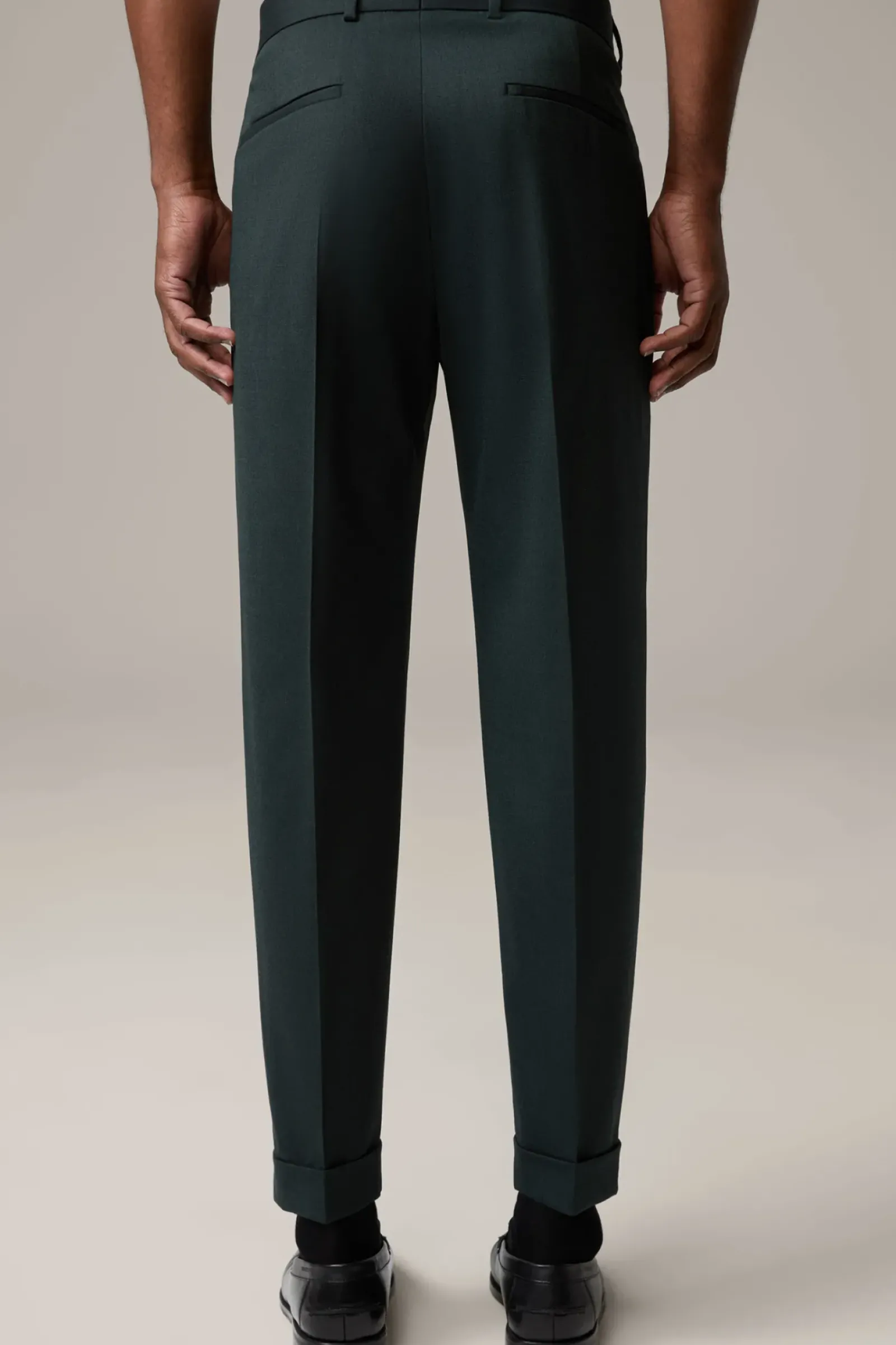 Im smarten Design: Bundfaltenhose Luis aus stretchigem Wollmix in lässiger Passform. Stimmig ergänzt durch Taschen-Details und die fixierten Umschläge am Hosensaum.