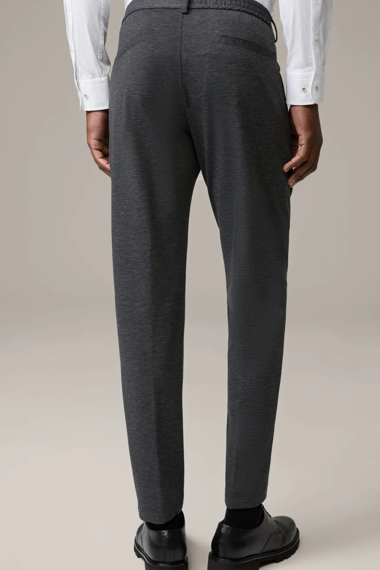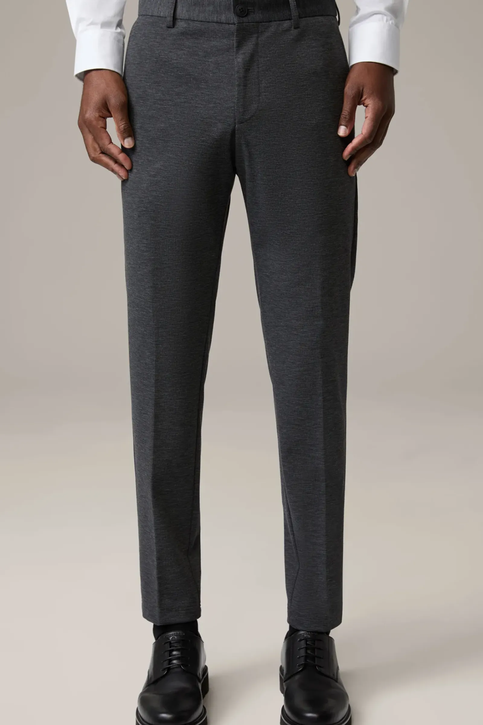 Casual Essential: Chino Tius in stretchiger Piqué-Verarbeitung. Die seitlichen Eingrifftaschen, ein teilelastischer Bund und der Zip-Verschluss runden das Piece komfortabel ab.