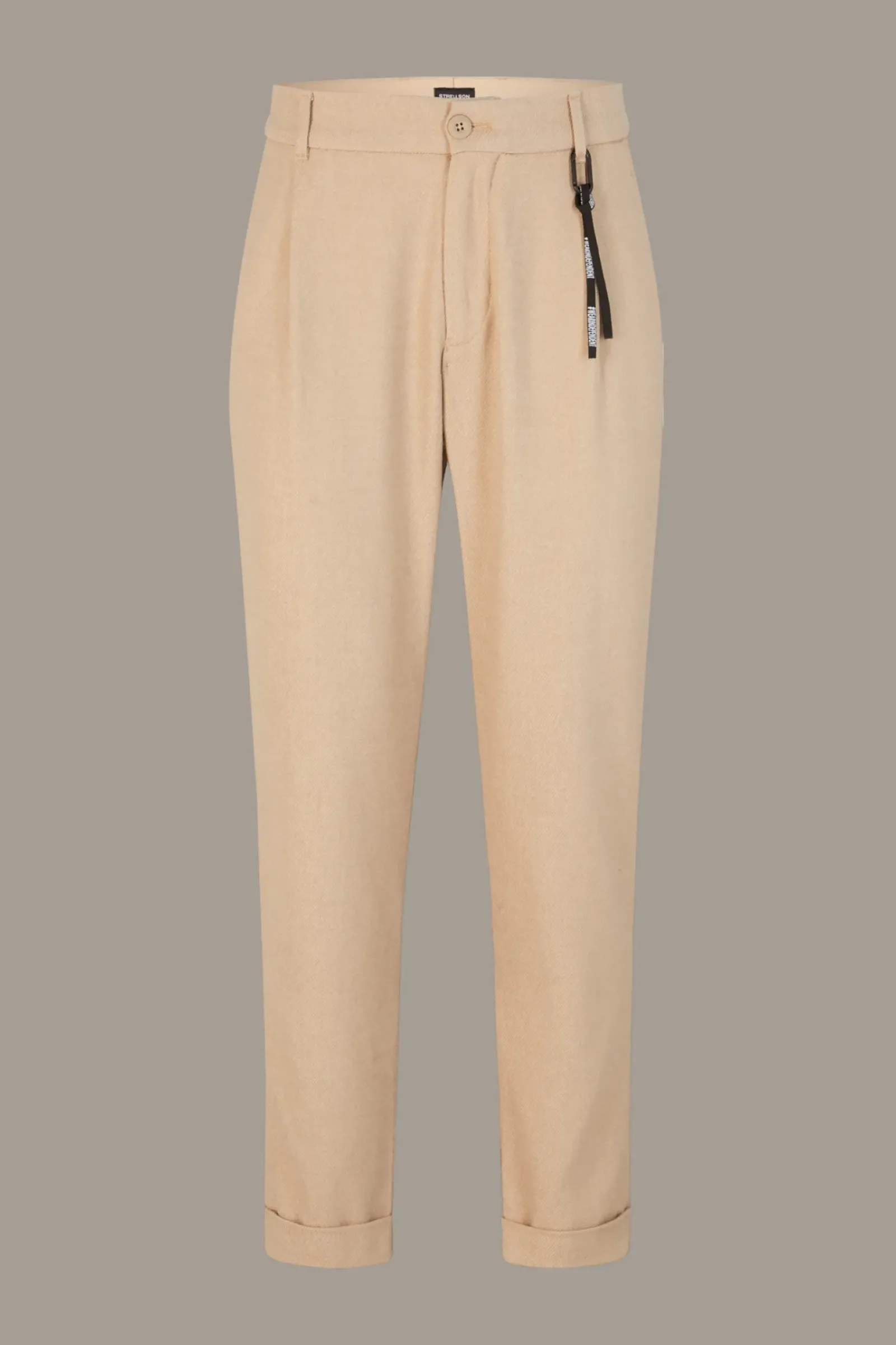 Überzeugt im stretchigen Viskose-Mix in verkürzter Länge: die Bundfaltenhose Louis. Leistengesäßtaschen und fixierte Umschläge zeichnen den Look aus. Inklusive Karabiner und Logoband.