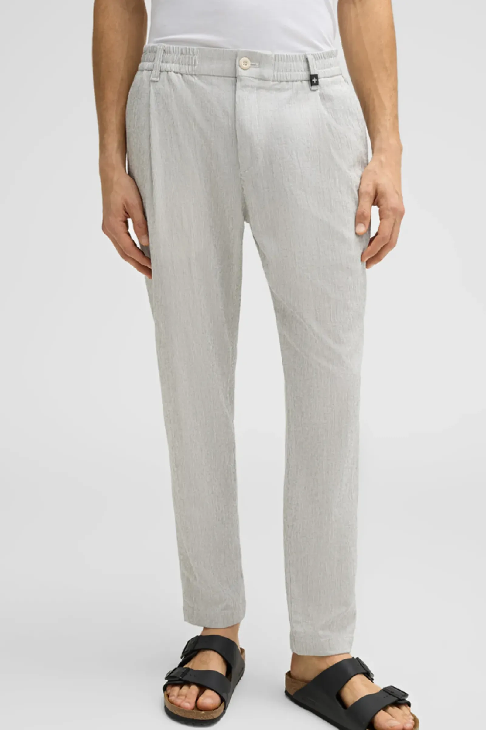 Im Streifen-Look: Bundfaltenhose Lui in lässiger Silhouette mit elastischem Bund und feinen Label-Details. Paspelgesäßtaschen und das Knopf-Zipper-Duo für einen klassischen Twist.