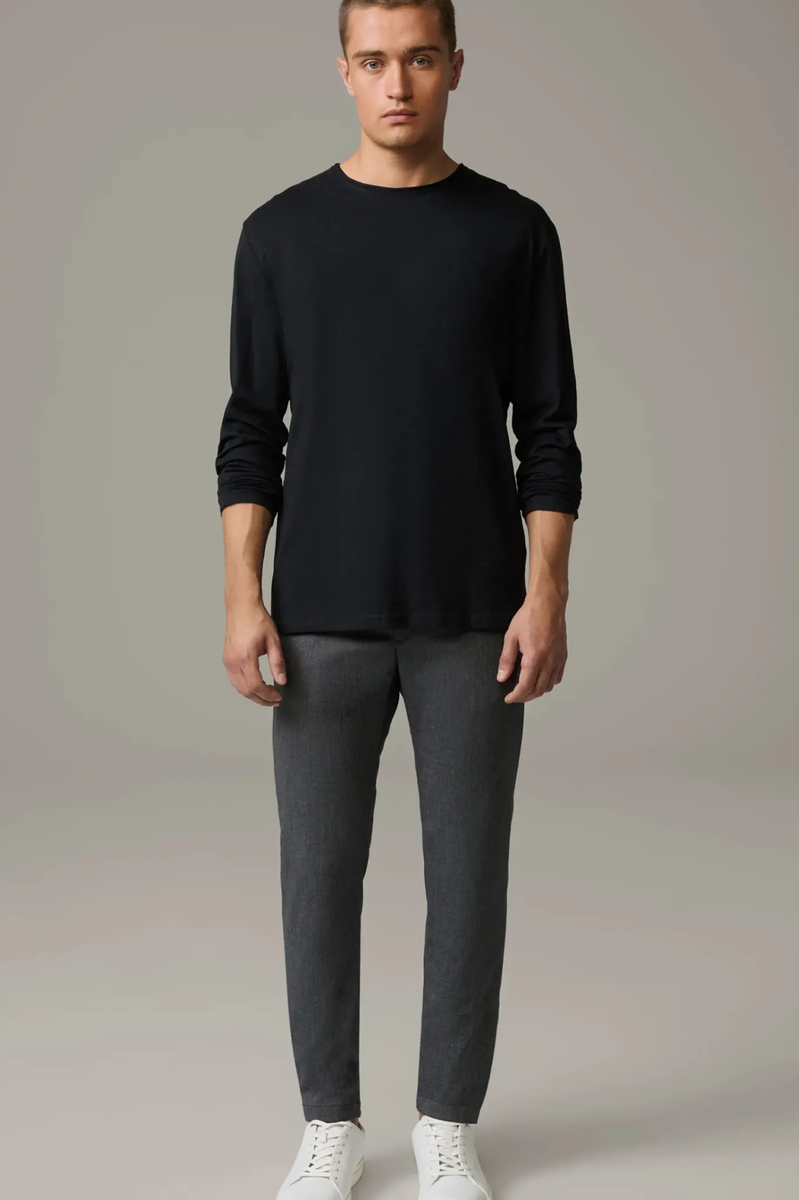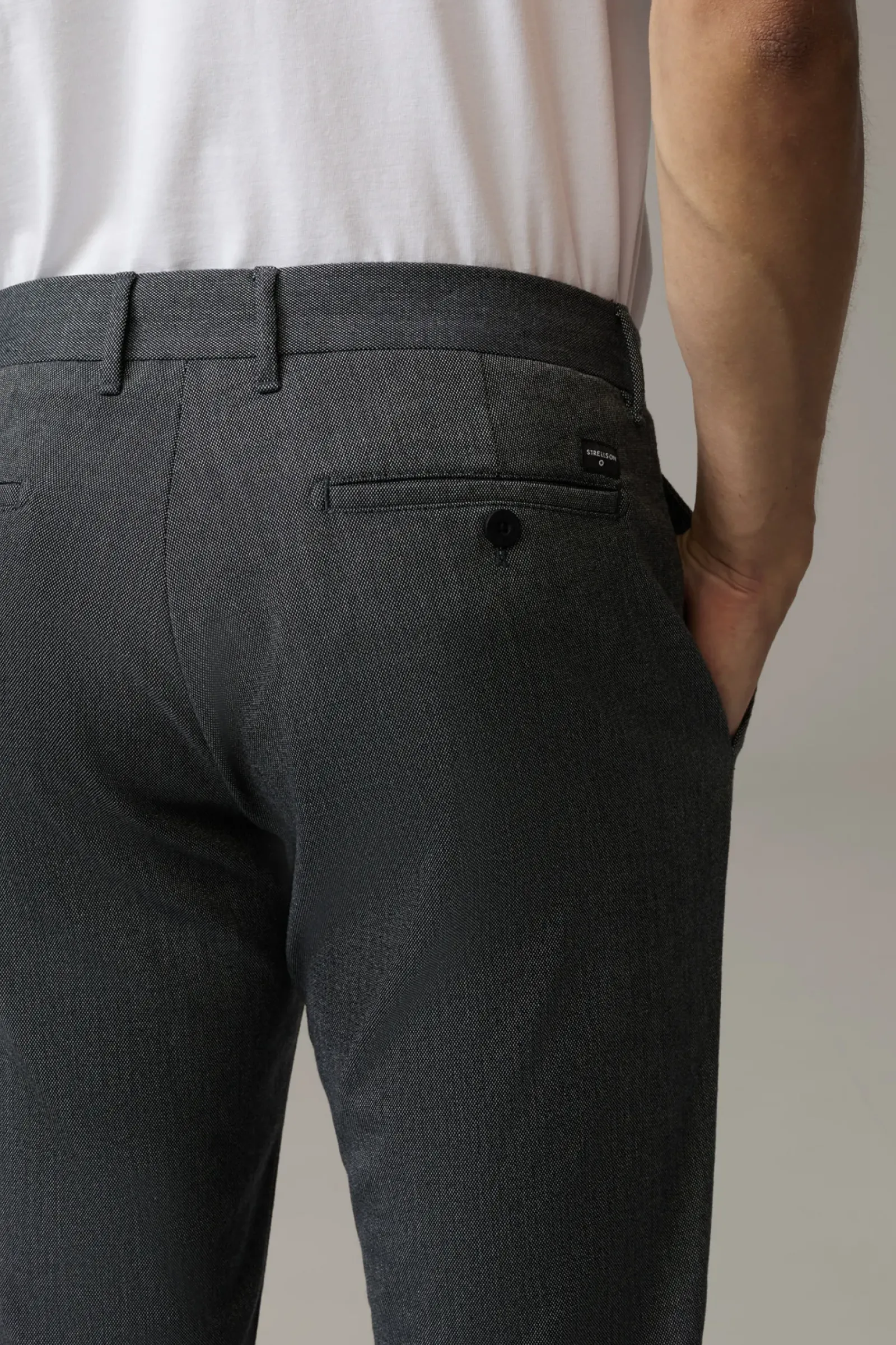 Die Chino Code überzeugt mit knöpfbaren Paspelgesäßtaschen und komfortablem Knopfriegel. Strukturierter Viskose-Mix.