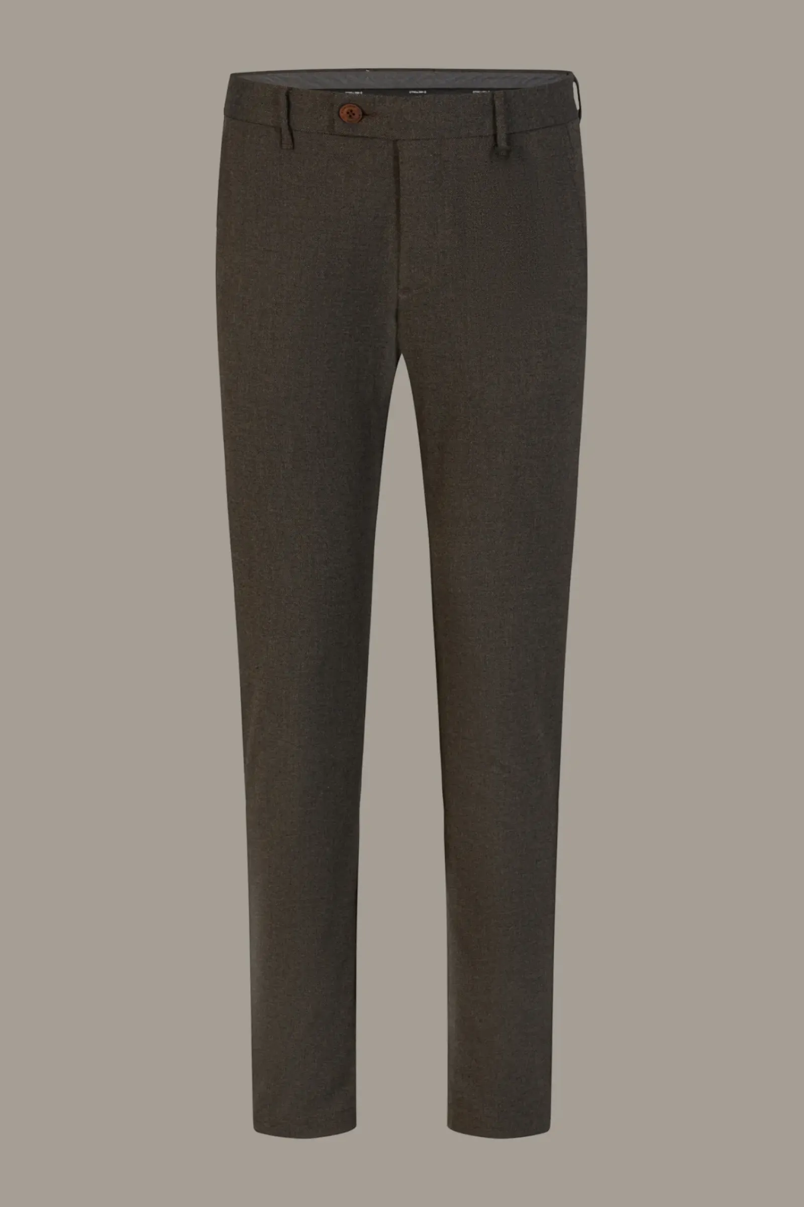 Die Chino Code überzeugt mit knöpfbaren Paspelgesäßtaschen und komfortablem Knopfriegel. Strukturierter Viskose-Mix.