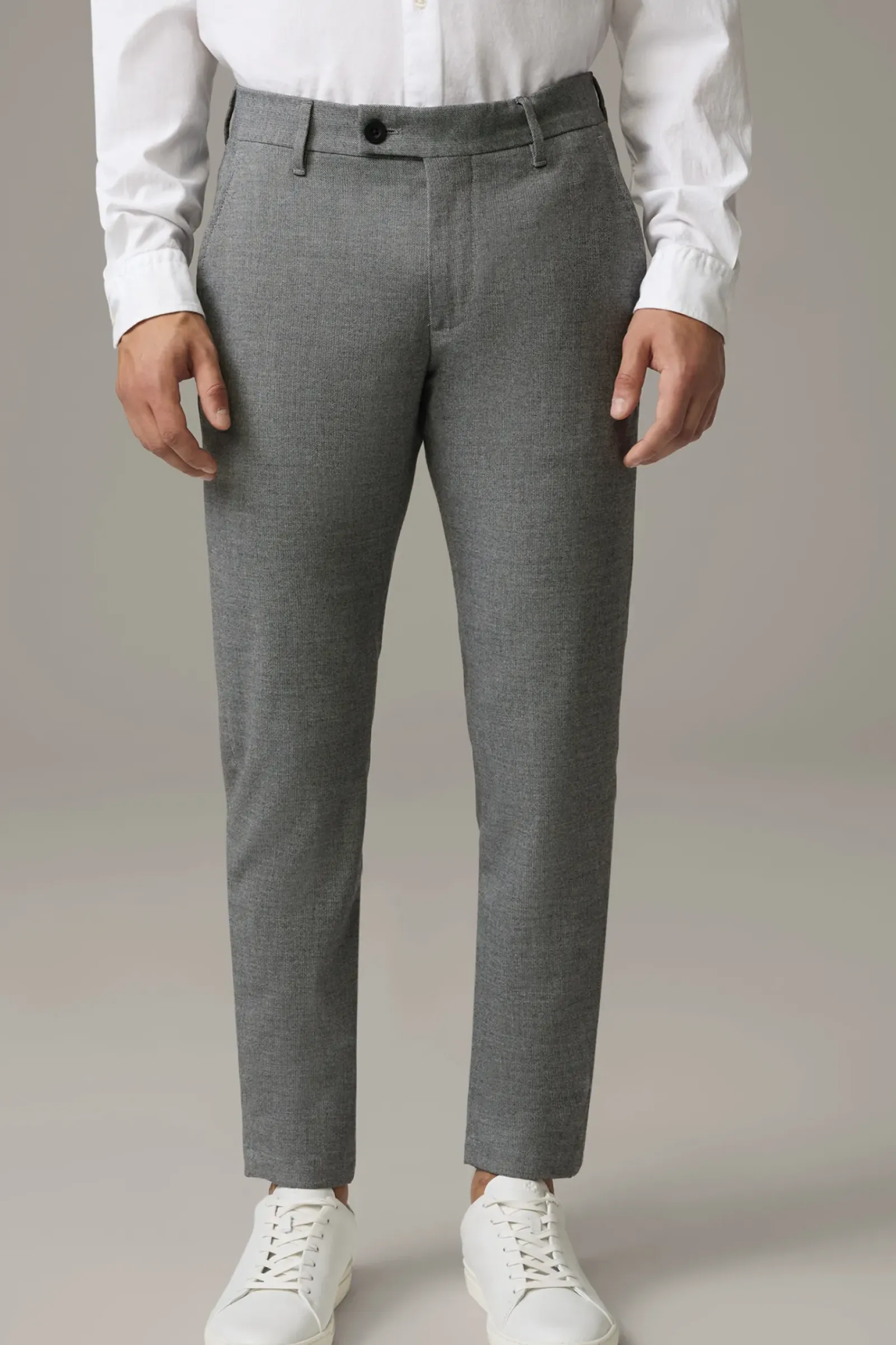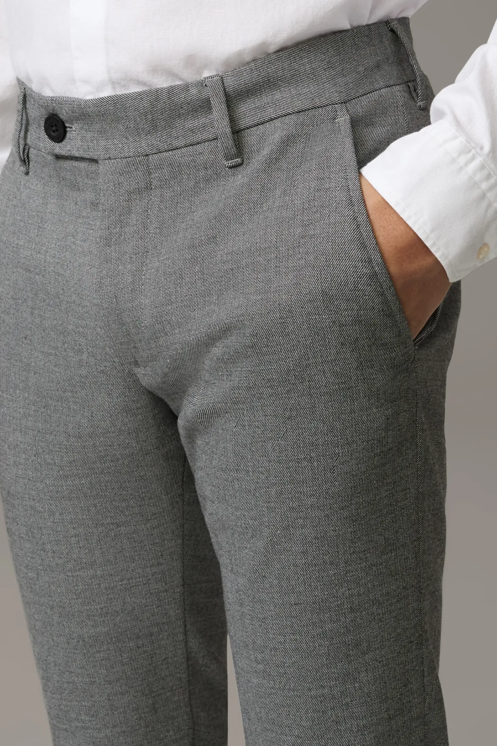 Die Chino Code überzeugt mit knöpfbaren Paspelgesäßtaschen und komfortablem Knopfriegel. Strukturierter Viskose-Mix.