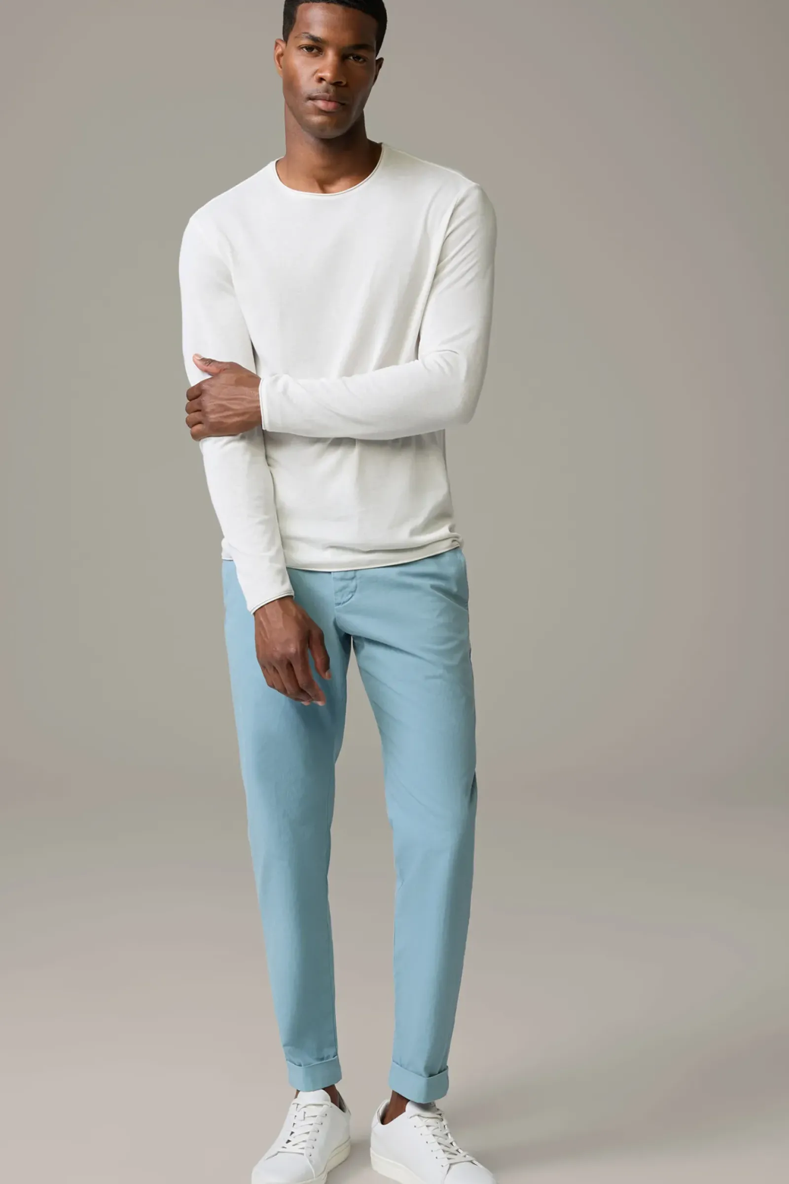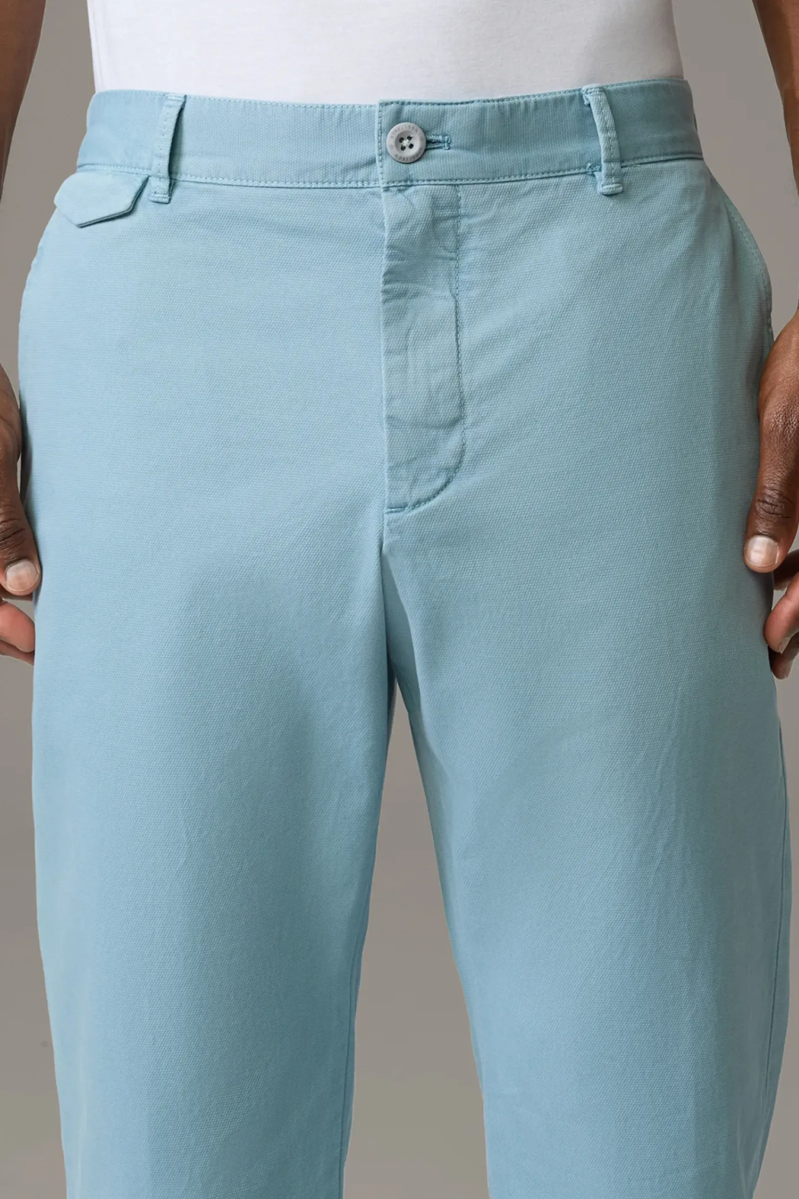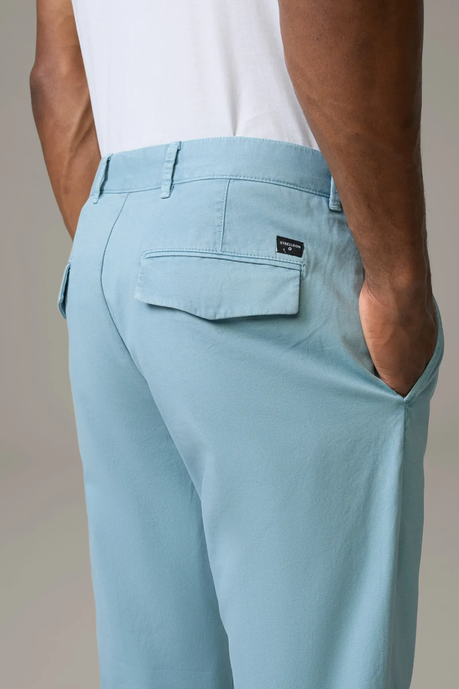 Die Chino Luc aus Cotton-Stretch überzeugt in elastischer Qualität und dezent strukturierter Optik. Mit Pattengesäßtaschen und fixiertem Umschlag am Hosensaum.