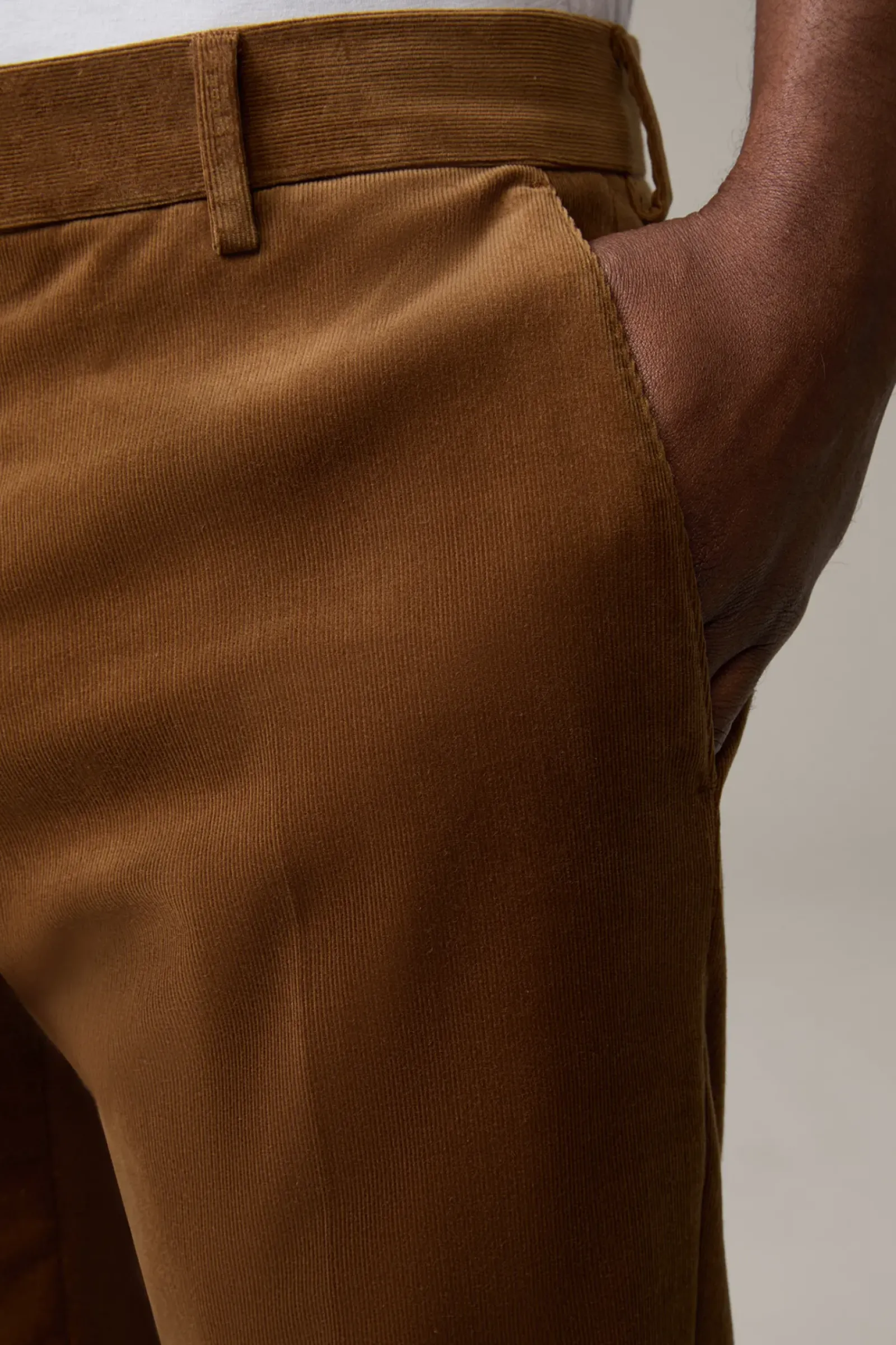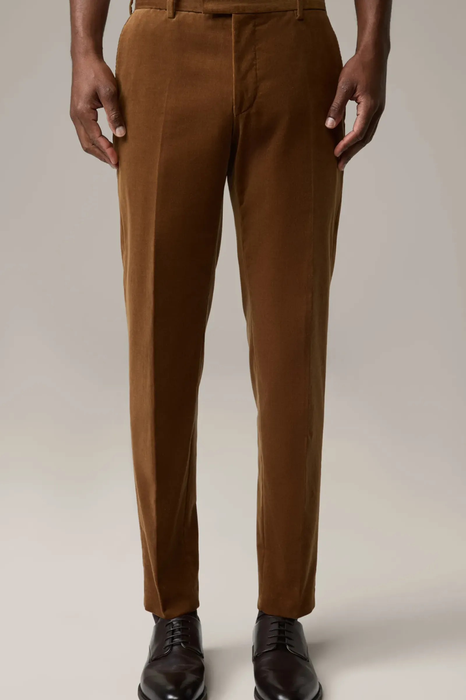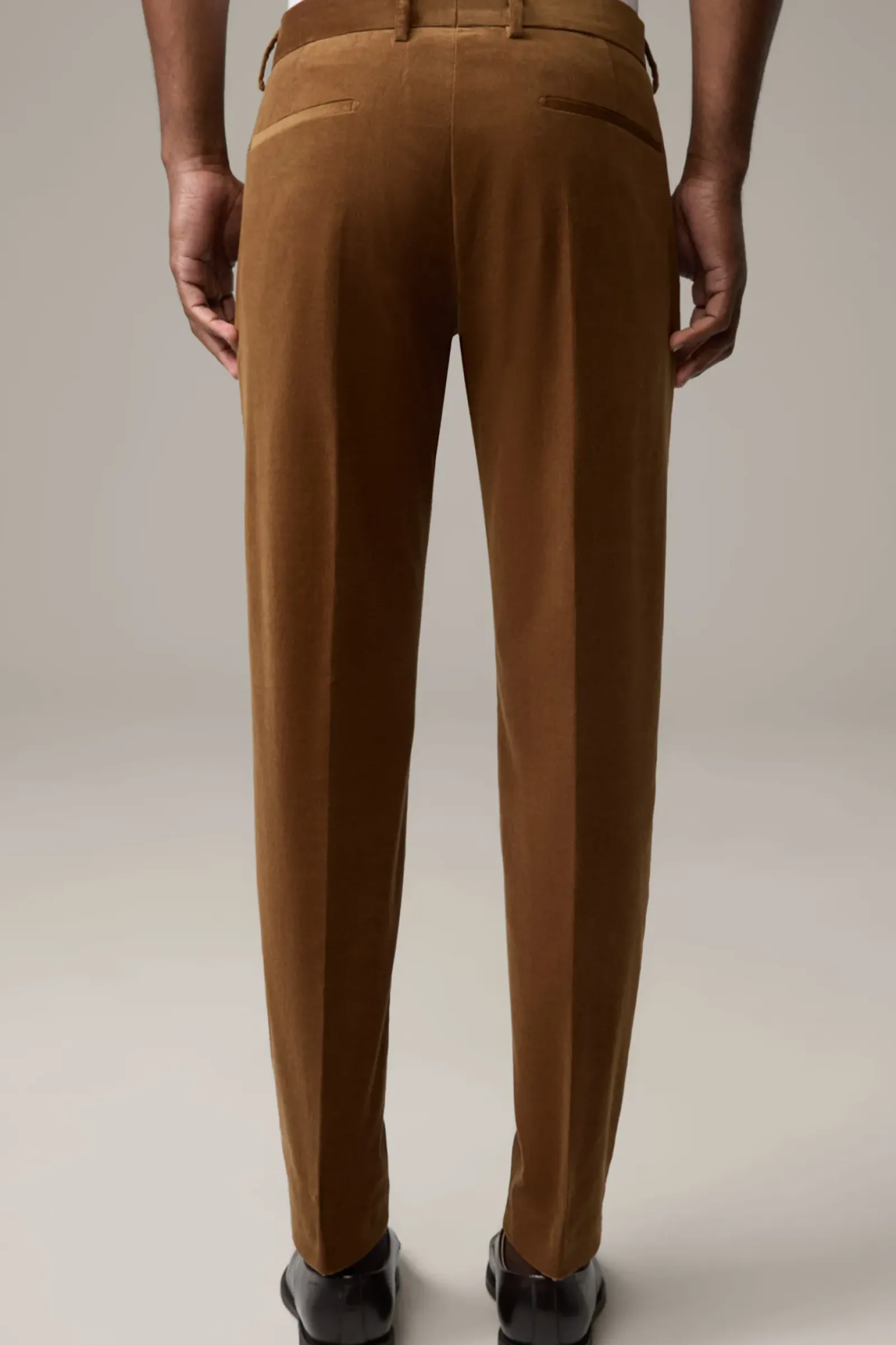 Komfortabel und stylisch: die Anzughose im Cord-Design mit Bügelfalten, Leistengesäßtaschen und doppelter Hakenschließe. Mit fließendem Kniefutter.