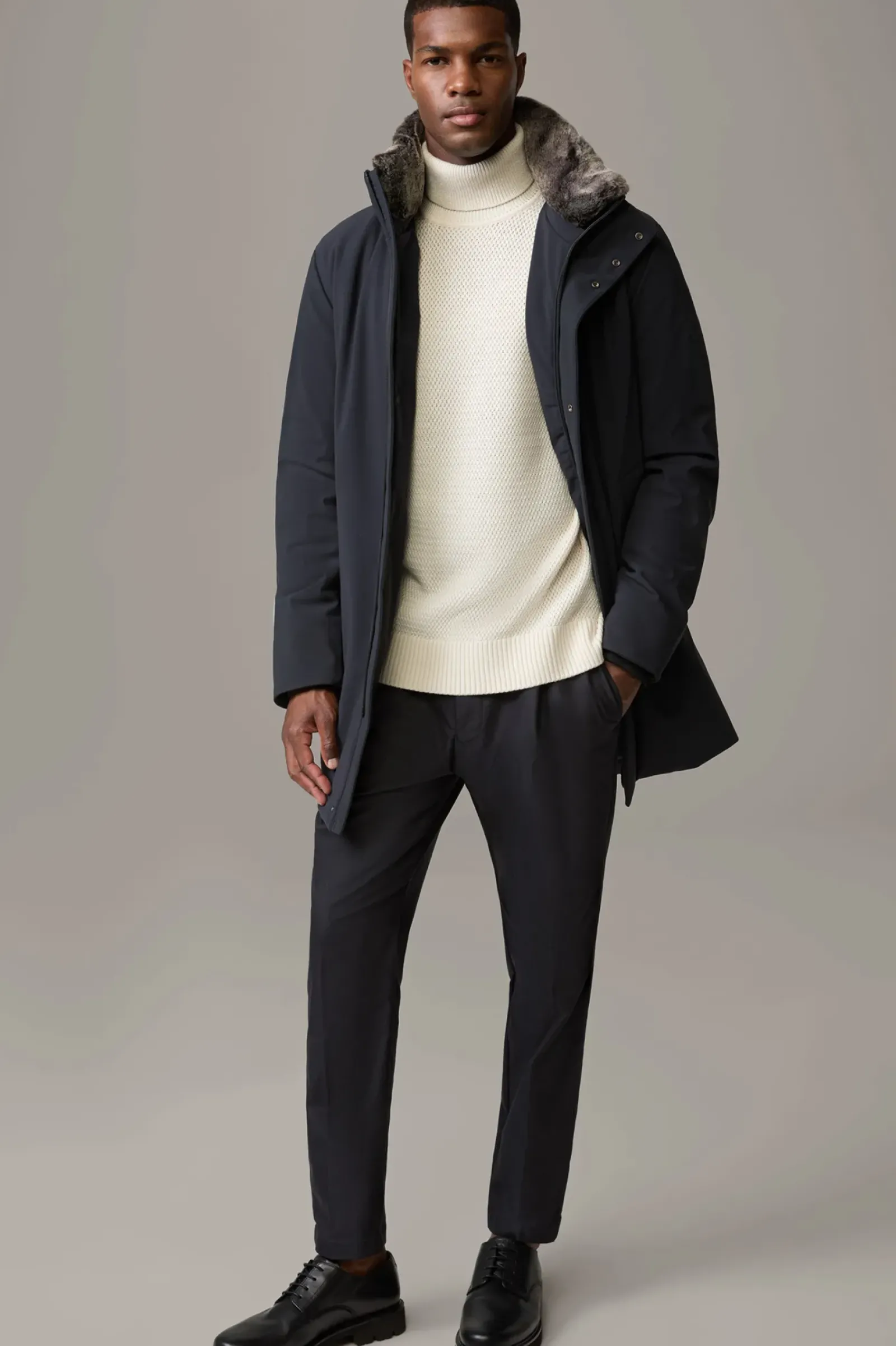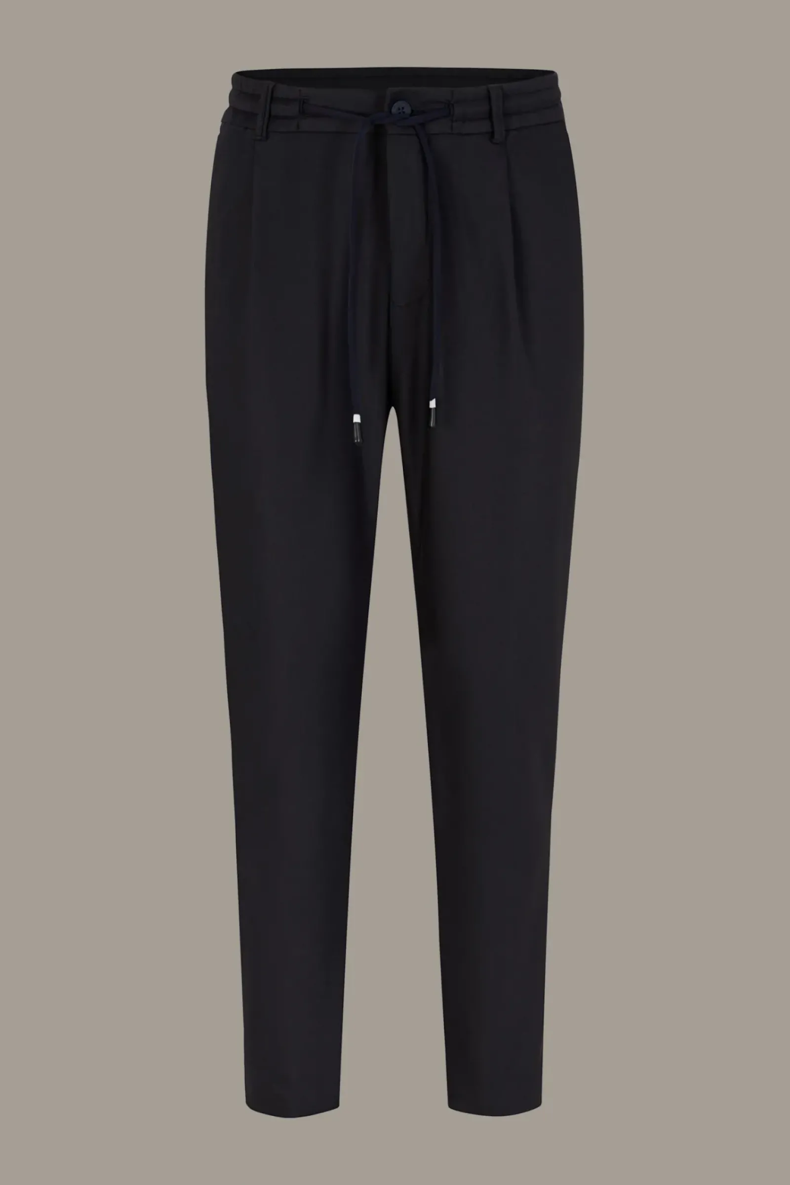 Begeistert mit Bundfalte im lässigen Stretch-Mix: die Anzughose Lui mit elastischem Tunnelzugbund und Leistengesäßtaschen. Relaxter Fit.