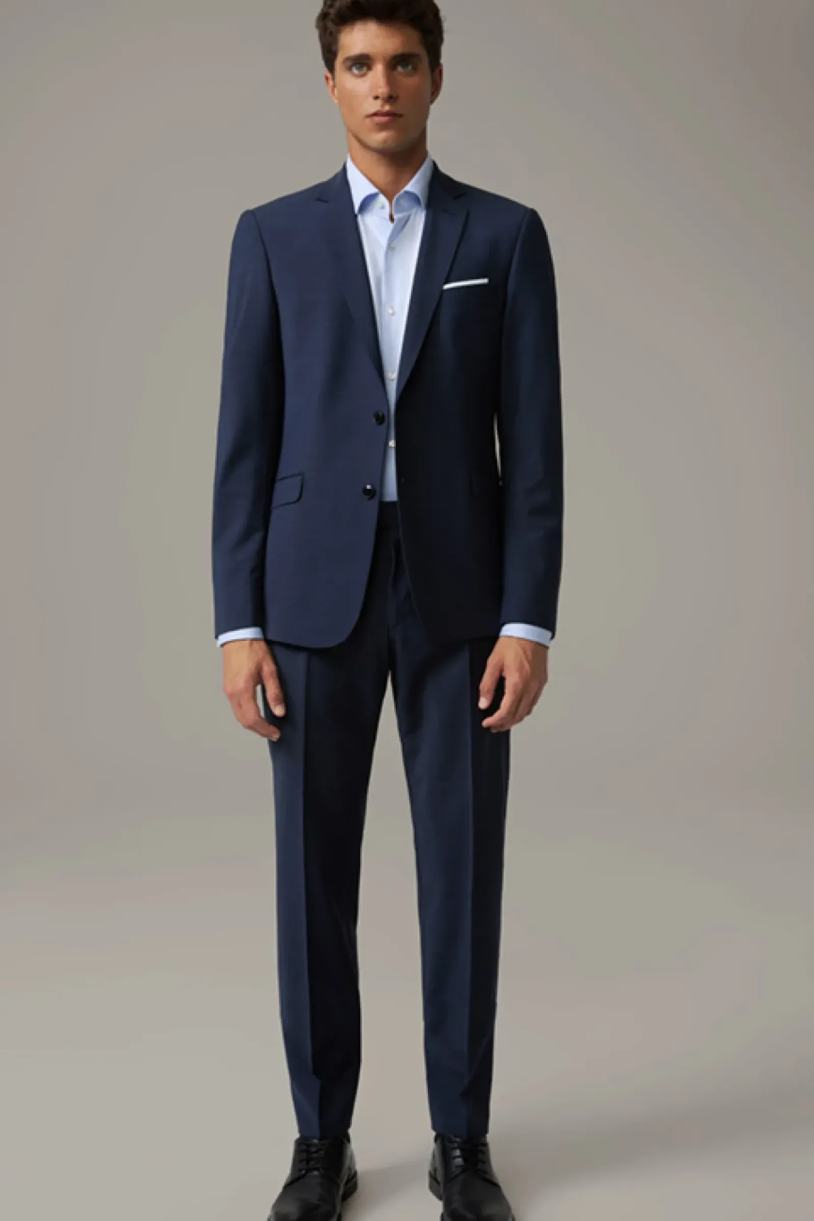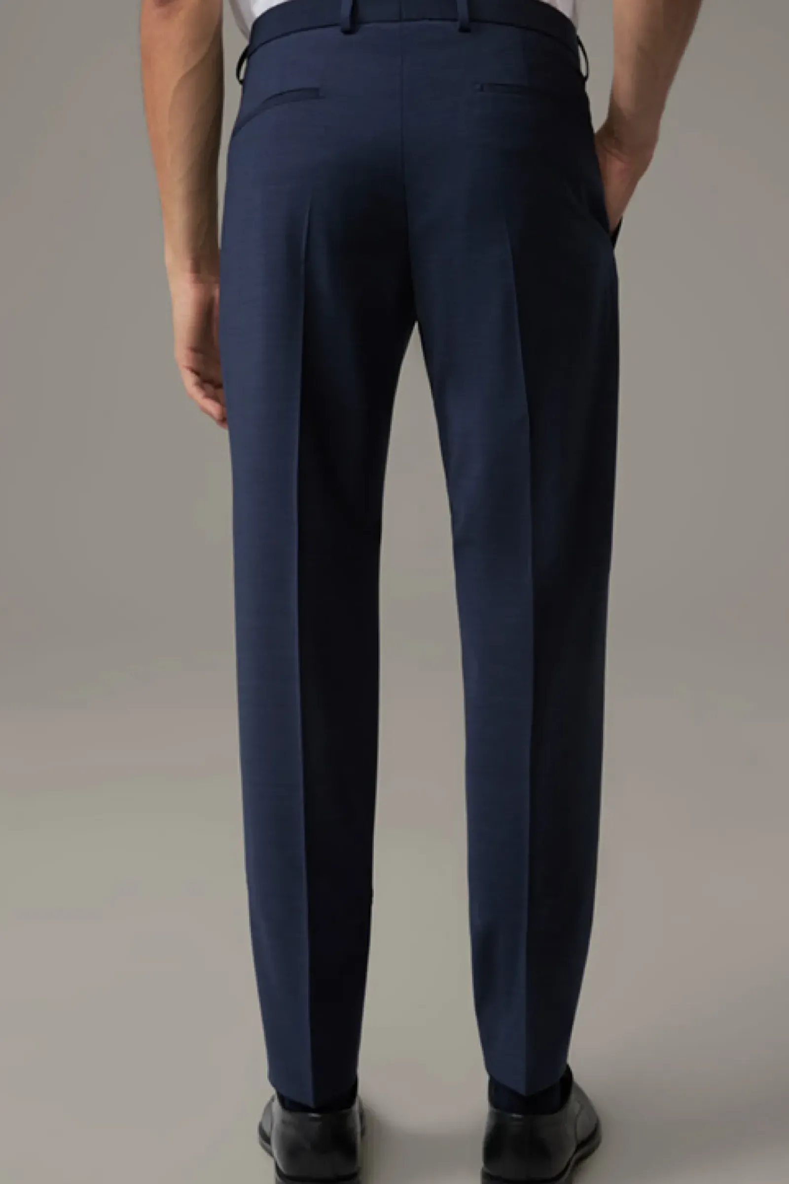 Begeistert im smarten Design: Die Anzughose Mercer mit Bügelfalten und doppeltem Hakenverschluss. Aus Woll-Stretch.