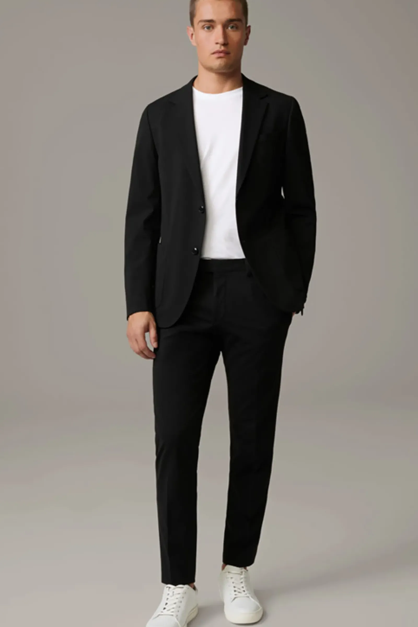 Die Anzughose Kynd begeistert im klassischen Bügelfalten-Look und leicht verkürzten Design mit Paspelgesäßtaschen und Doppelhaken. Dazu passend: das Sakko Arndt.