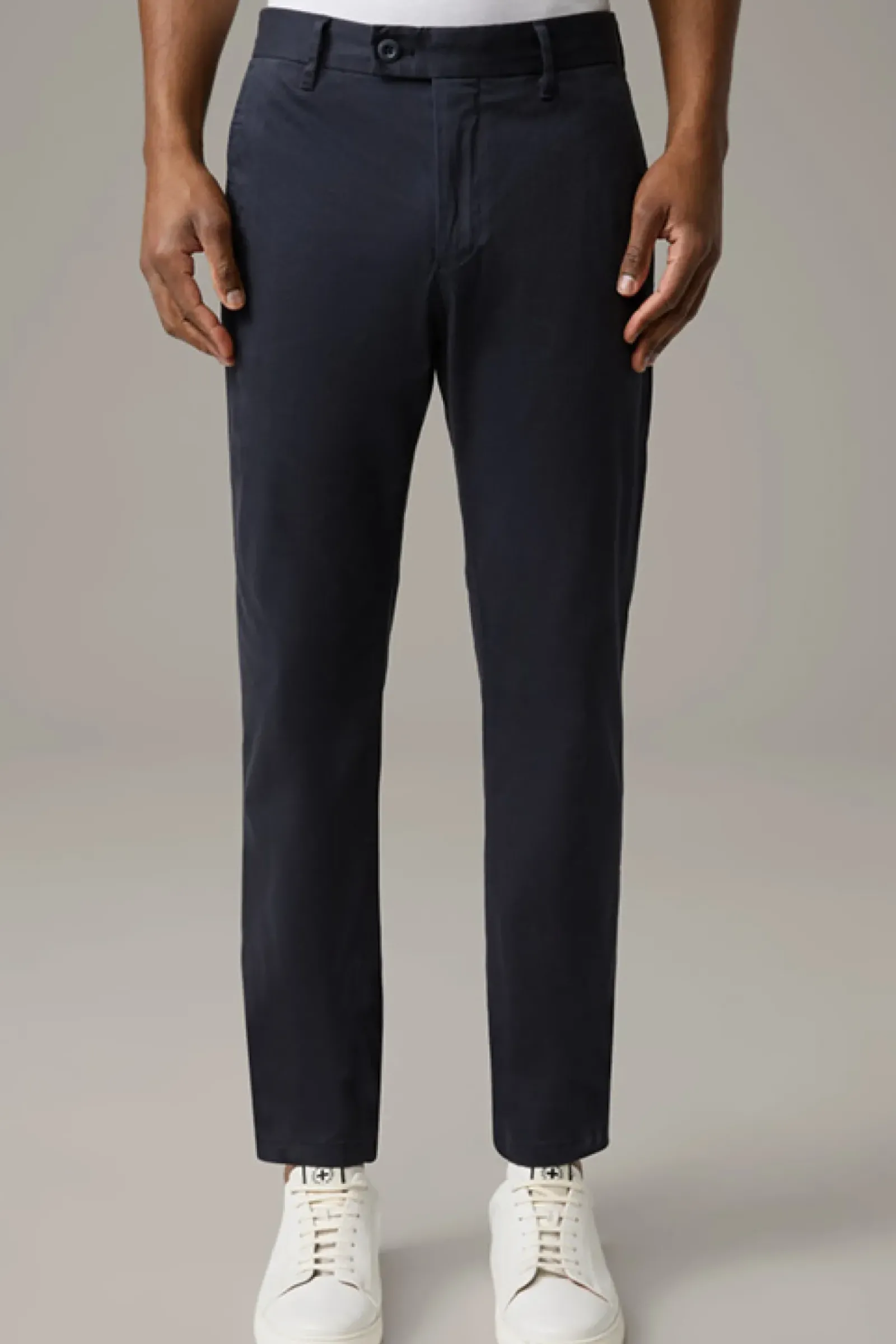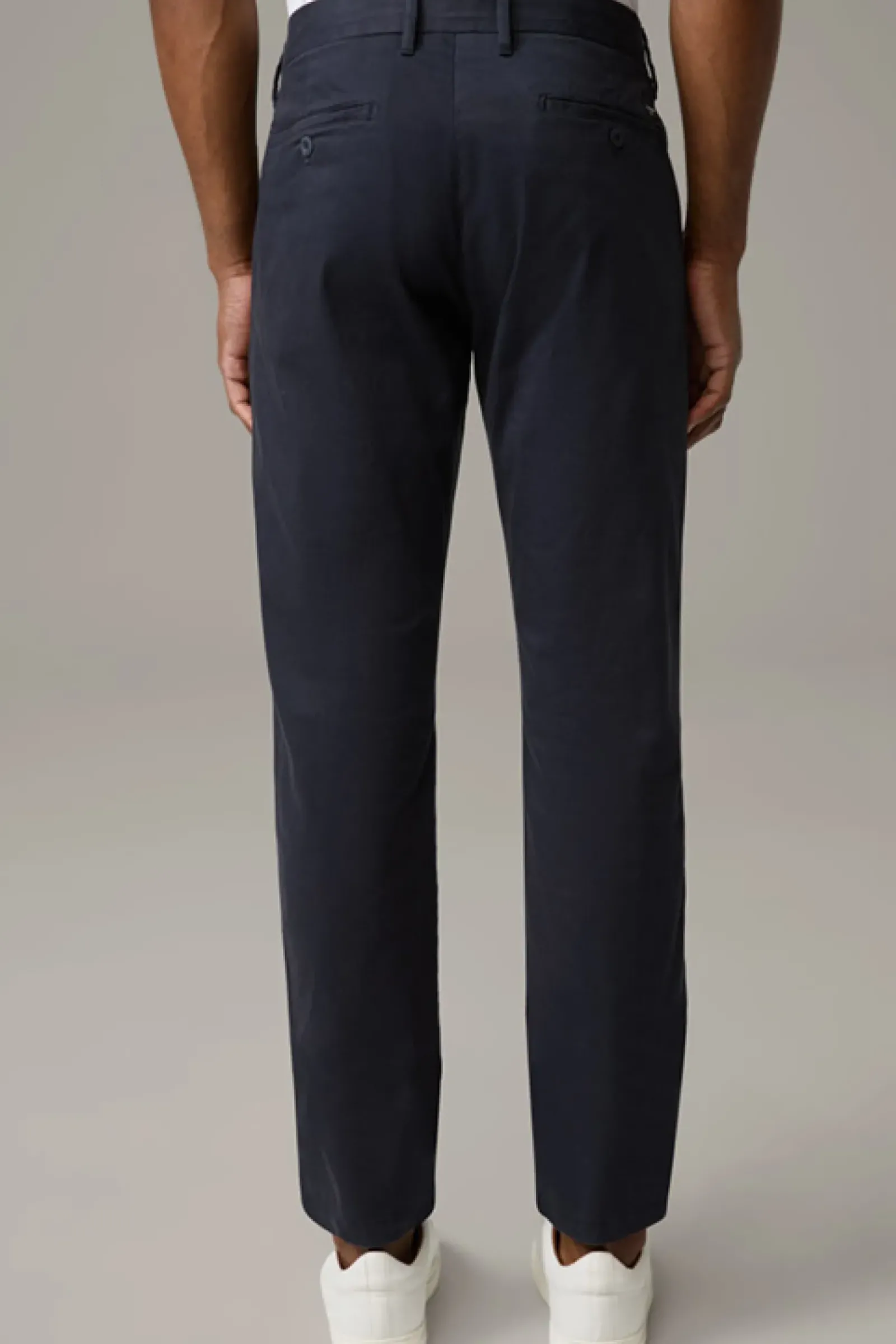 In Flex Cross-Qualität mit schmalem Beinverlauf punktet die Chino Code. Mit Paspelgesäßtaschen und Knopfriegel.