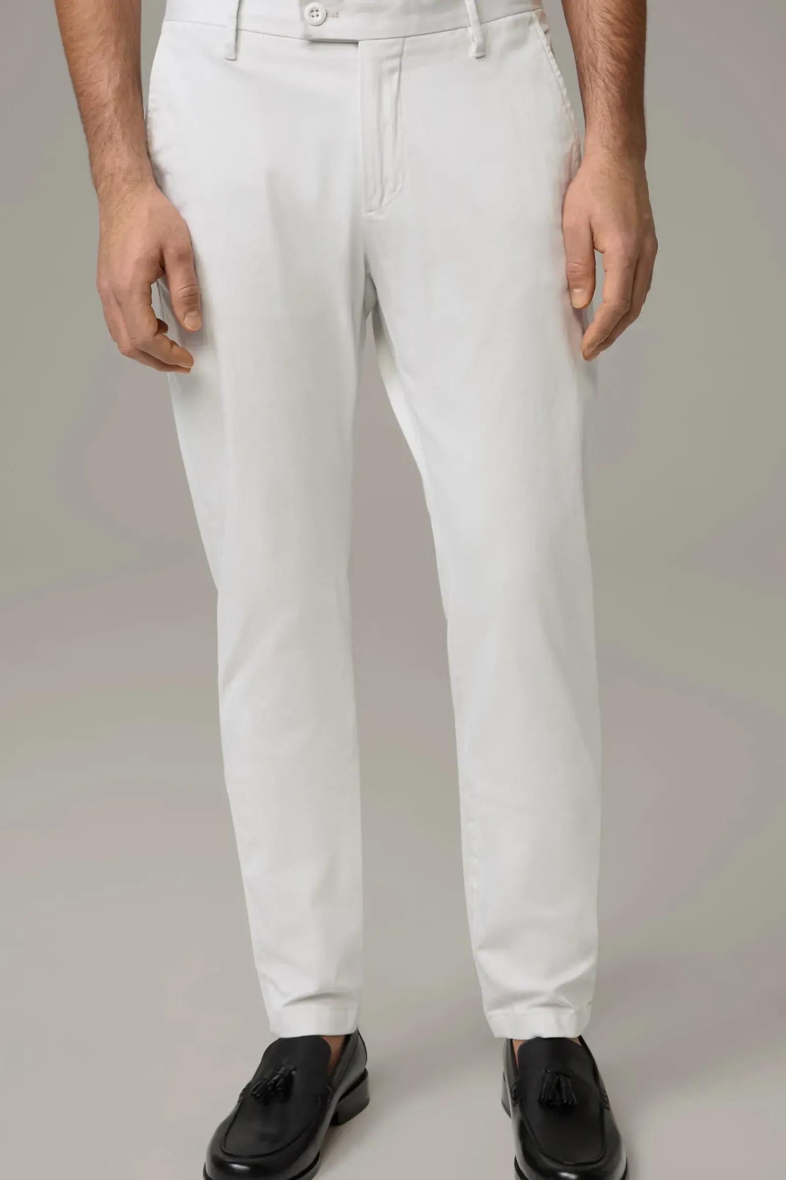 In Flex Cross-Qualität mit schmalem Beinverlauf punktet die Chino Code. Mit Paspelgesäßtaschen und Knopfriegel.