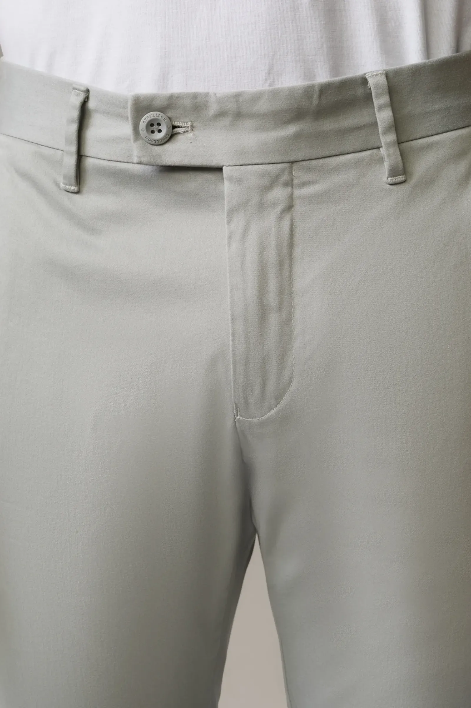 In Flex Cross-Qualität mit schmalem Beinverlauf punktet die Chino Code. Mit Paspelgesäßtaschen und Knopfriegel.