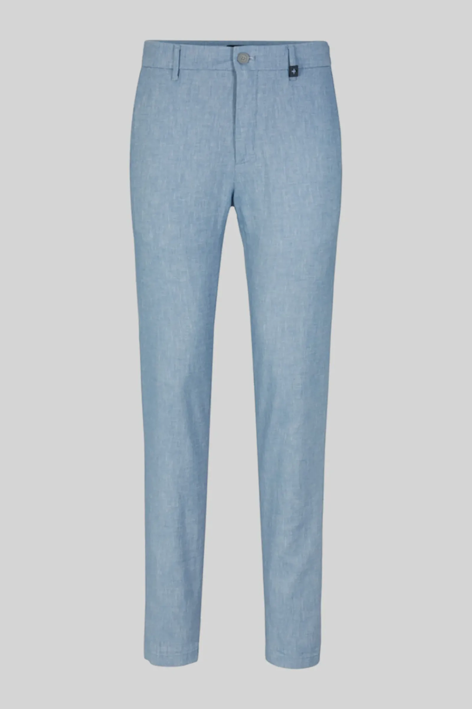 Komfortabler Favorit für den Look: die Chino Rion in stretchiger Baumwoll-Leinen-Mischung mit justierbaren Riegeln am Bund. Paspelierte Gesäßtaschen und feine Signature-Details machen das Flex Cross Piece komplett.