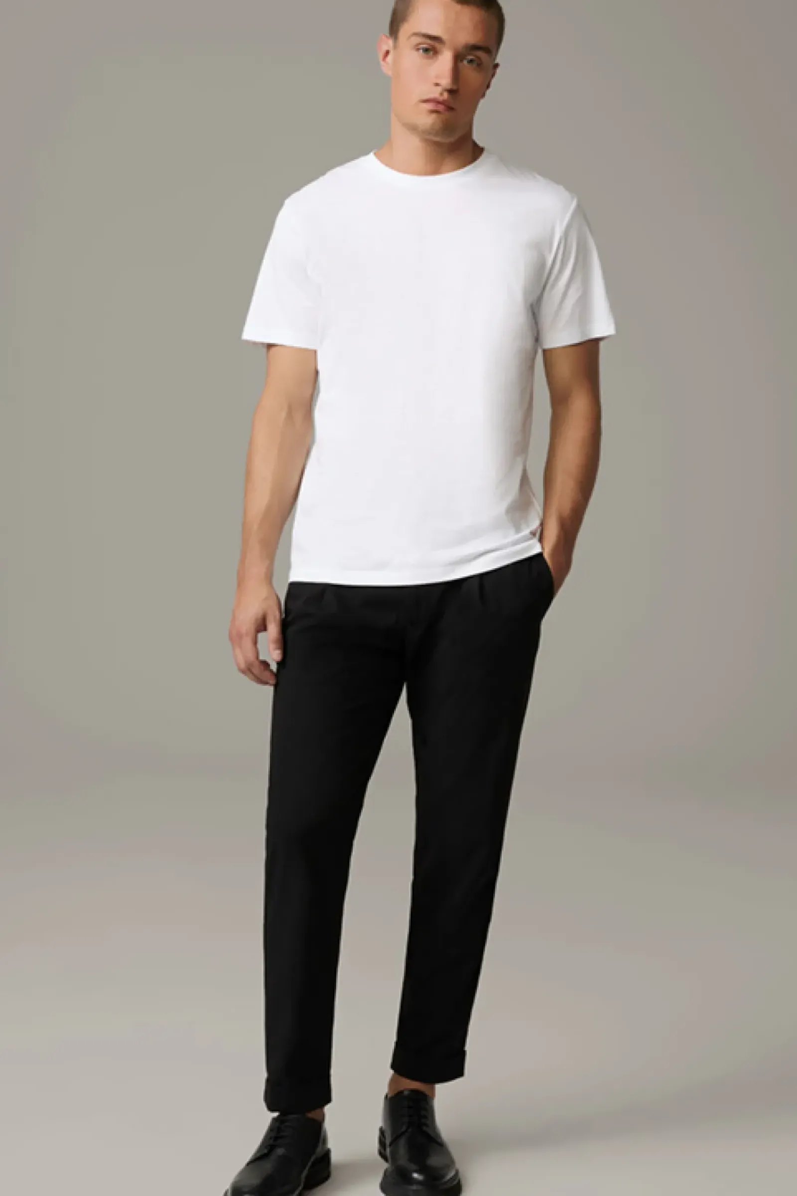 Begeistert in komfortabler Bi-Stretch-Qualität: die Bundfaltenhose Louis mit schmalem Beinverlauf, fixierten Umschlägen und seitlichen Eingrifftaschen. Iconic Twist: Logo-Band mit Karabiner.