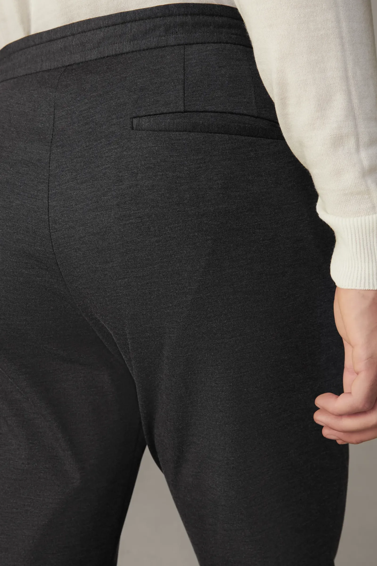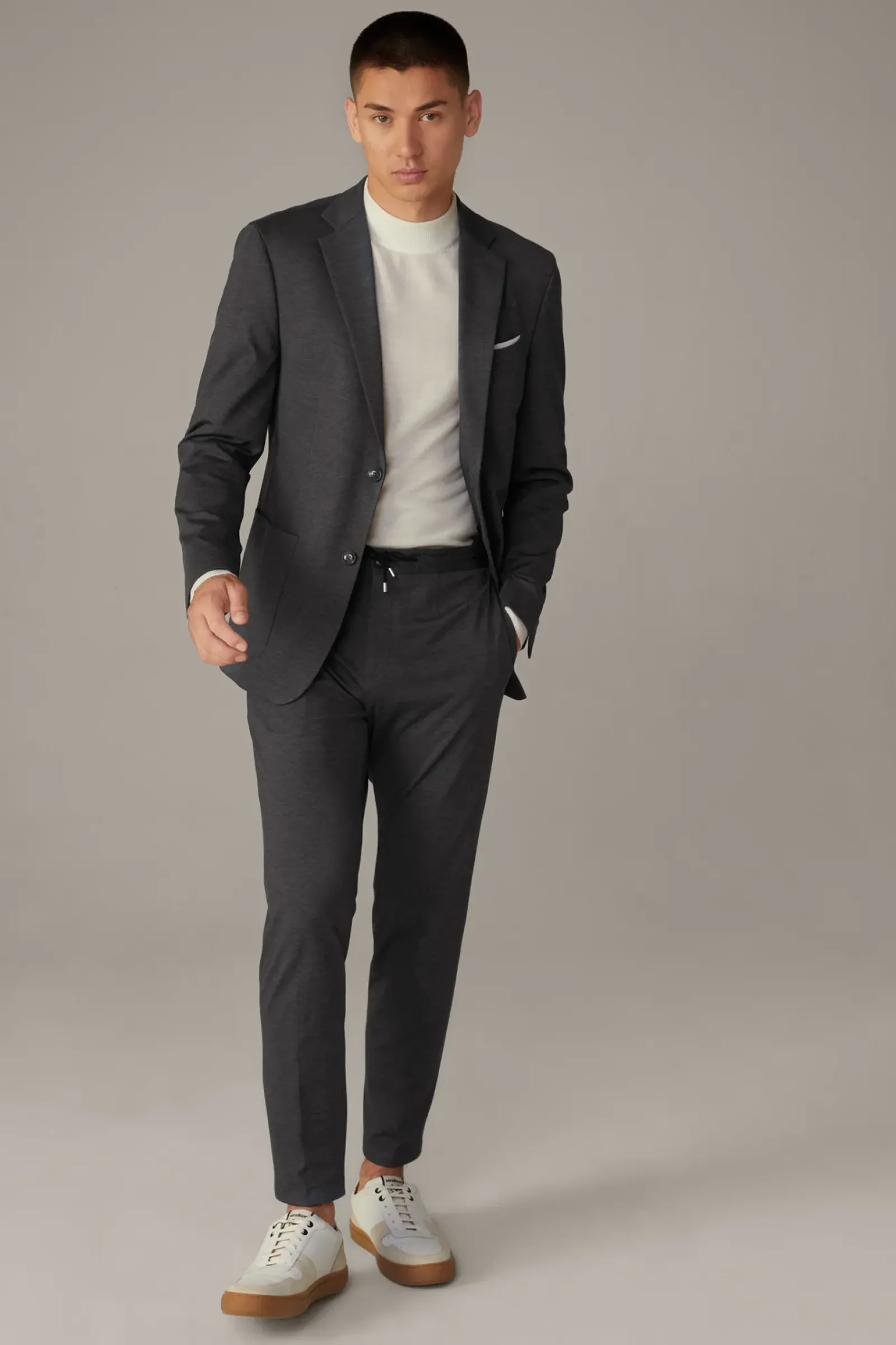 Die Flex Cross Anzughose Saturn überzeugt mit moderner Tech-Qualität, schmaler Silhouette und einem Bund mit lässigem Tunnelzug-Element, ergänzt durch klassische Eingriff- und Gesäßtaschen – passend zum Sakko Arndt.