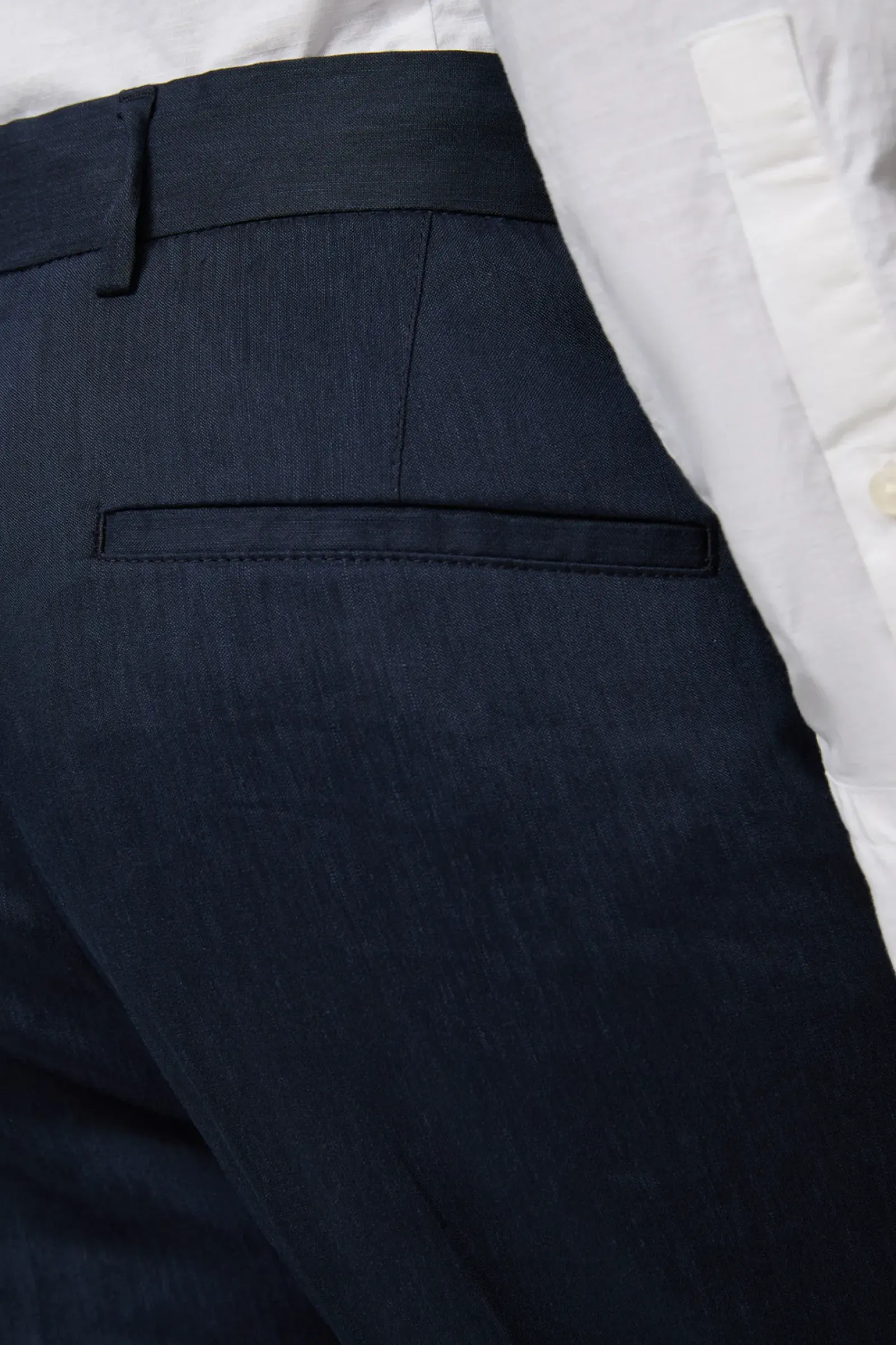 Gefertigt aus einem leichten Leinen-Mix: die Anzughose Till mit Business-Schließe, Eingrifftaschen und Bügelfalten. Auch gut zu tragen bei Hochzeit oder anderen besonderen Anlässen.