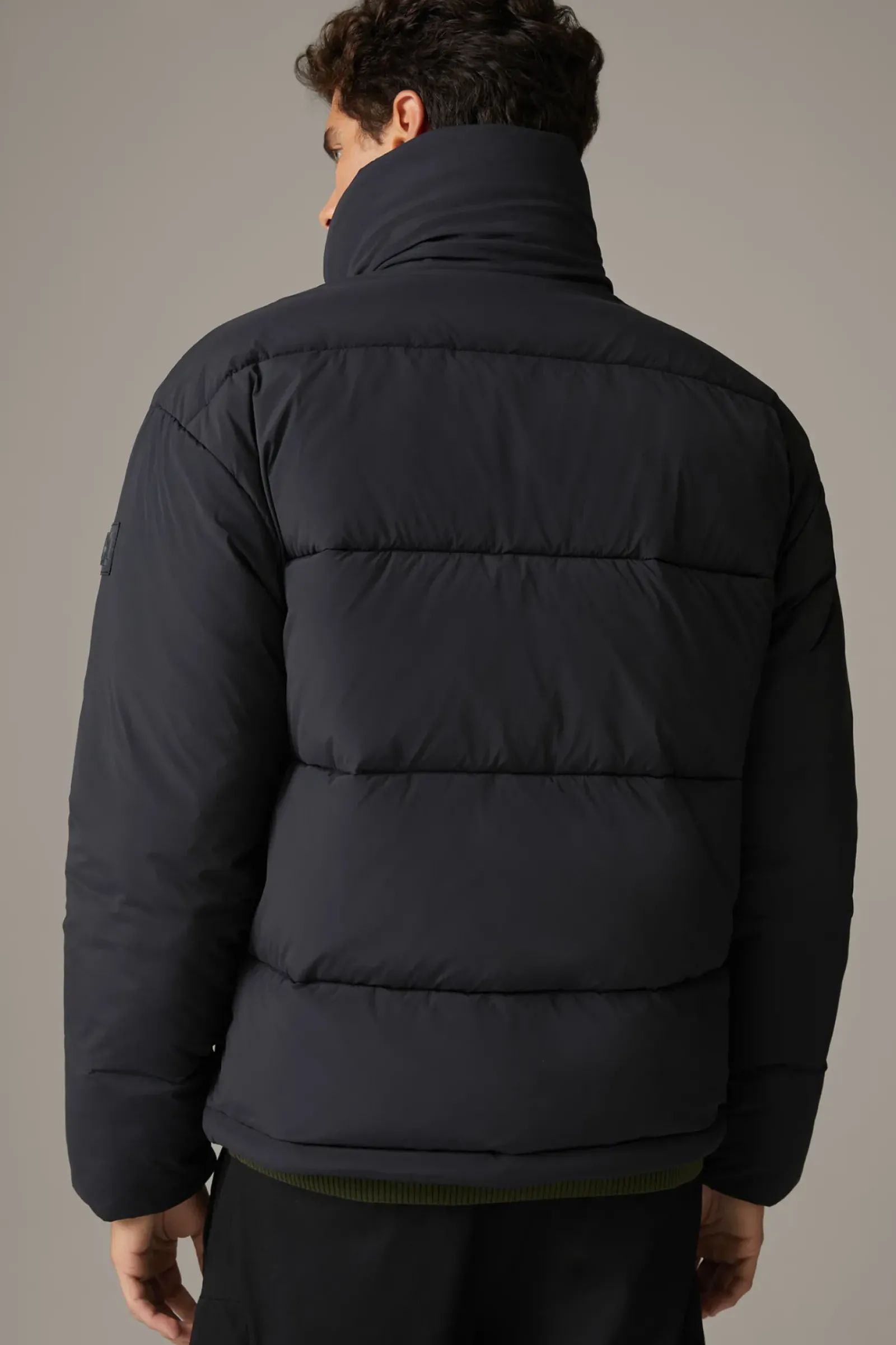 Performancestarkes Favourite Piece: die Flex Cross Steppjacke mit wärmender Wattierung aus recycelter Tech-Faser und wasserdichten und -abweisenden Features. Ergänzt durch den hohen Stehkragen, Zipper und Klettverschluss-Leiste.