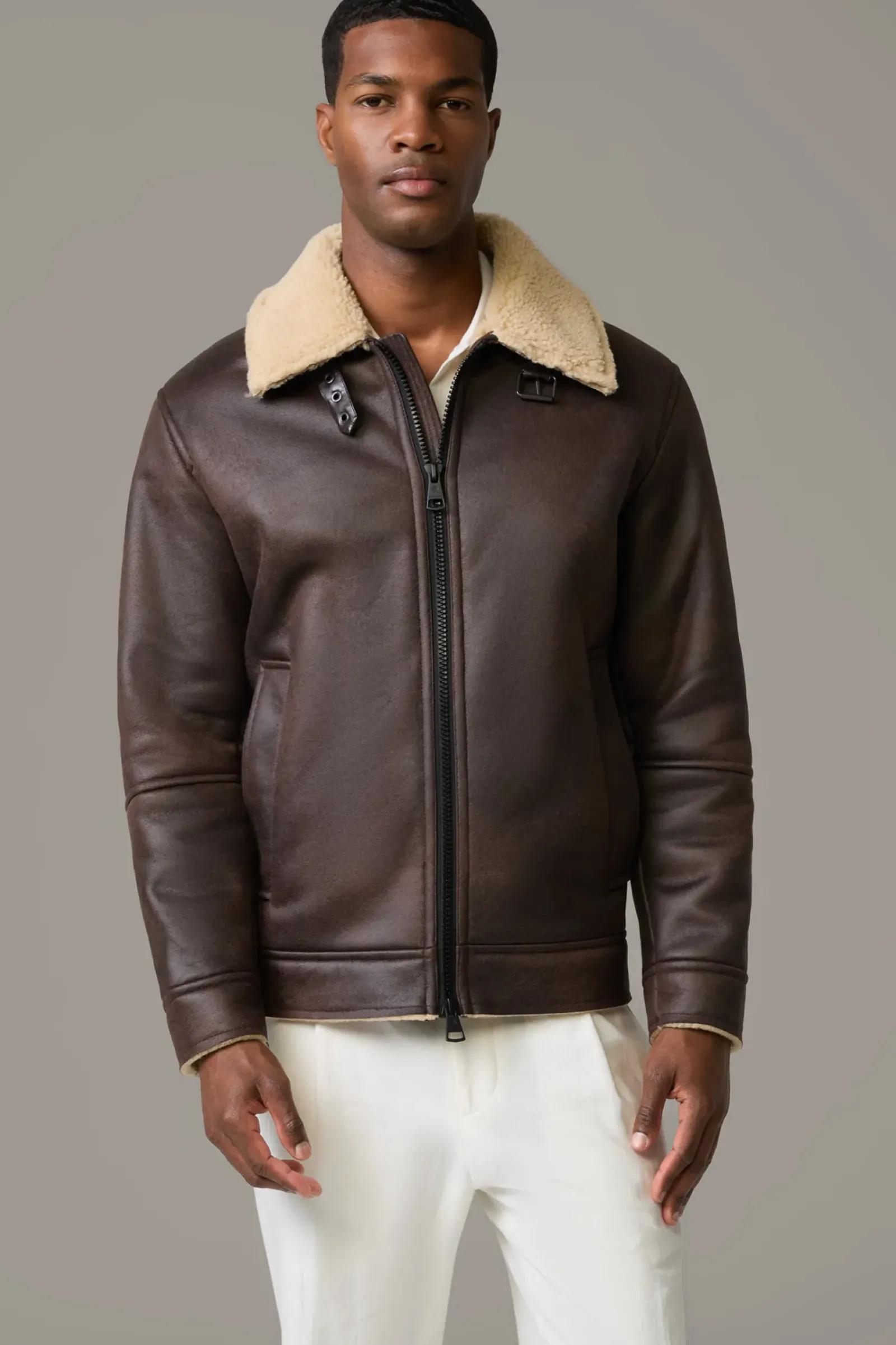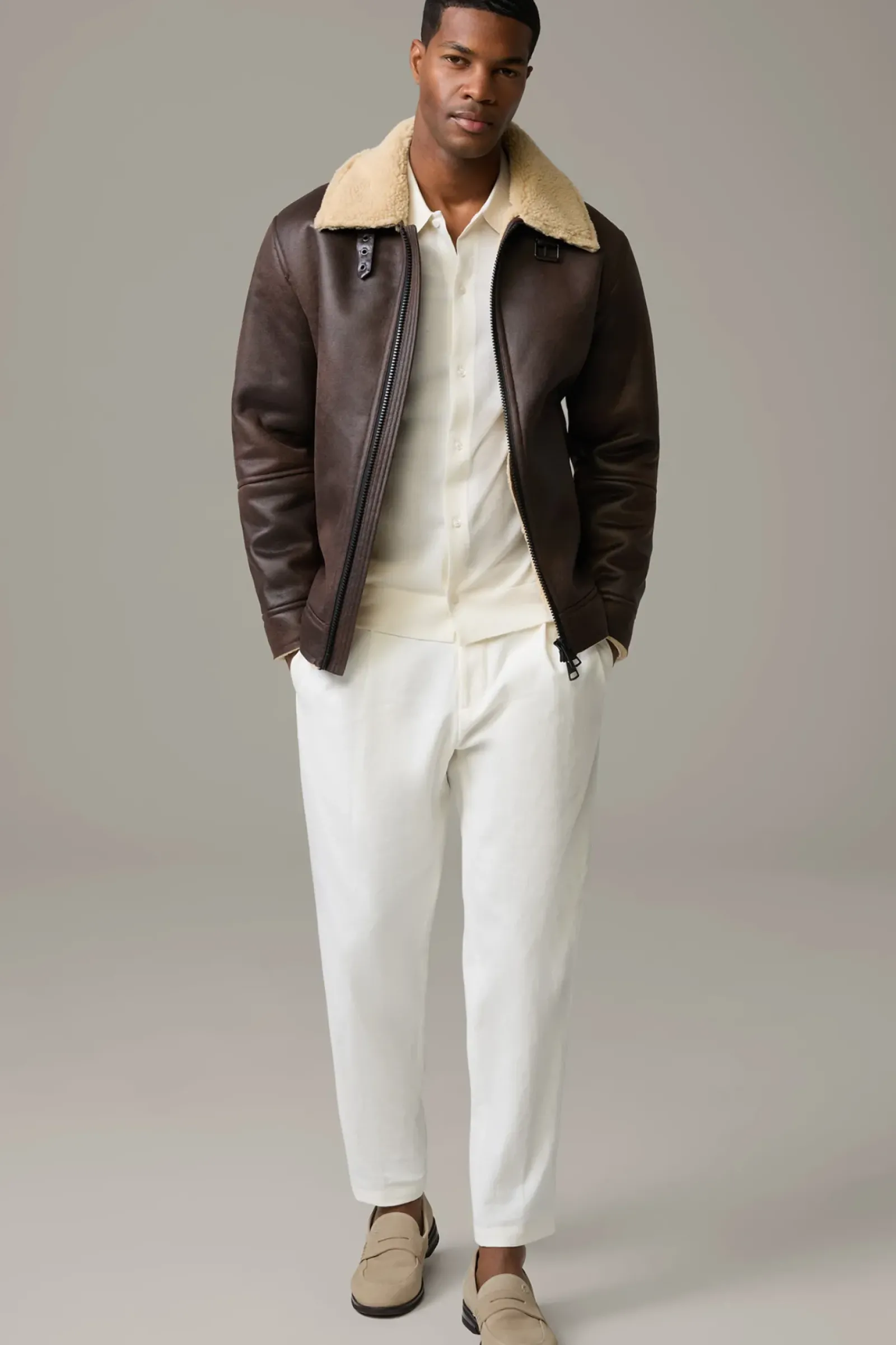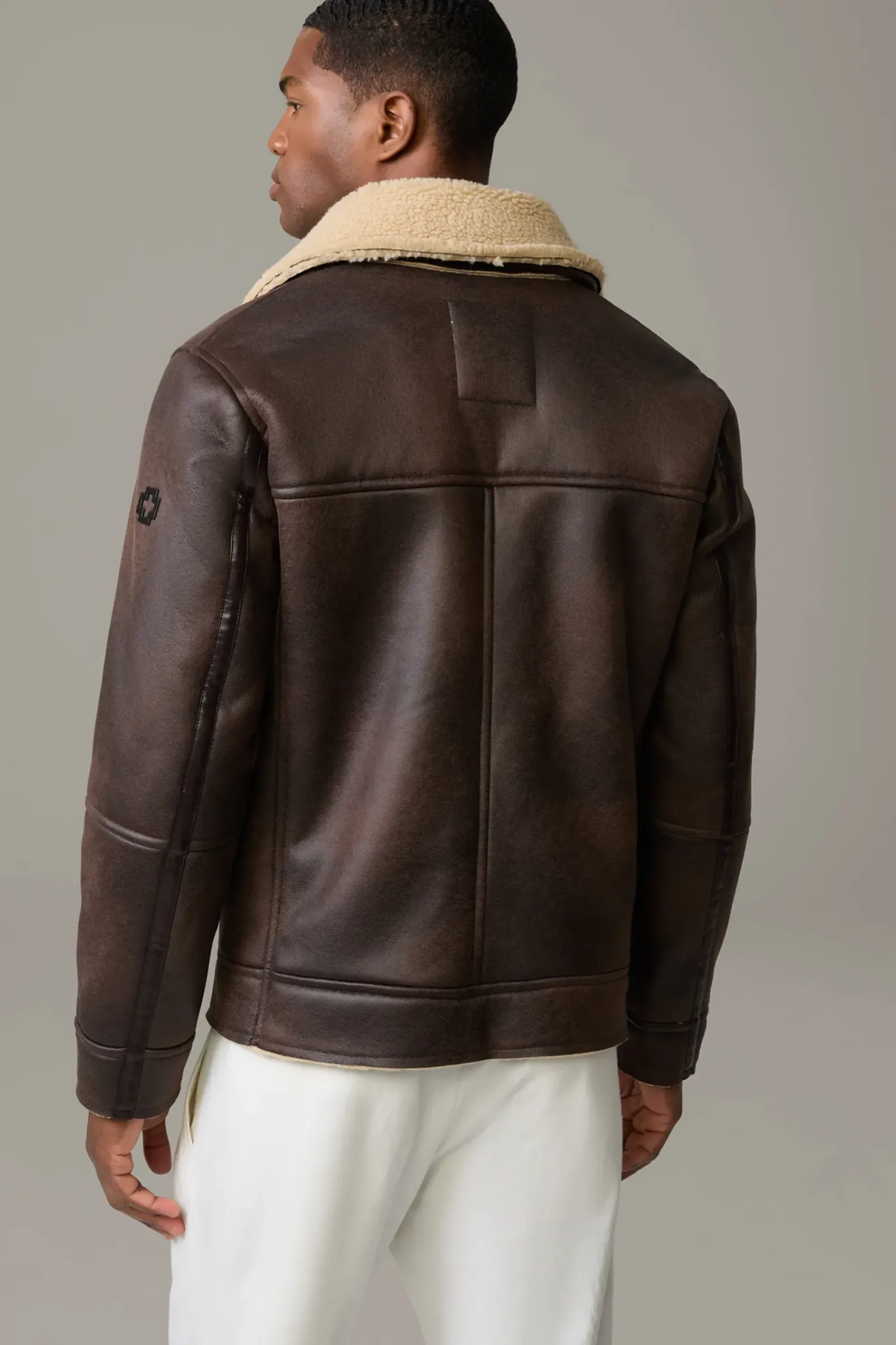 Cooles Piece: die Jacke Teddy im Leder-Look mit Umlegekragen, Zwei-Wege-Zipper und dekorativen Nähten. Mit wärmender Innenverarbeitung aus Teddyfell.