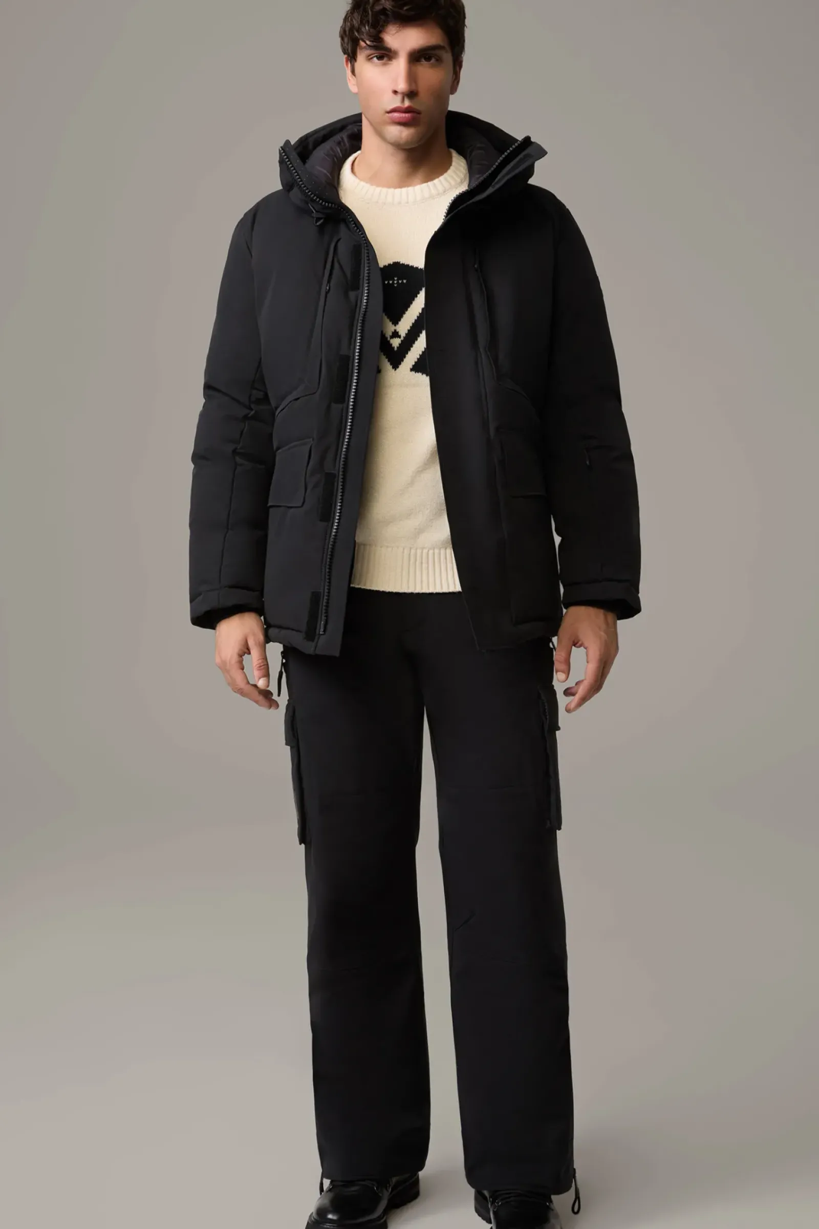 Alpiner Style: die Softshell-Jacke Mountaineering in wasserfester Tech-Qualität mit wärmender Wattierung und justierbarer Kapuze. Funktionales Design mit Schneefang und diversen Taschen.