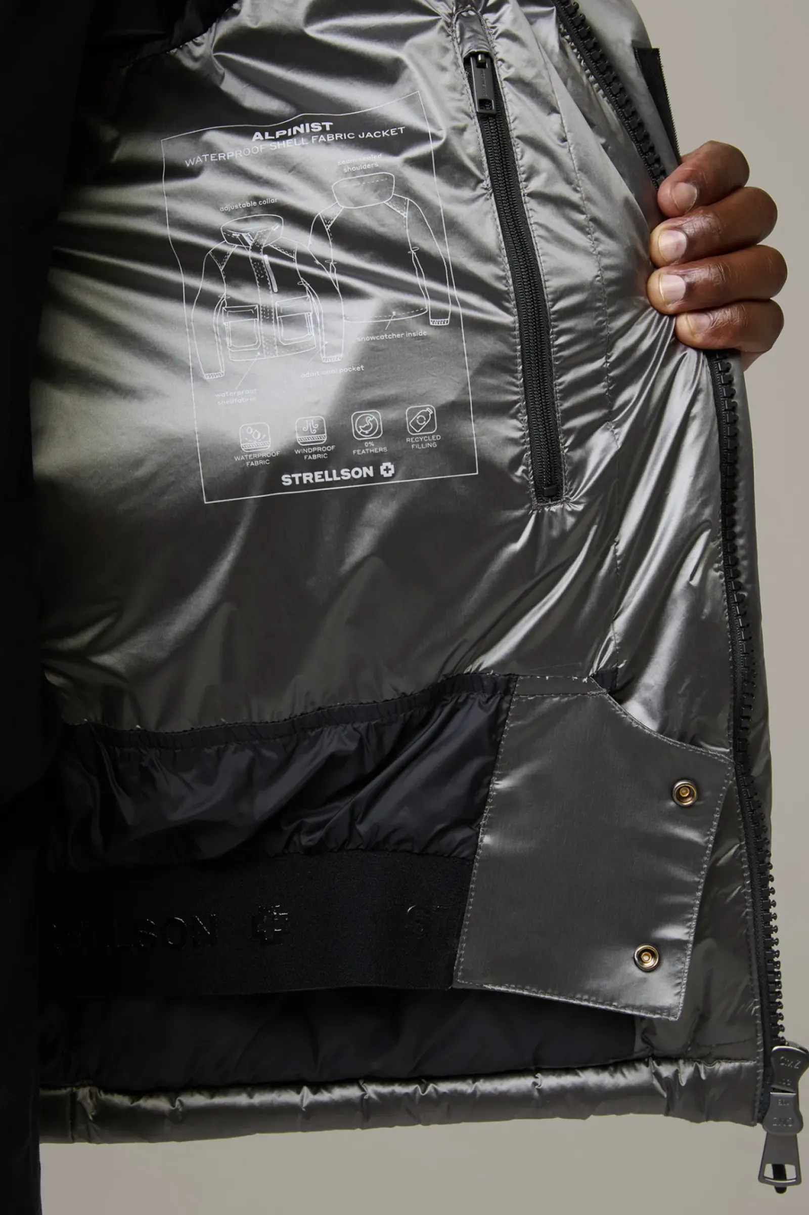 Cooles Performance-Piece: die Steppjacke Alpinist mit Tunnelzug am Stehkragen, Klettverschluss und inwendig verschließbarem Windbreaker-Bund.