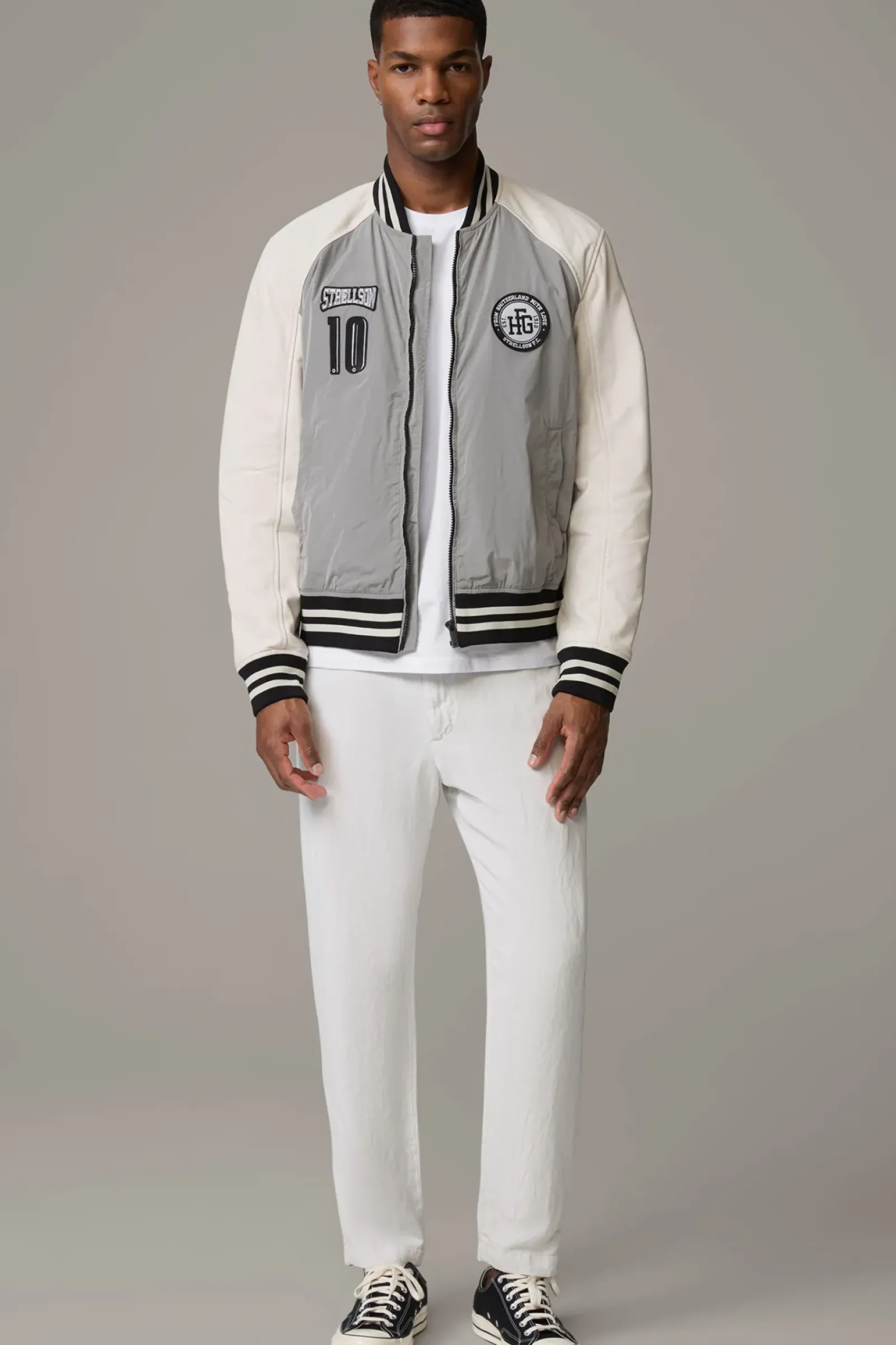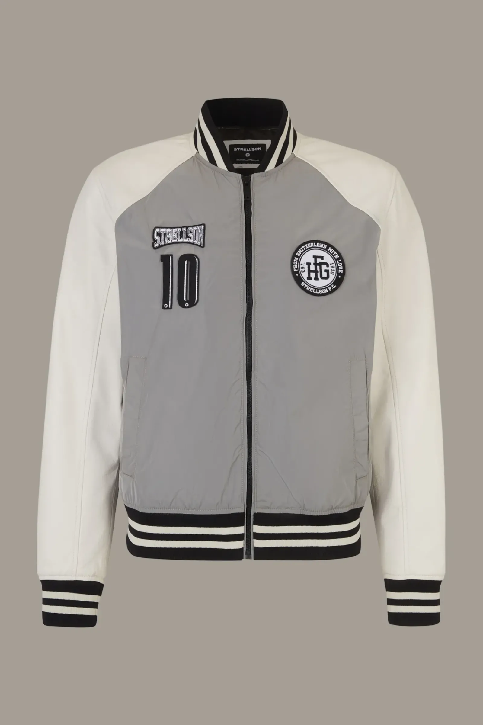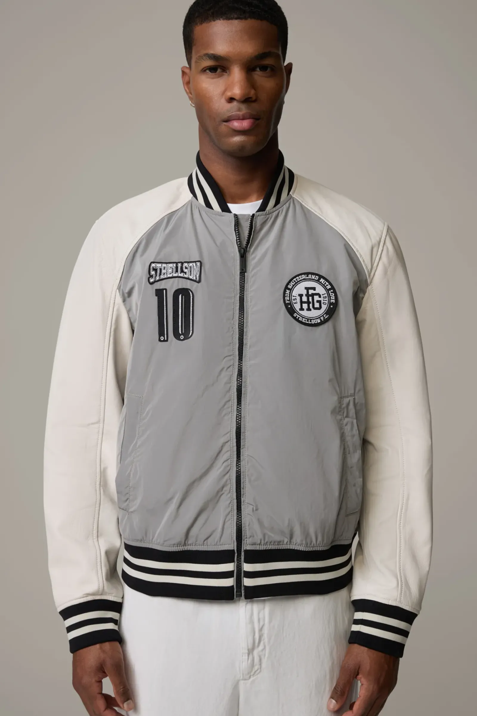 Im Design-Mix aus Lammnappa und Polyester: die Collegejacke Wacome-Mix überzeugt mit Logo-Patches, Rippbündchen und Leistentaschen. Glattes Innenfutter.