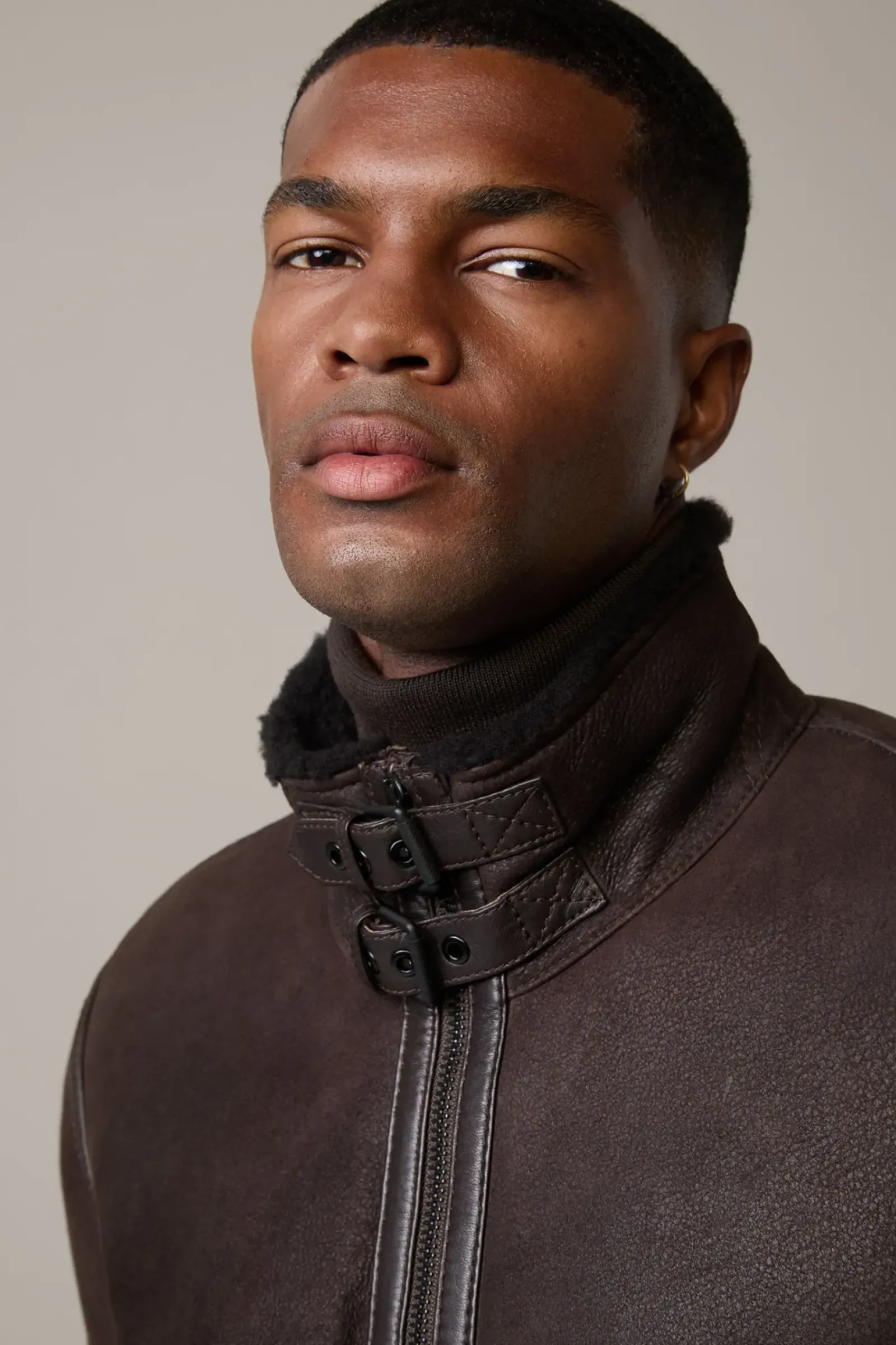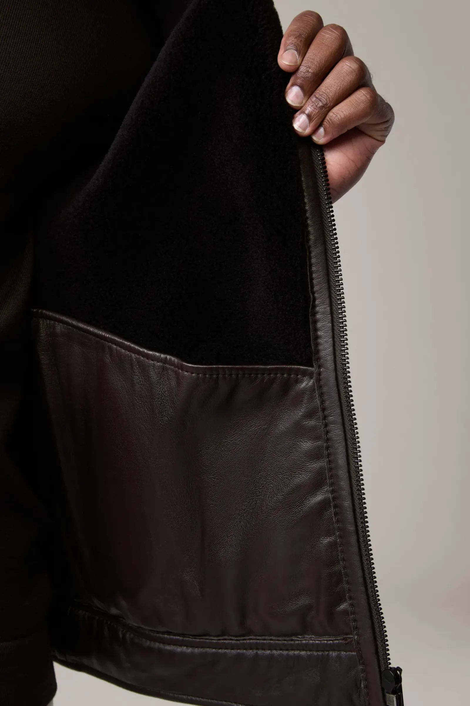 Edles Item aus Shearling im Biker-Stil: die Lederjacke Shelter mit Stehkragen und Riegeldetails. In Doubleface-Qualität.