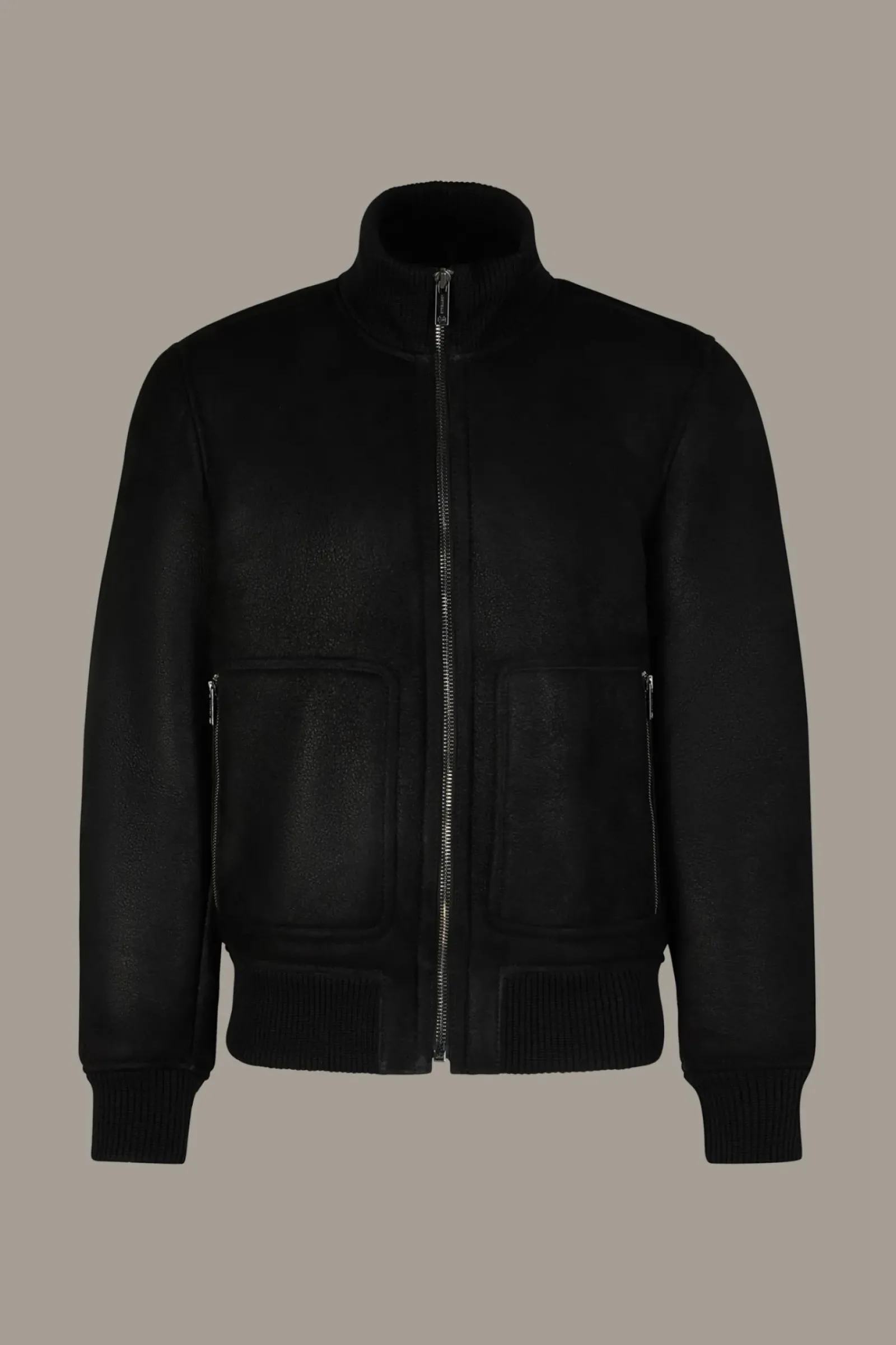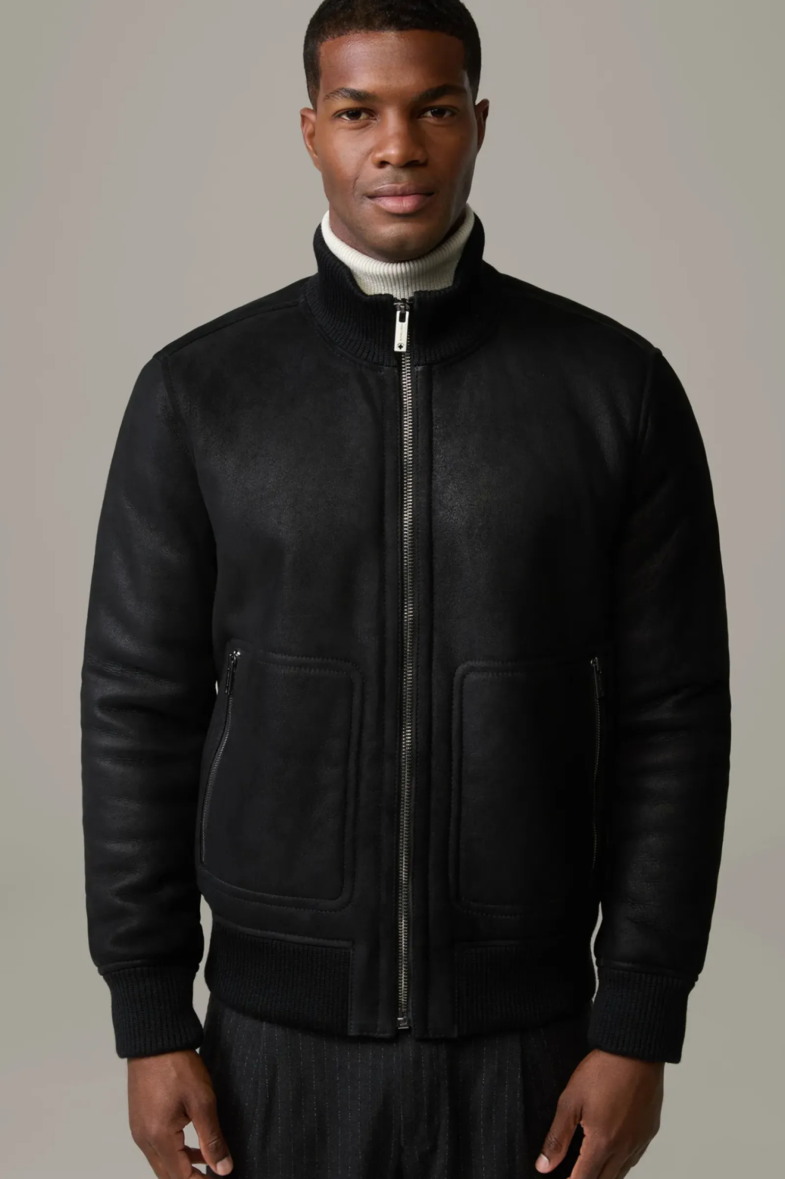 Die Lederjacke im Blouson-Stil überzeugt mit angenehmer Innenverarbeitung aus reinem Lammfell. Elastische Rippbündchen, ein Stehkragen und Metallic-Logo-Zipper ergänzen den Look.
