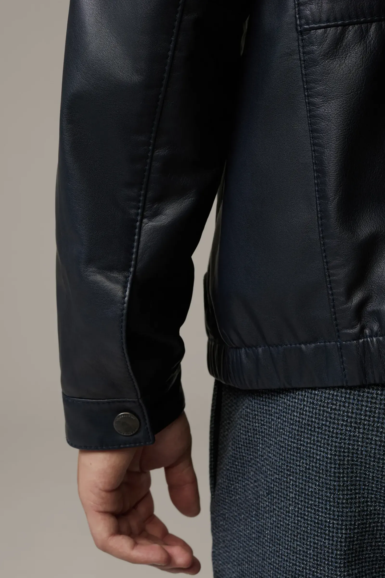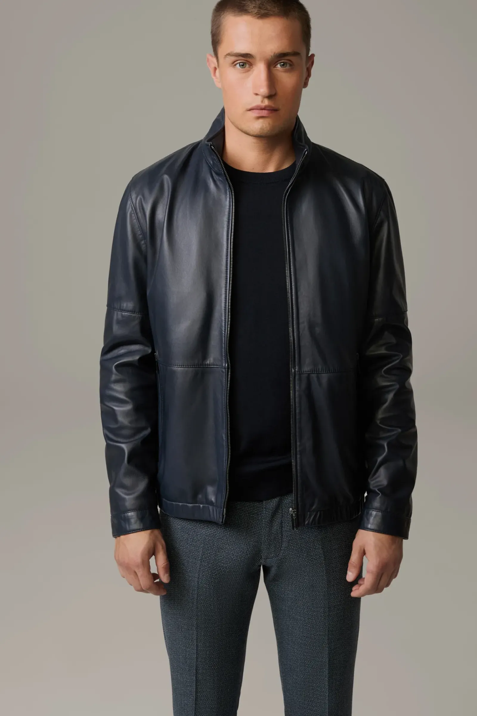Favorit in jeder Saison: Die Lederjacke Jim aus weichem Lammnappa im Blouson-Style mit elastischem Finish am Bund. Lässige Akzente: knöpfbare Ärmelabschlüsse, Zip-Taschen und urbane Teilungsnähte.