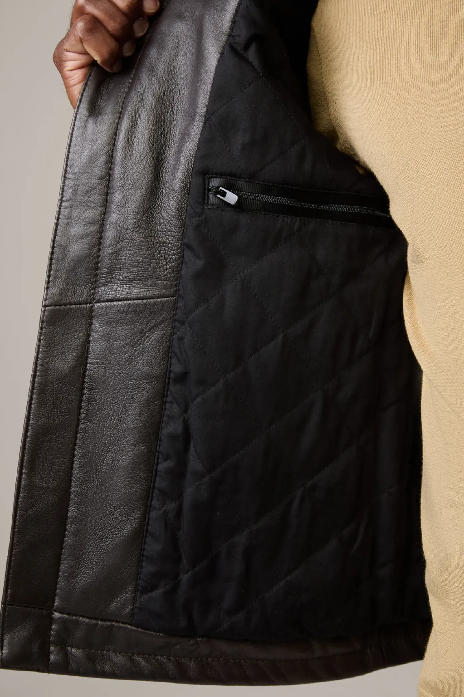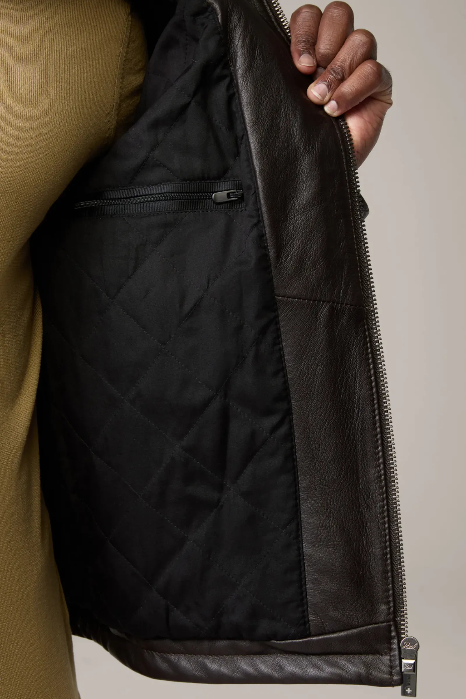 Urbanes It-Piece: die Lederjacke Monty mit einem Umlegekragen aus Lammfell. Zippertaschen und Teilungsnähte prägen den Look. Mit wattiertem Stepp-Futter.