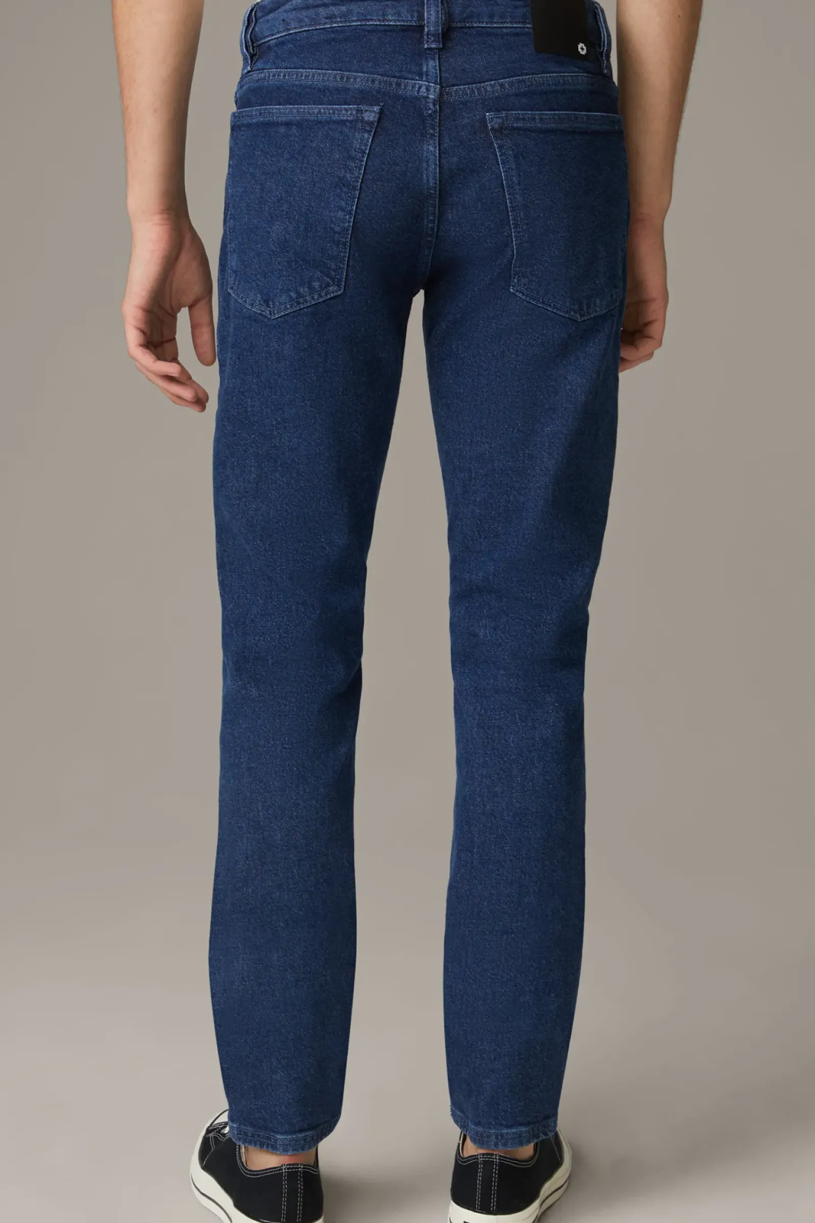Cooles Essential: die Jeans Robin im SLIM FIT und Five-Pocket-Stil mit geprägten Nieten und Label-Details. Flex Cross-Qualität.