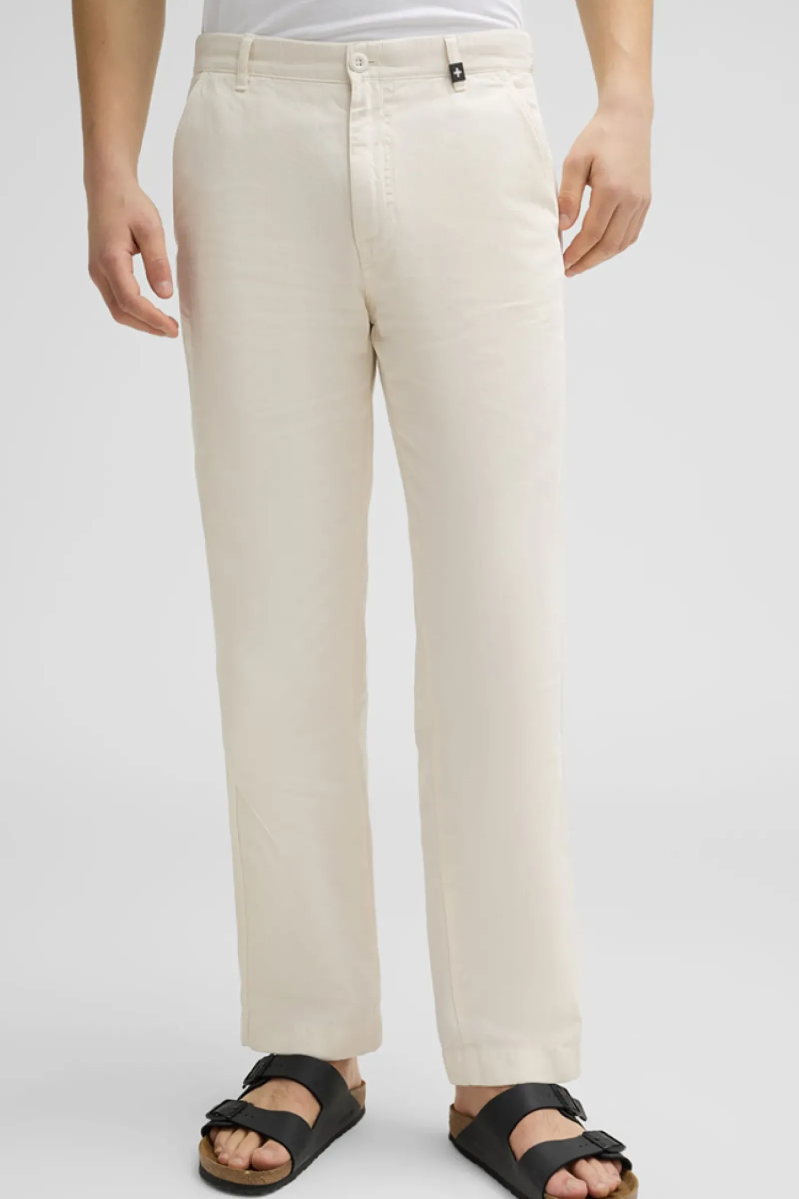 Lässiger Allrounder: Jeans Beda aus Baumwolle und Leinen mit geradem Beinverlauf. Aufgesetzte Gesäßtaschen, ein klassischer Bund mit Gürtelschlaufen und feine Logo-Details runden das Item ab.