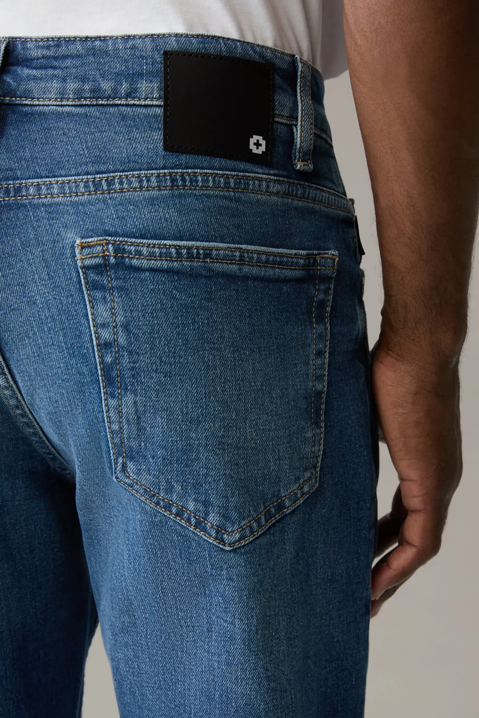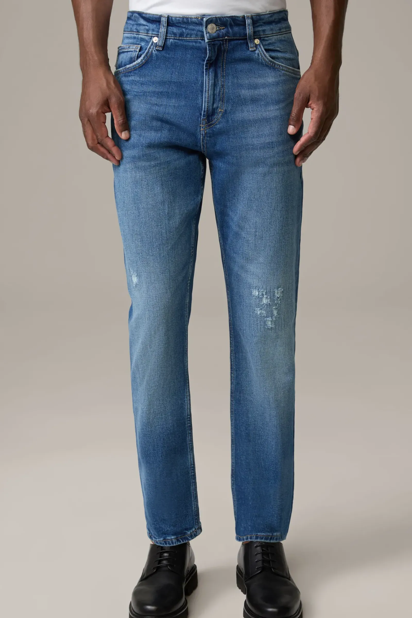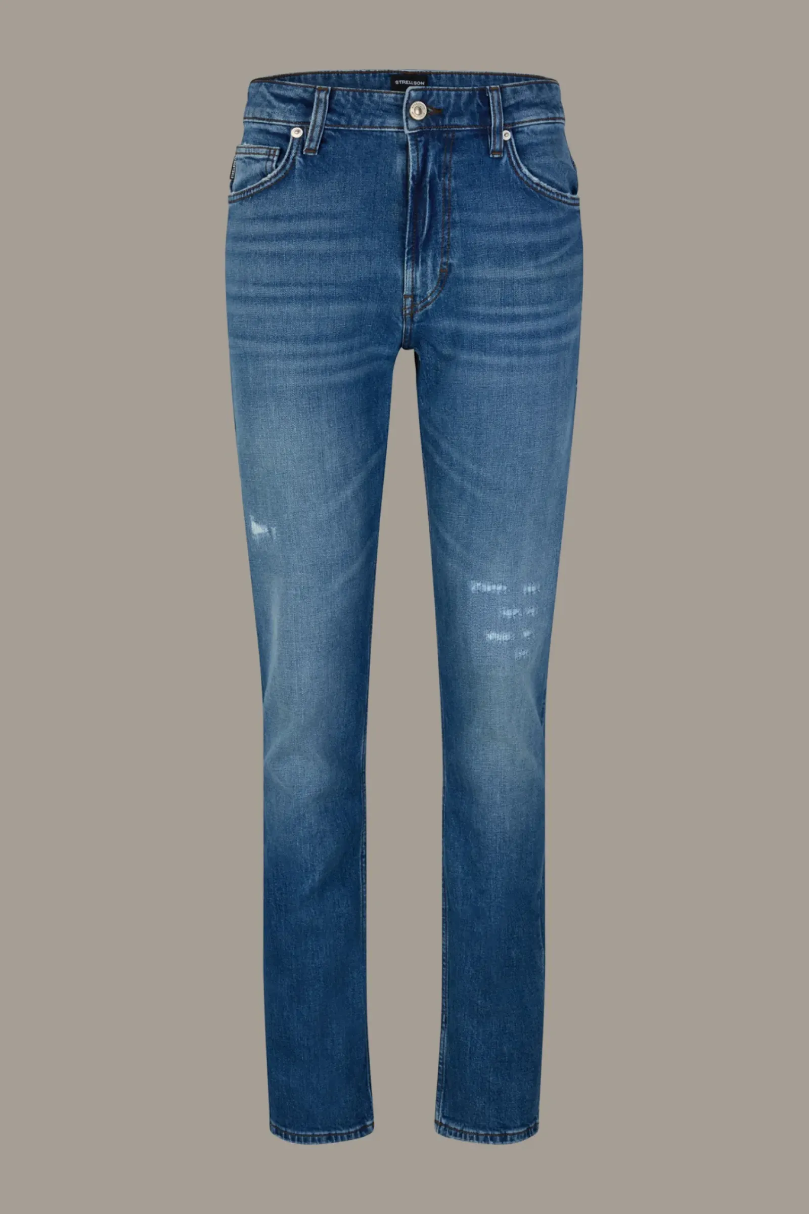 In schmaler Silhouette mit destroyed Finish überzeugt die Jeans Seb als lässiger Allrounder. Das Five-Pocket-Design wird signaturetypisch ergänzt durch Logo-Nieten.