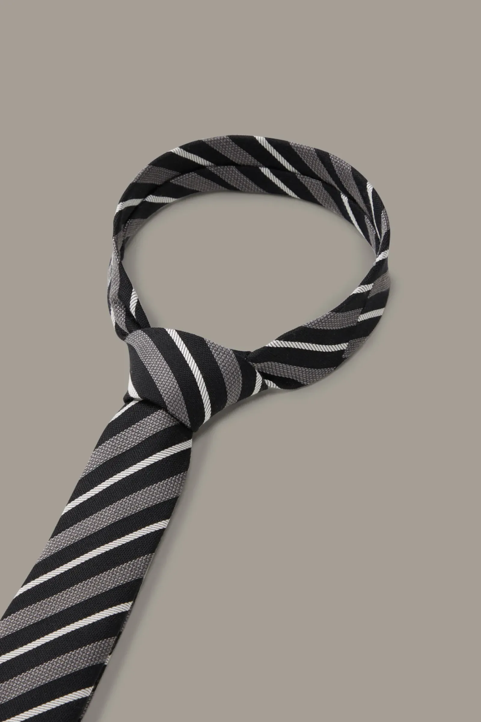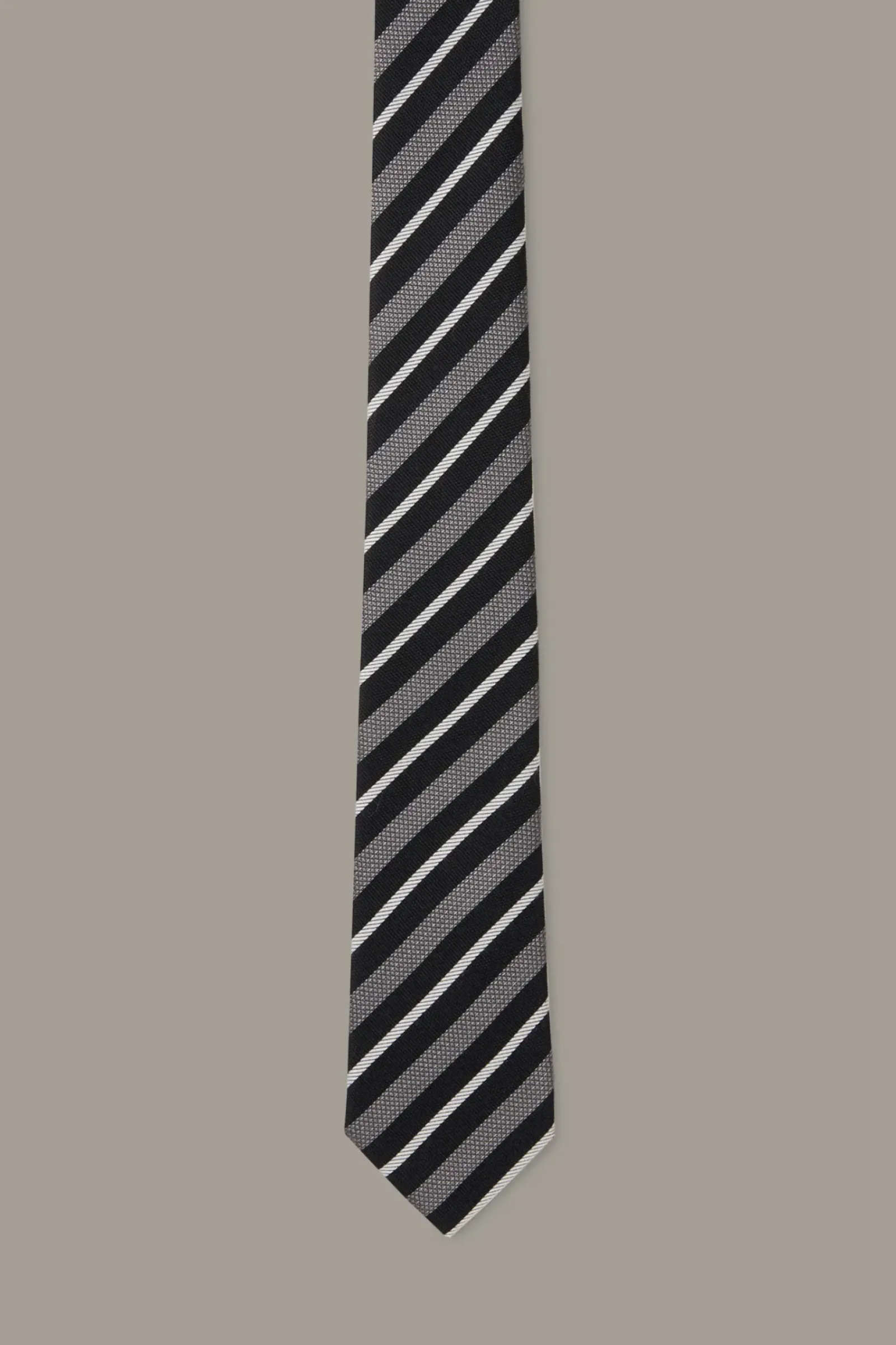 Smartes Finish: die Krawatte aus Seiden-Wollmix im modernen Streifen-Design. Der spitze Zulauf, ein Logo-Handriegel und das Signé-Futter ergänzen den urbanen Style.