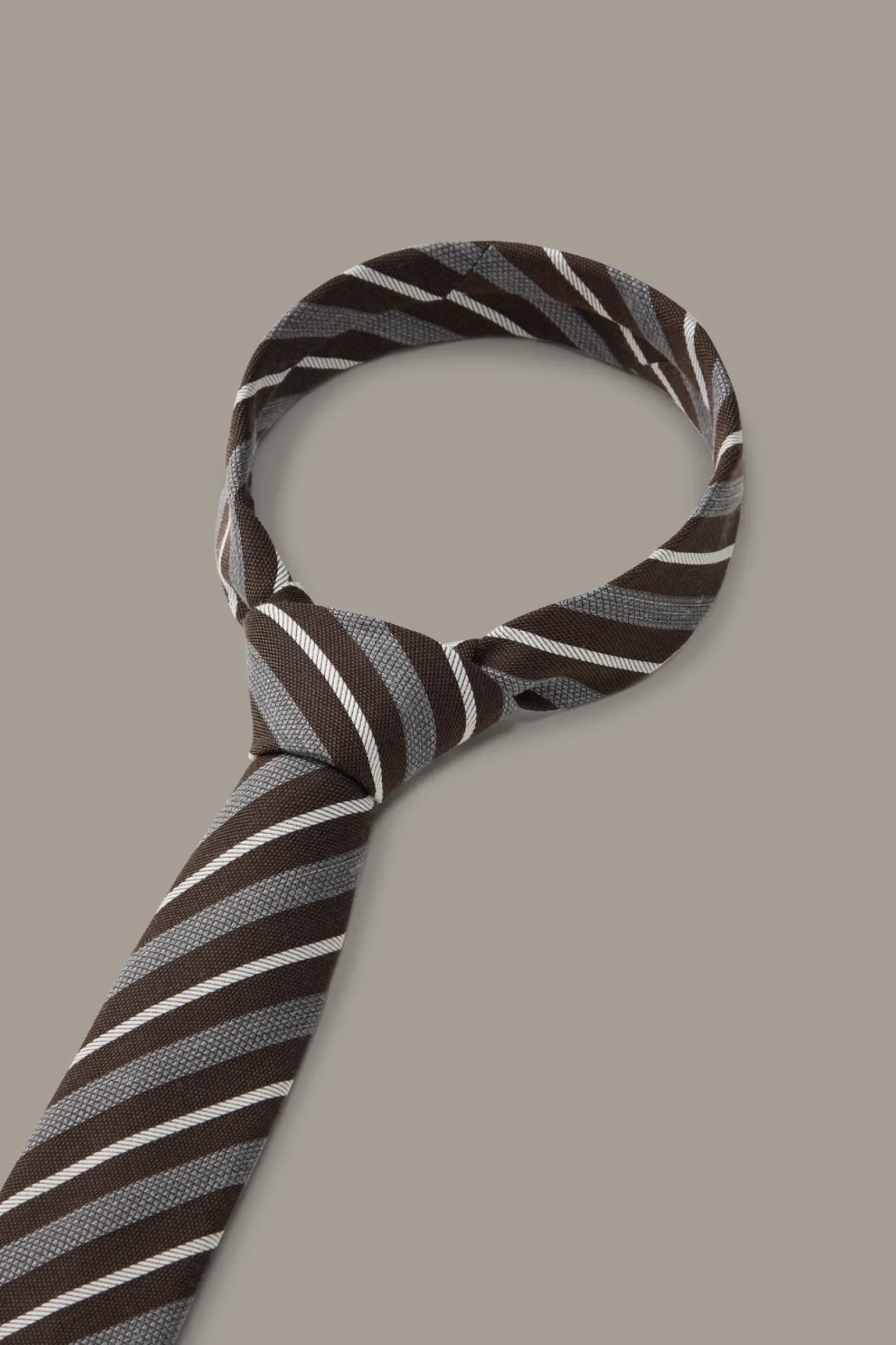 Smartes Finish: die Krawatte aus Seiden-Wollmix im modernen Streifen-Design. Der spitze Zulauf, ein Logo-Handriegel und das Signé-Futter ergänzen den urbanen Style.