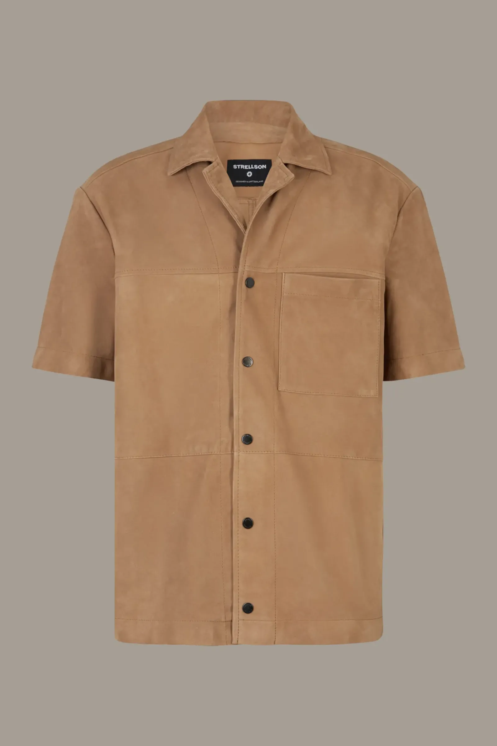 From Spring to Fall: das kurzärmelige Overshirt Indio aus Veloursleder überzeugt als vielseitiges Key Piece. Akzente setzen Seitenschlitze am Saum und die logogeprägte Druckknopfleiste.